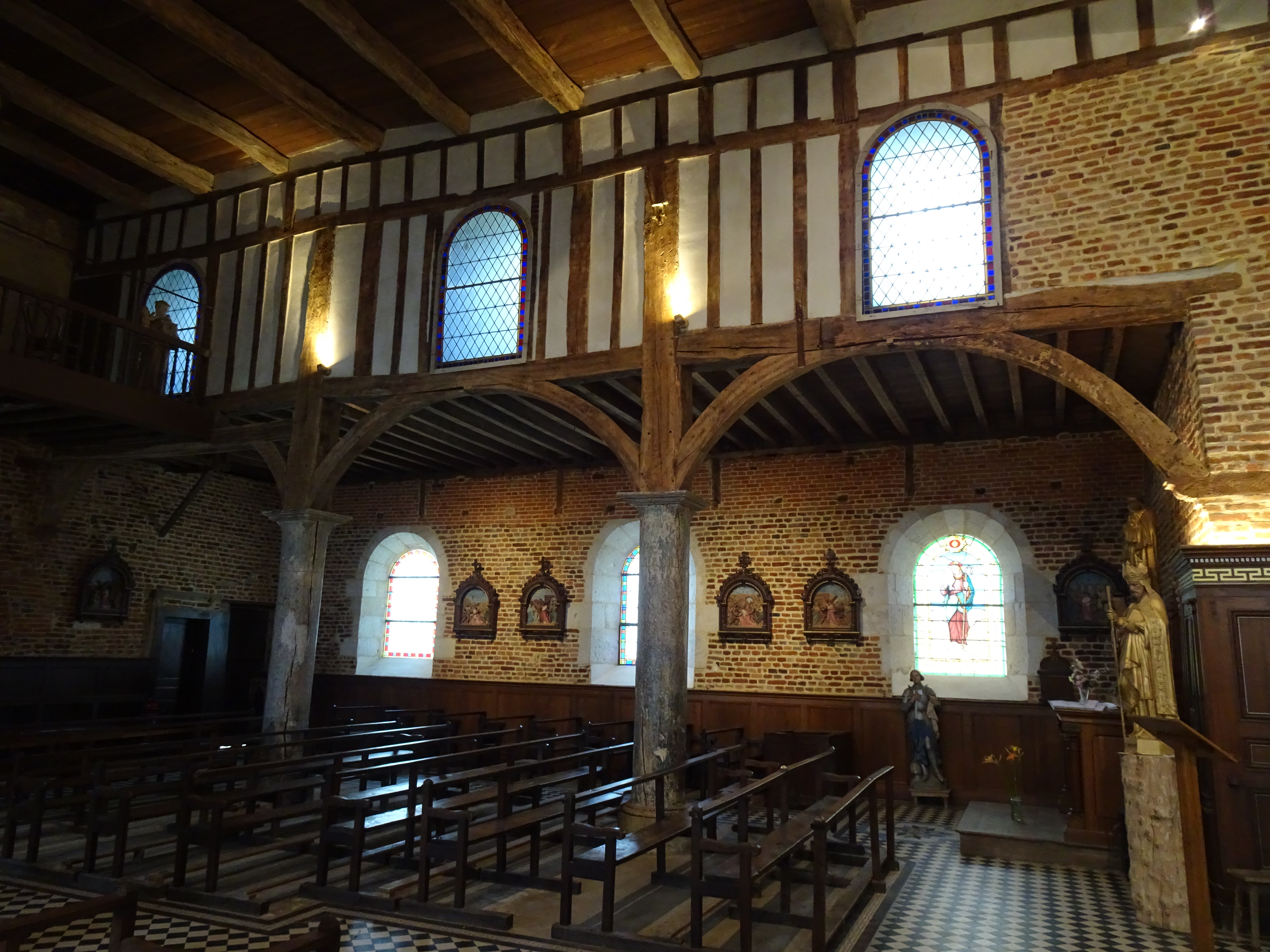 Belle église avec nef en bois (piliers, murs à pans de bois) et chœur en pierre. Montez également au premier étage et levez les yeux (cloches).