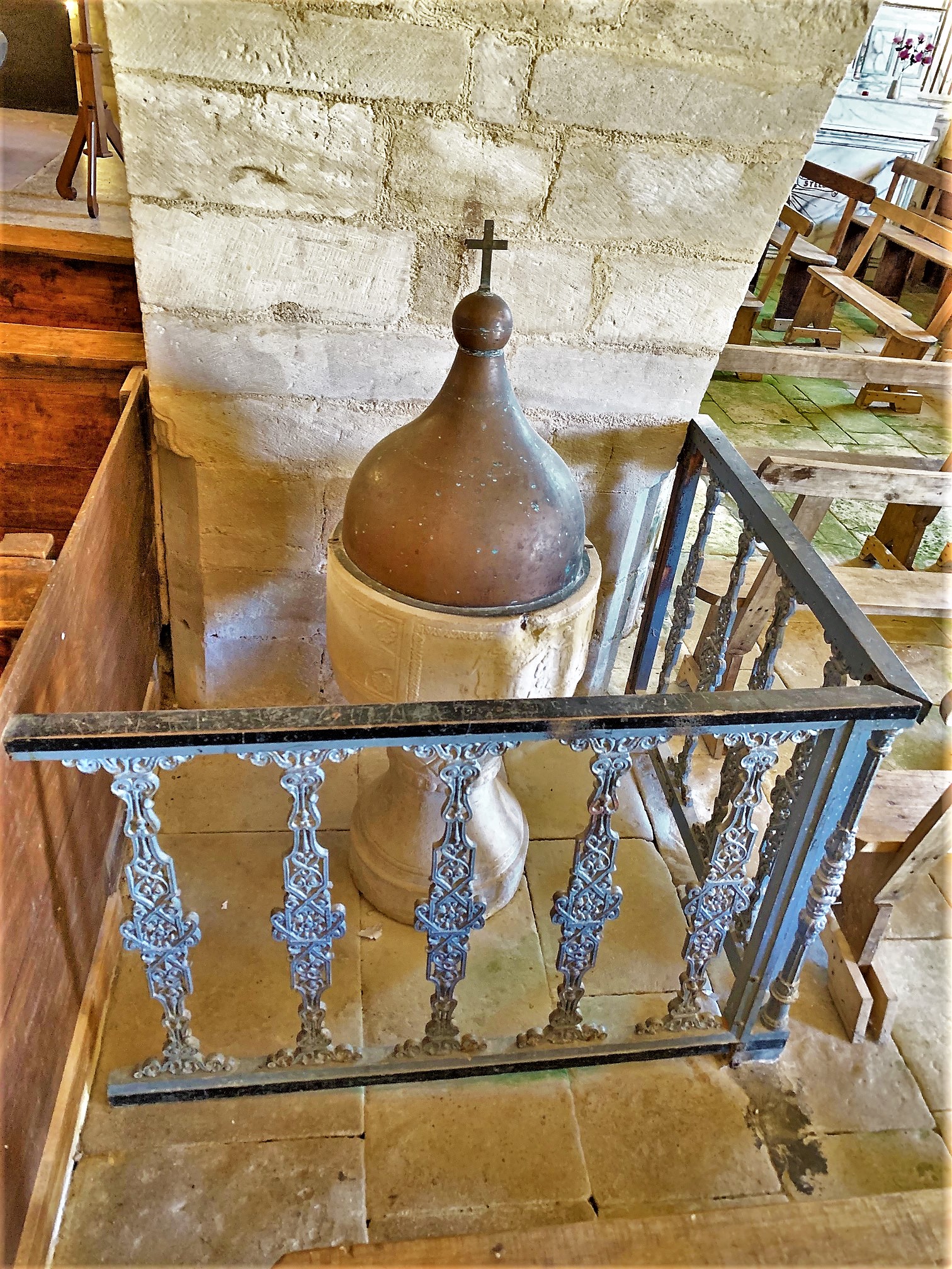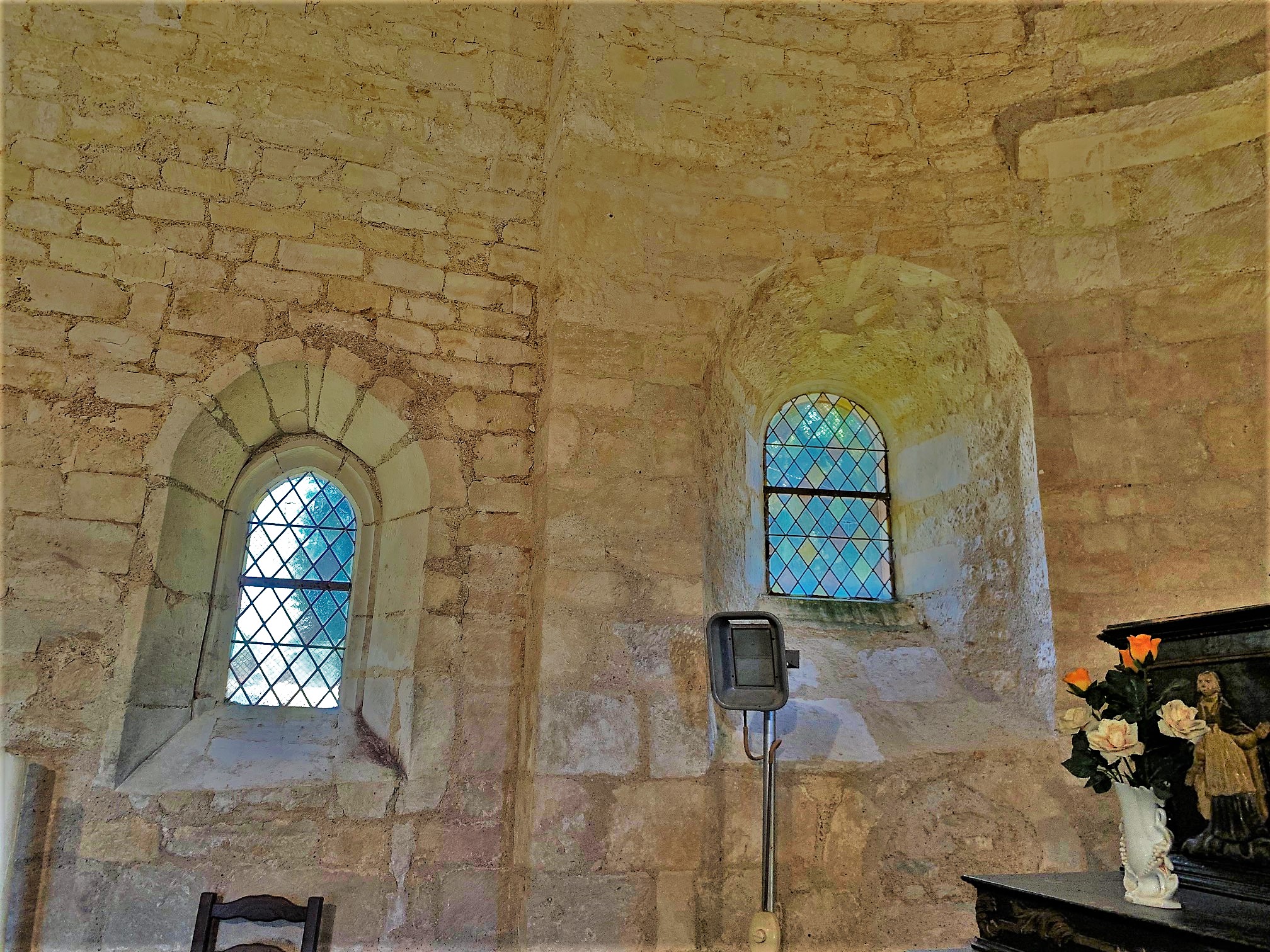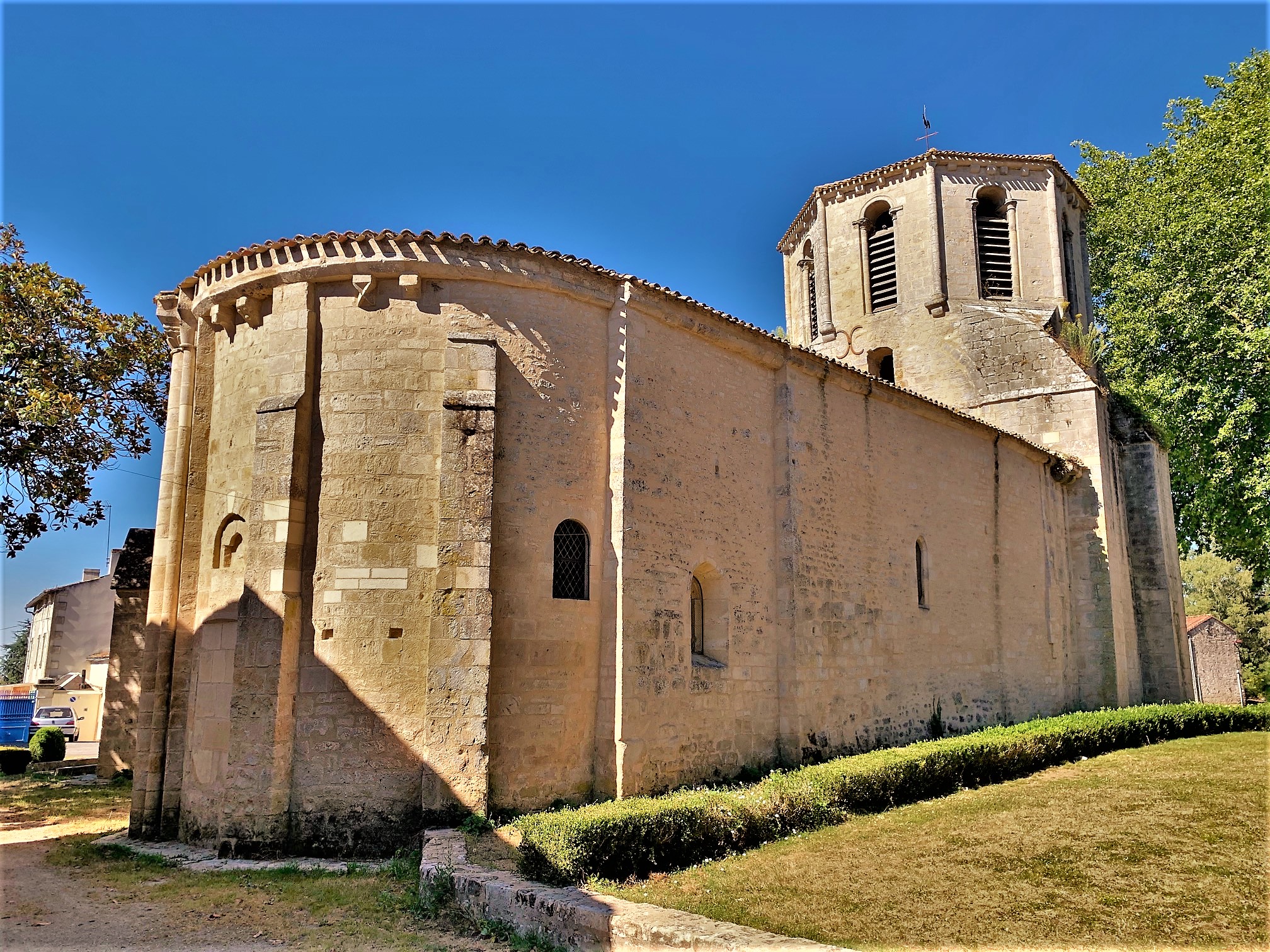 Inscrite par les M.H. depuis 1986, c'est une église intéressante par son architecture, son mobilier et son histoire, bien mise en valeur dans un parc arboré. L'abside et les deux premières travées de la nef subsistent de l'édifice primitif du 12ème siècle. Au 13ème siècle, on ajoute un clocher octogonal dépourvu de flèche. Le passage de la partie haute octogonale à la partie basse carrée s'effectue par l'intermédiaire 4 glacis surmontant autant de contreforts. Celui placé au sud-ouest abrite l'escalier du clocher. Au 15ème siècle, une partie du mur roman sud est abattu pour l'ajout d'une chapelle à deux travées voûtées sur croisée d'ogives quadripartite. Quelques décors sculptés sont à remarquer. La petite porte d'entrée s'ouvre dans cette chapelle. La voûte primitive de la nef disparaît, une charpente en bois la remplace pour les trois travées orientales et le sanctuaire. La quatrième est voûtée en berceau brisé, la travée sous clocher est voûtée sur croisée d'ogives octopartite. L'église Saint-Médard possède un charme étrange mais certain, elle abrite de jolies choses. Le maître-autel et le tabernacle sont du 17ème siècle, leurs décors sont en bel état. Sur le tabernacle, l'agneau du sacrifice est entouré de Saint-Médard et de Sainte-Radegonde.