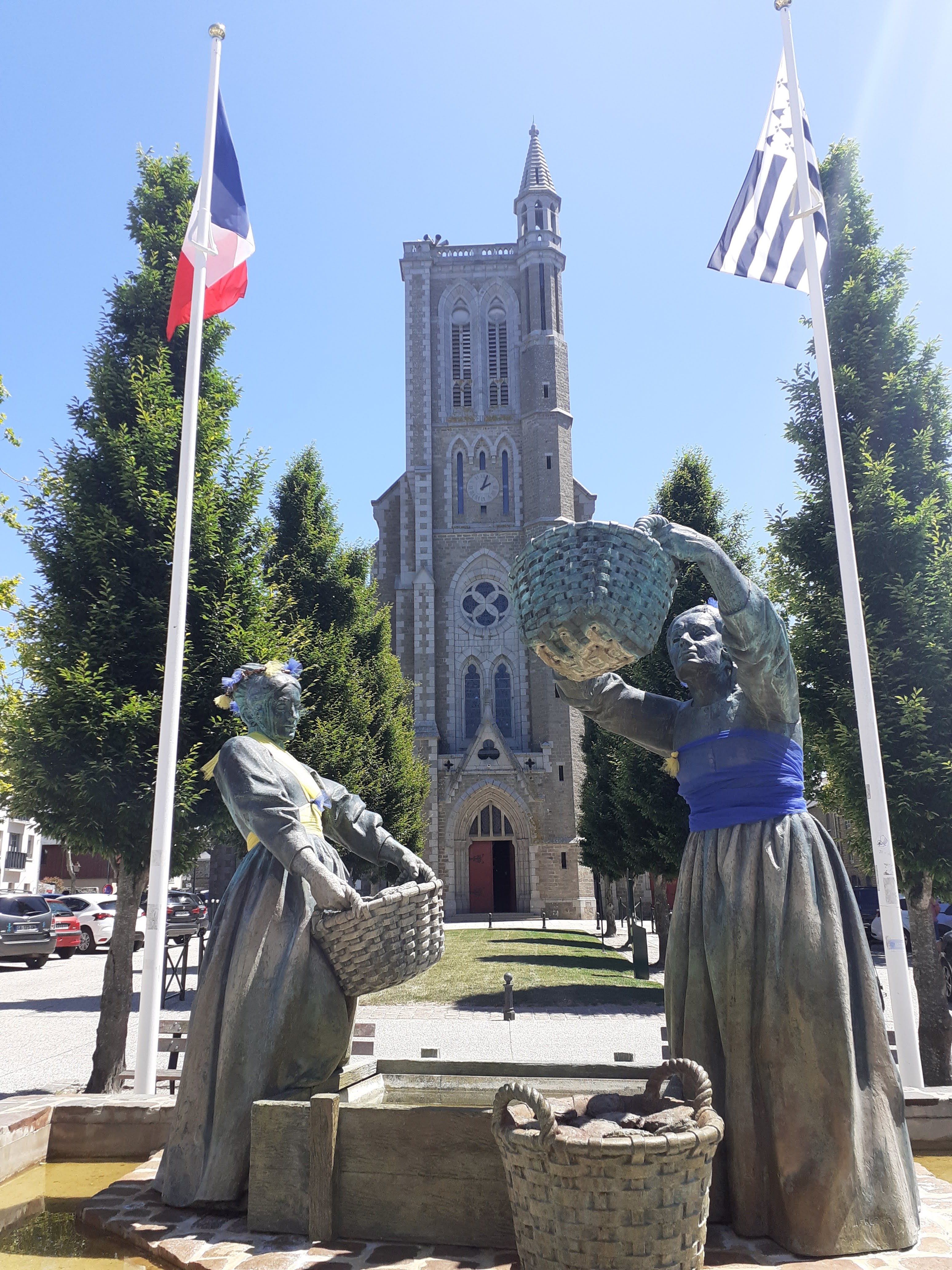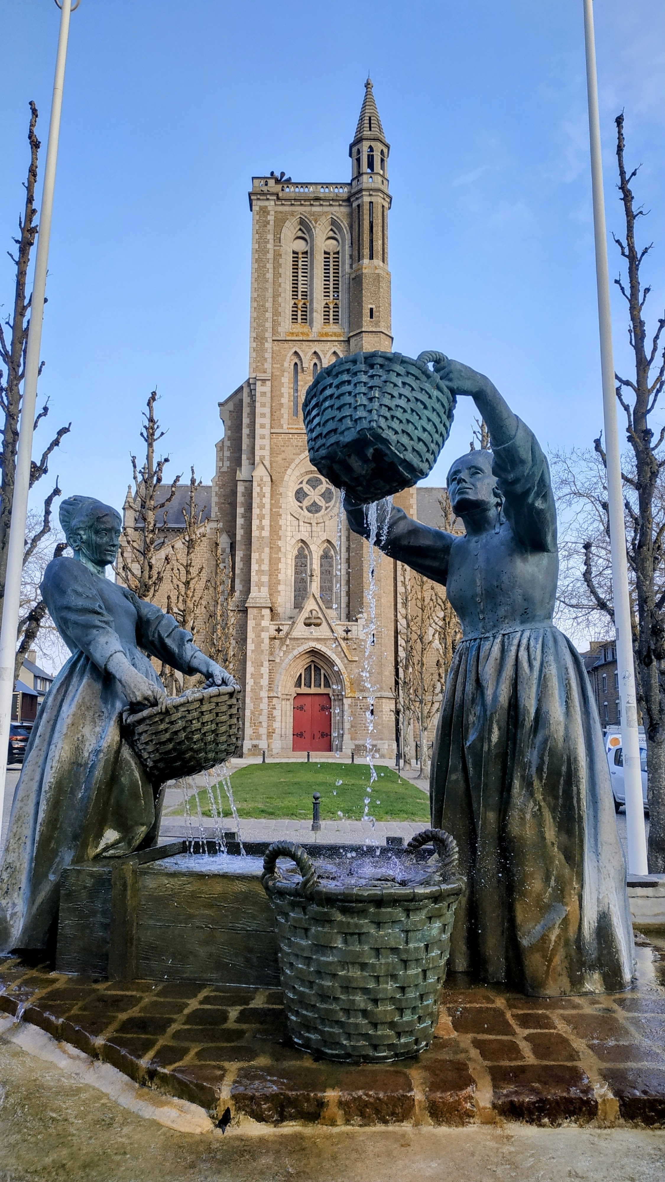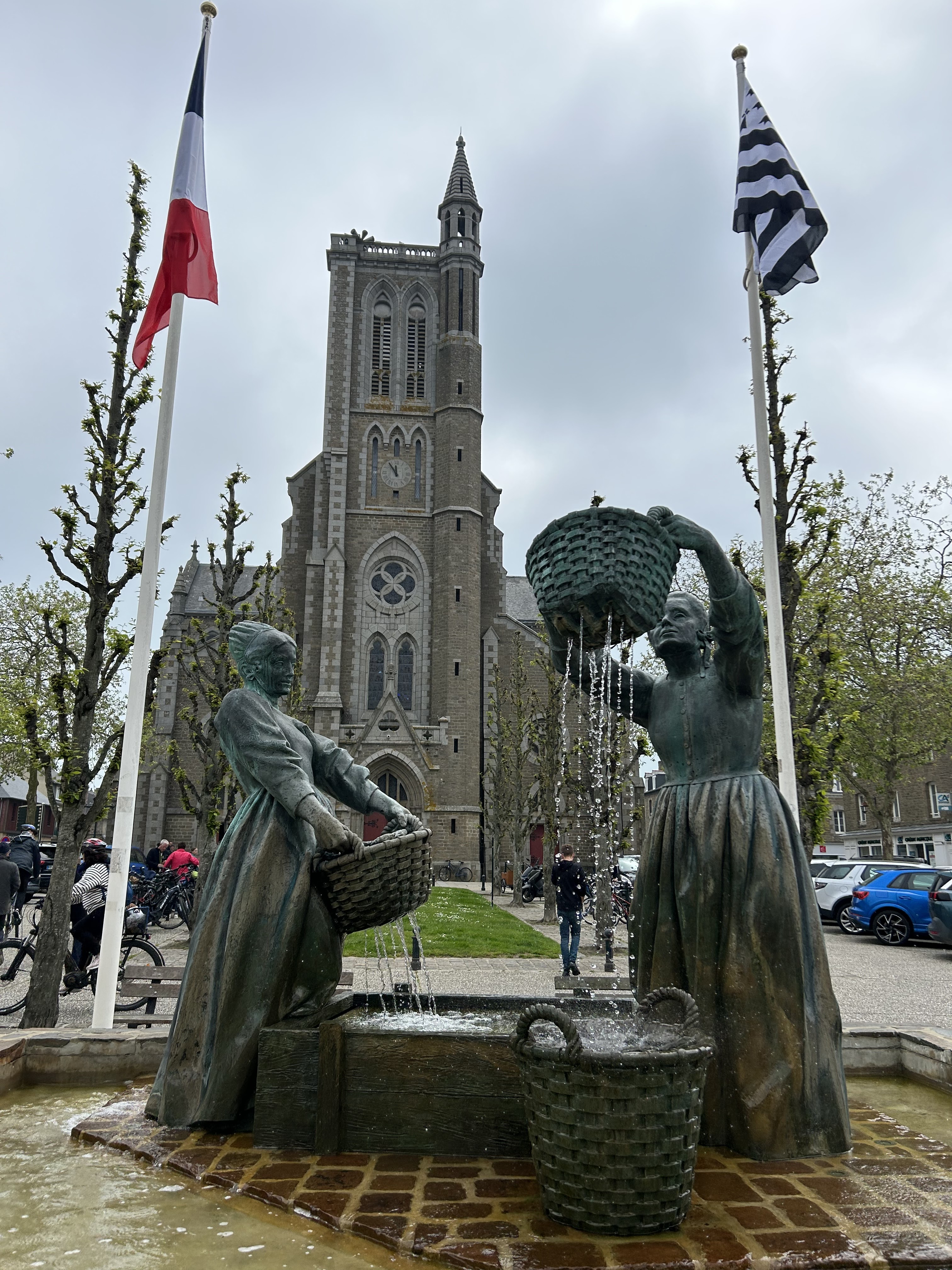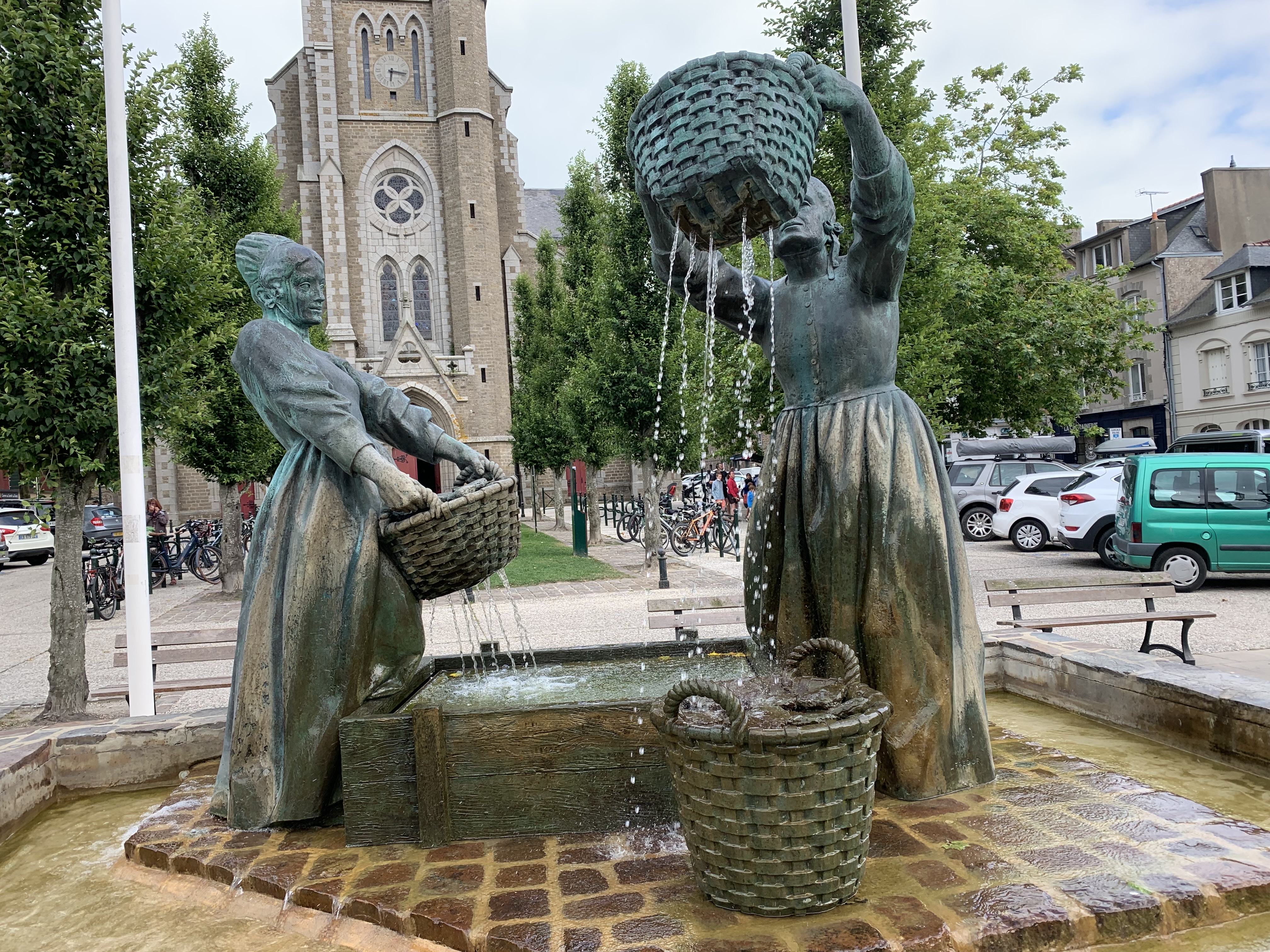 Belle église et les Poissonnières installées devant font une très jolie photo souvenir de Cancale 😊
