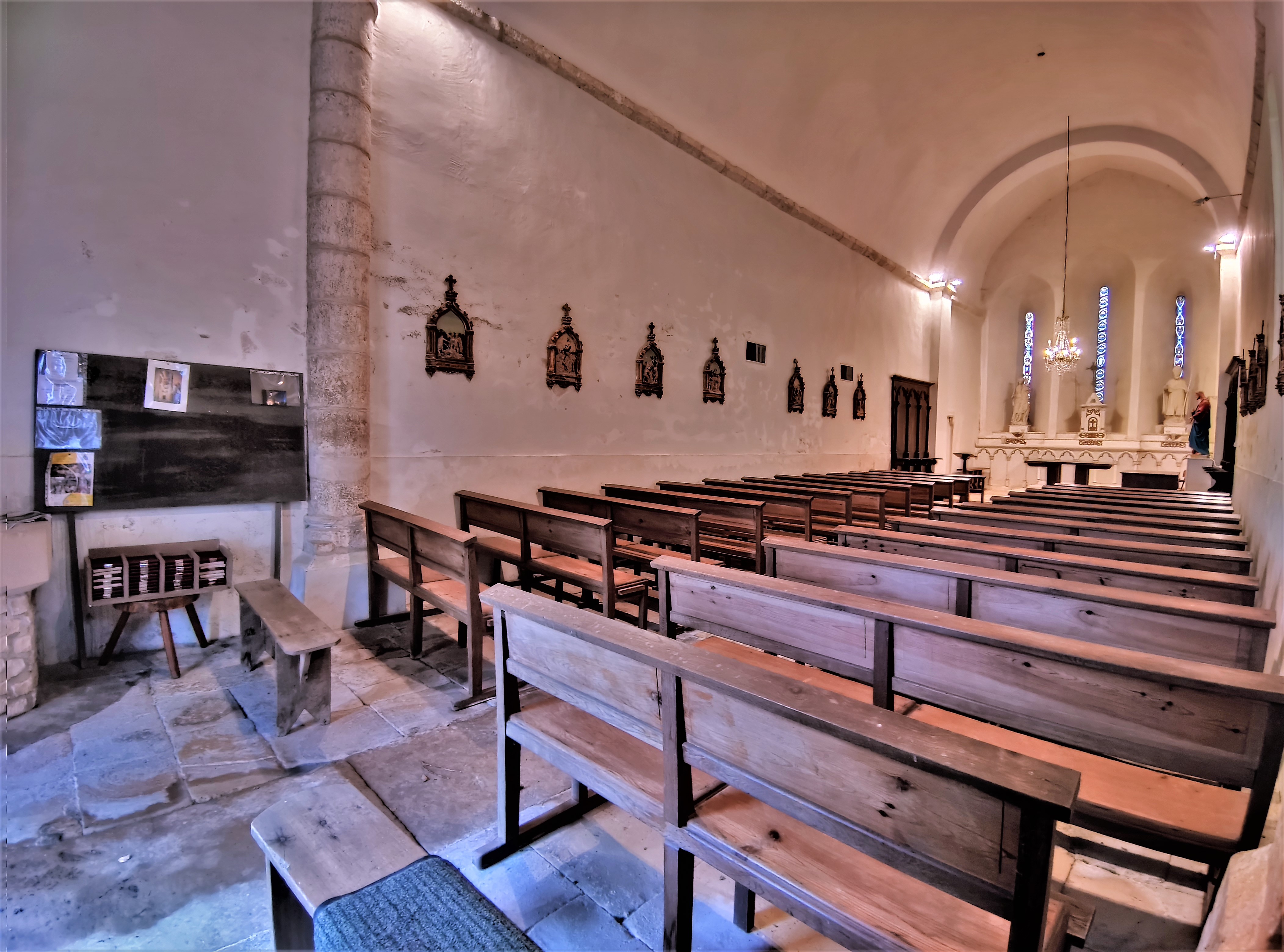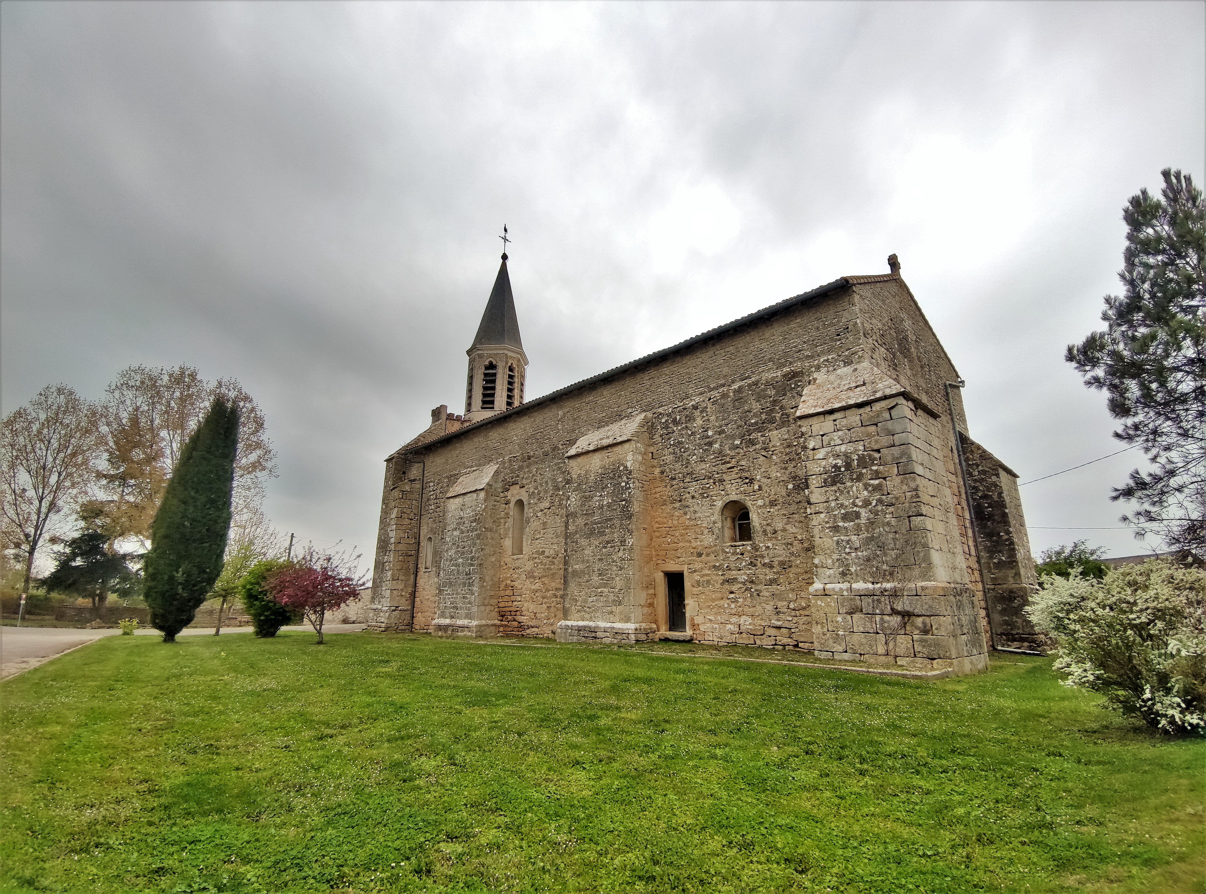 Bien mise en valeur au milieu du village, elle a quelque chose de très authentique. Ouverte et accueillante, cette église du 11ème siècle, rehaussée au 19ème, a vu son clocher reconstruit deux fois, octogone dominant aujourd'hui la façade Ouest. L'édifice est un simple rectangle fortement contreforté, voûté en berceau de briques, il a gardé les caractéristiques architecturales romanes et le charme des petites églises de bourgs. Église ouverte tous les jours, en bon état et bien entretenue, elle témoigne de mille ans d'histoire, prouvant s'il en était besoin de l'attachement des paroissiens à leur église et des citoyens à leur patrimoine. Une curiosité, une statue de l'Archange Saint-Michel est logée dans le mur Nord. Archange de la protection, de la sécurité, de la paix, de la clarté, il semble à sa place dans ce lieu préservé.