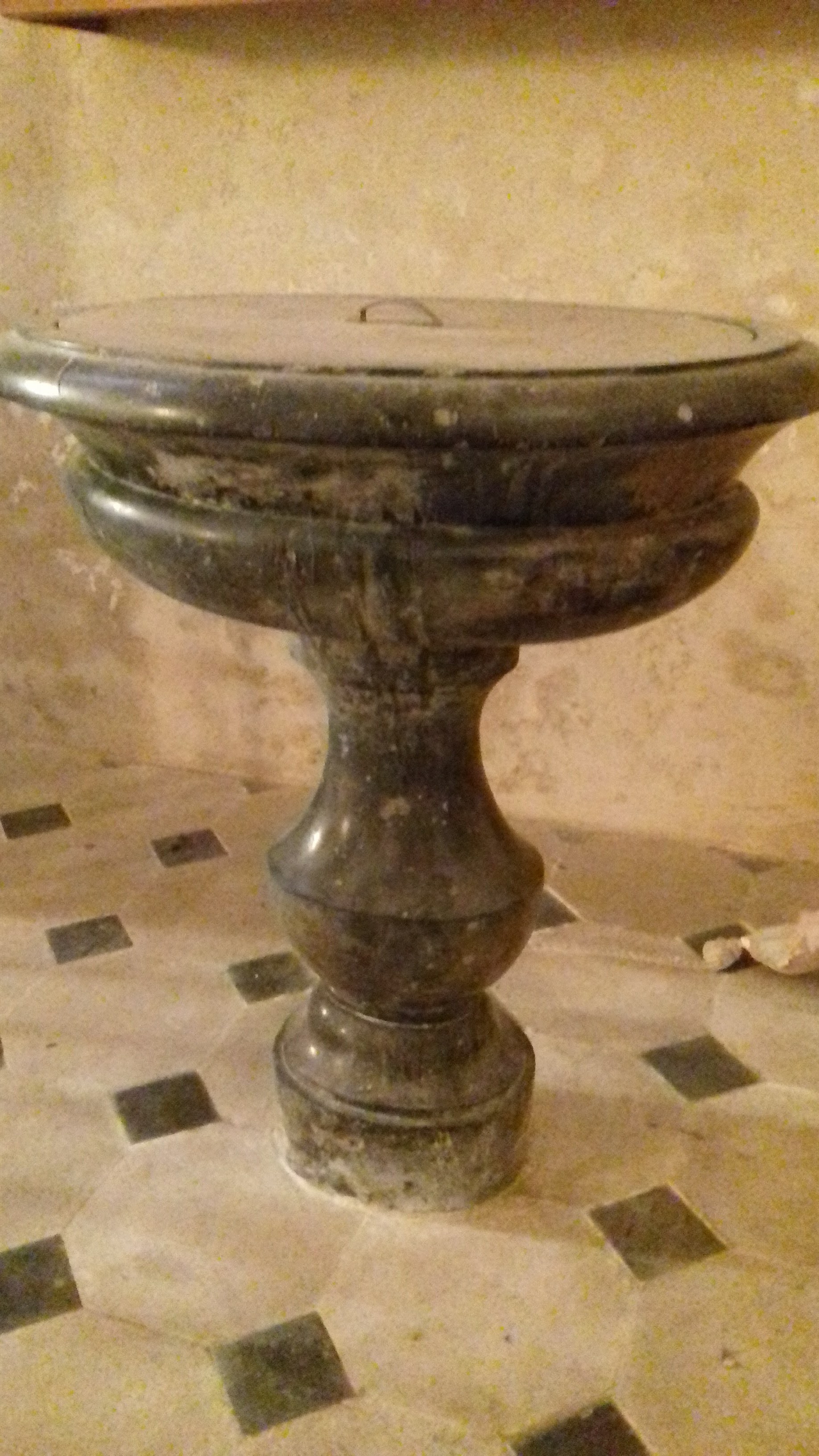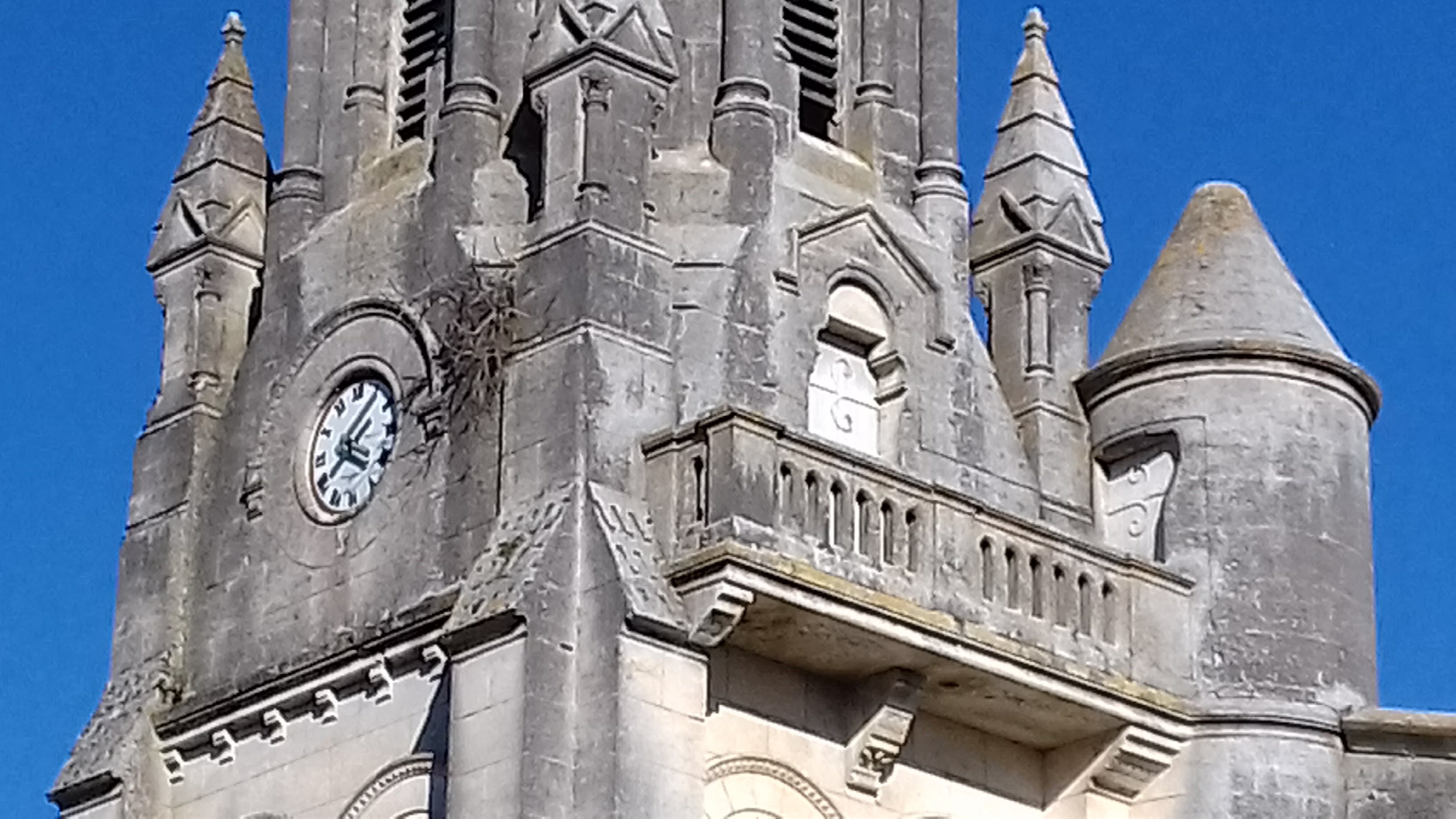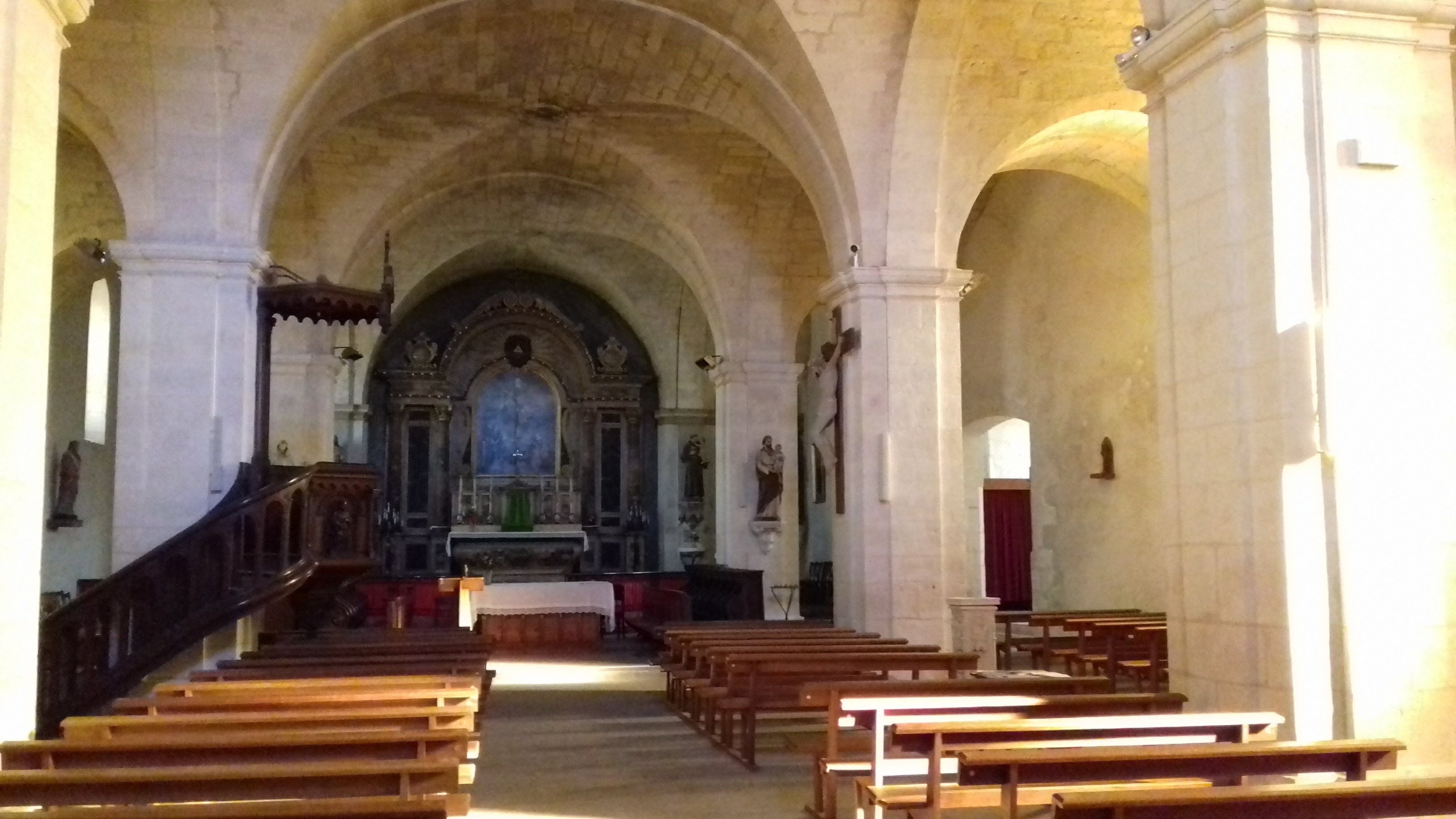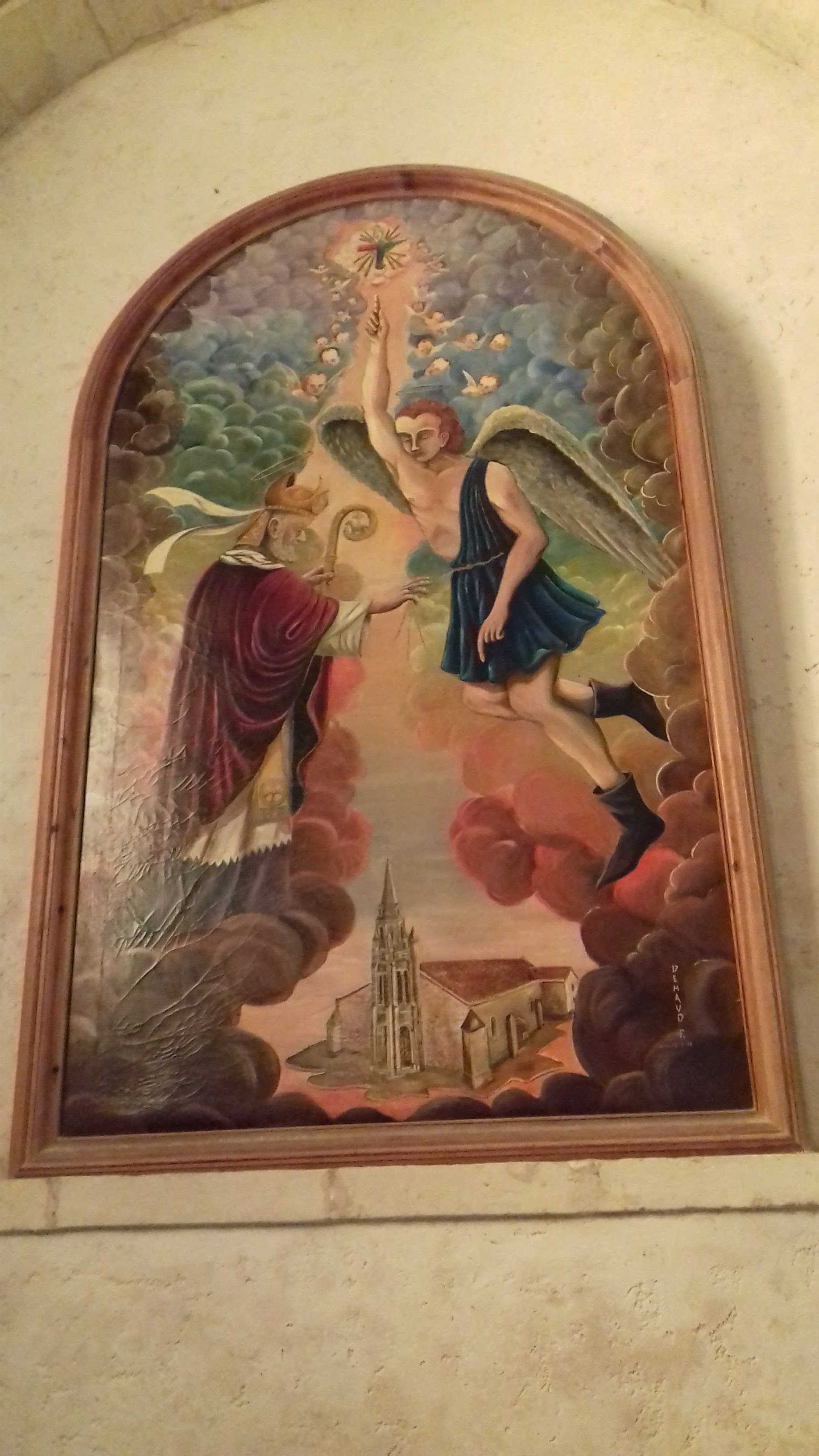 Église au milieu des vignes. Clocher flèche magnifique. Double travées. Reliques de St Disant. Beaux tableaux.