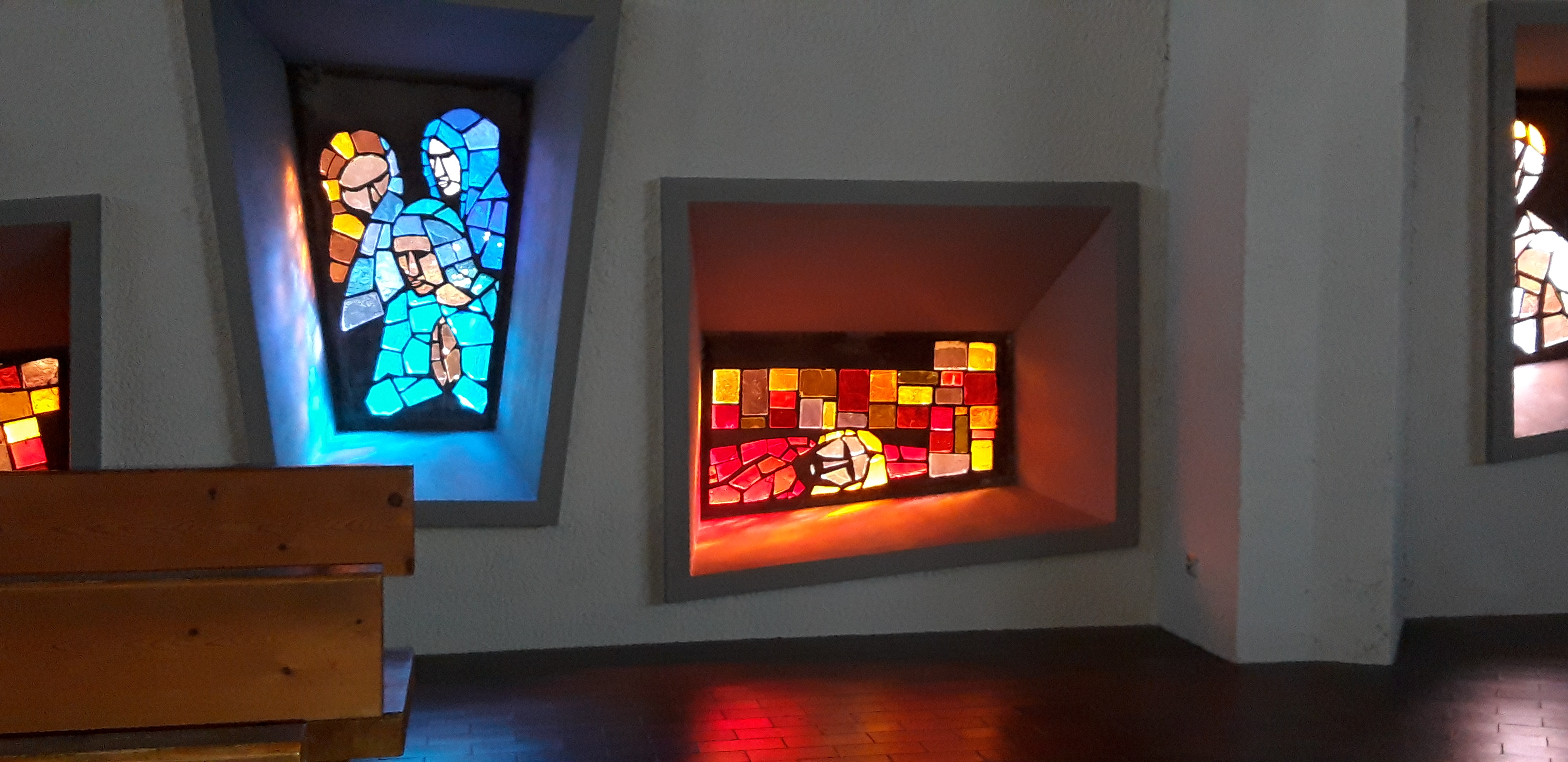 Très belle réalisation moderne tant dans l'organisation de l'espace que par la lumière diffusée par les vitraux .
