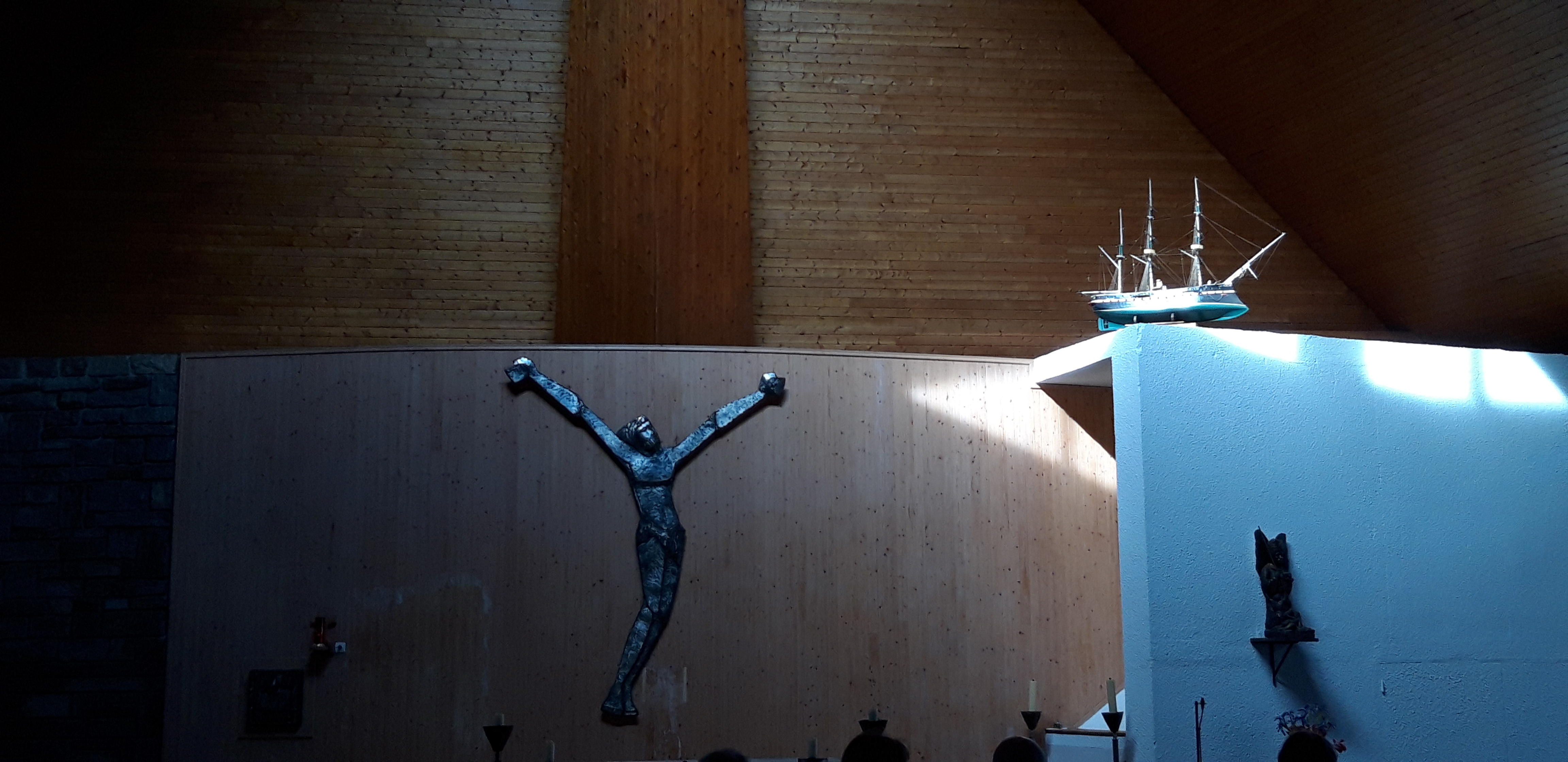 Il fait entrer pour trouver cette église belle. Le chemin de croix en vitrail notamment l'aménagement de l'espace intérieur en font une Eglise Priante. Un bel orgue installé récemment donne beaucoup de qualité à la liturgie. Messe une fois sur deux le samedi soir ou le dimanche matin.