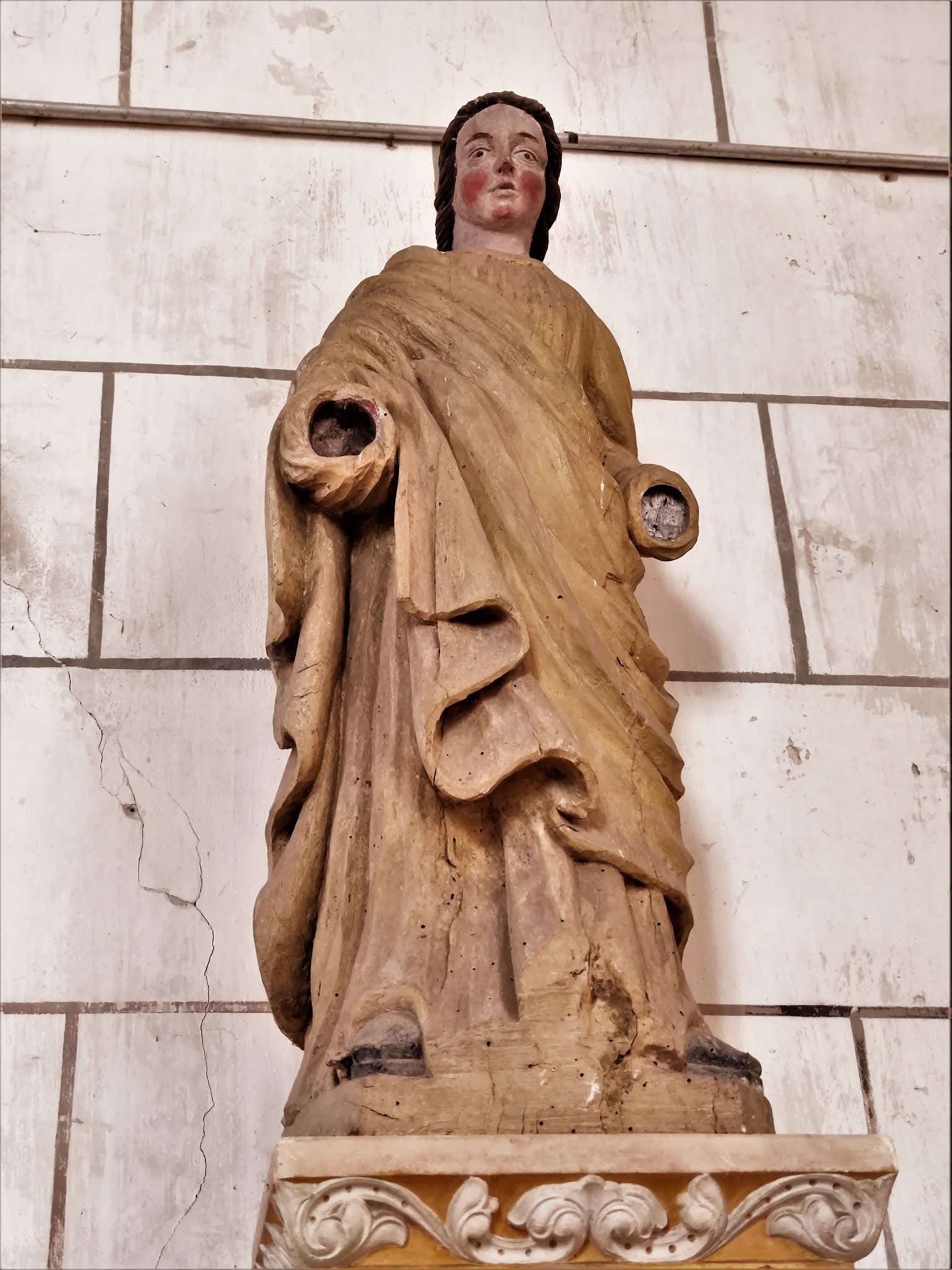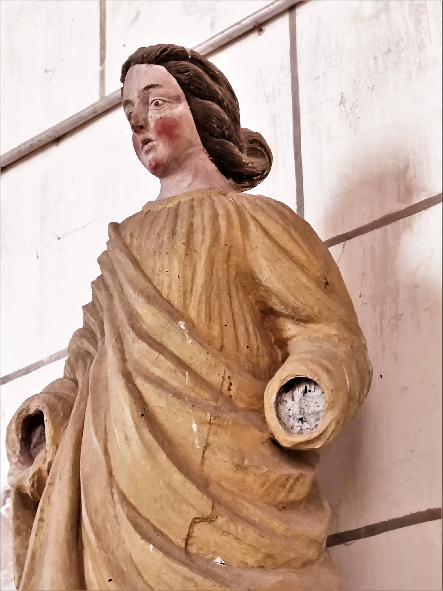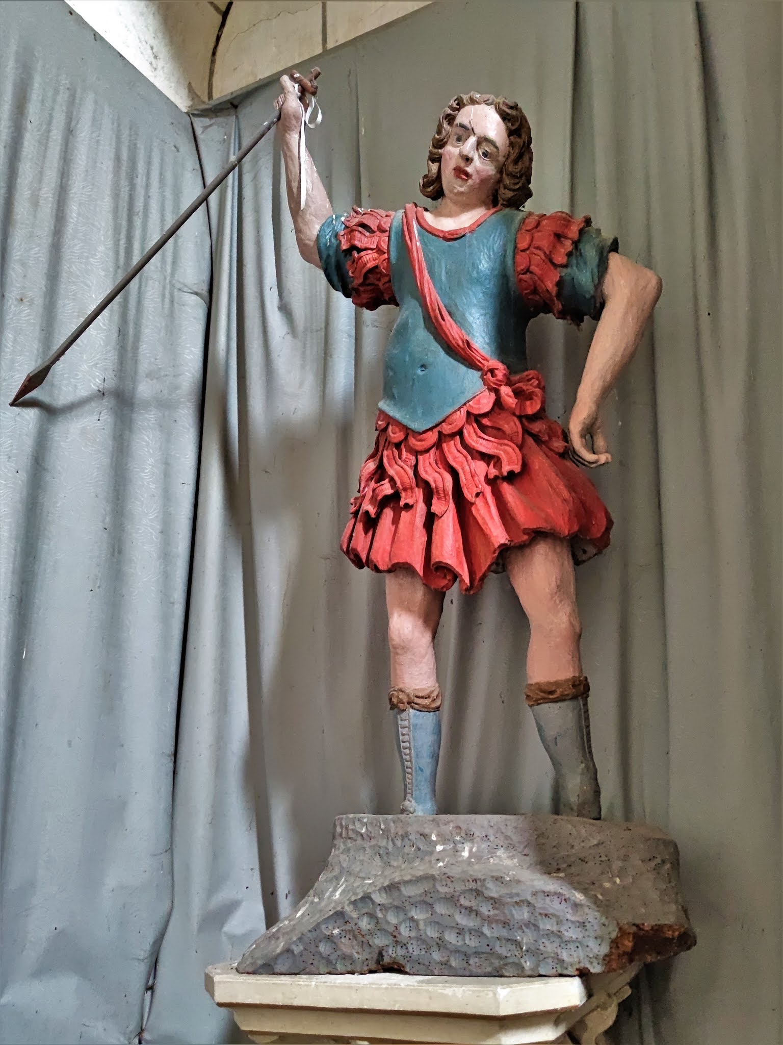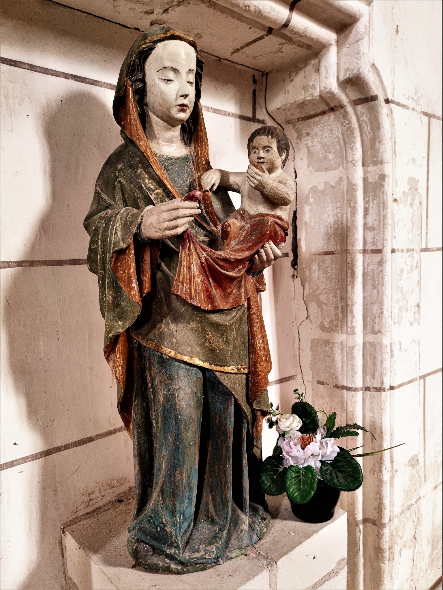 Prendre les clés à la mairie et s'offrir la visite de cet édifice, inscrit par les M.H. depuis 1971, réjouira les amateurs de sculptures anciennes. Des sculptures du 16ème, 17ème et 18ème siècles, ainsi qu'un gisant du 13ème siècle sont hébergés dans l'église, tous Classés à titre d'objets. L'histoire de l'église paroissiale Saint-Michel, dont la construction date du 13ème siècle, fut dépendante de l'histoire de l'Abbaye de Saint-Cyran, fondée au 7ème siècle, disparue à la révolution et ressuscitée au 20ème siècle. Le village de Saint-Michel-en-Brenne est connu pour cette Abbaye. Son église paroissiale à simple nef, chevet plat et voûtée en berceau de lambris, abrite de bien belles choses. Les sculptures proviendraient de l'abbaye, le gisant, après de multiples péripéties et une restauration, de l'église de Subtray, détruite en 1798.