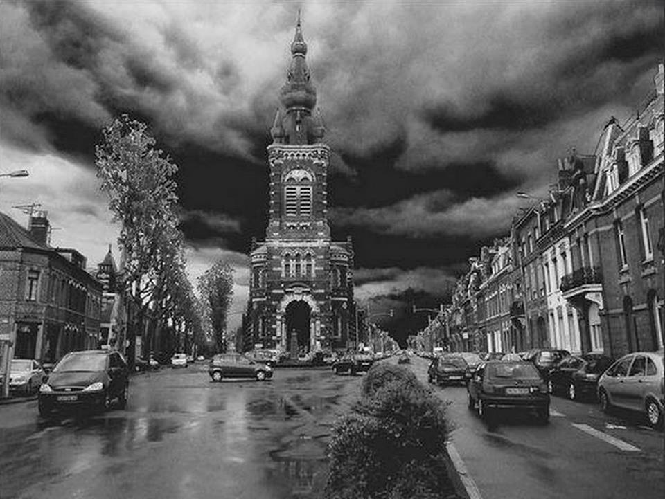 C'est l'église de mon enfance ou j'ai fait mes deux communions et ma confirmation. L'image est une photo de l'église Saint-Michel sous l'orage.