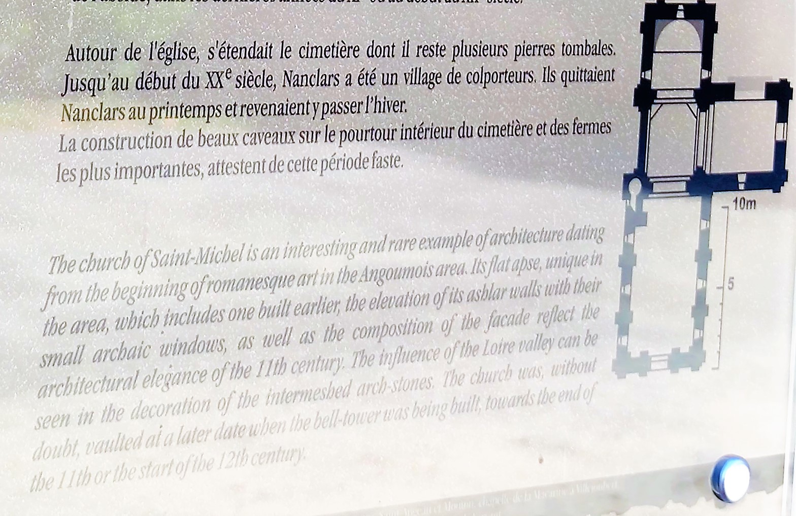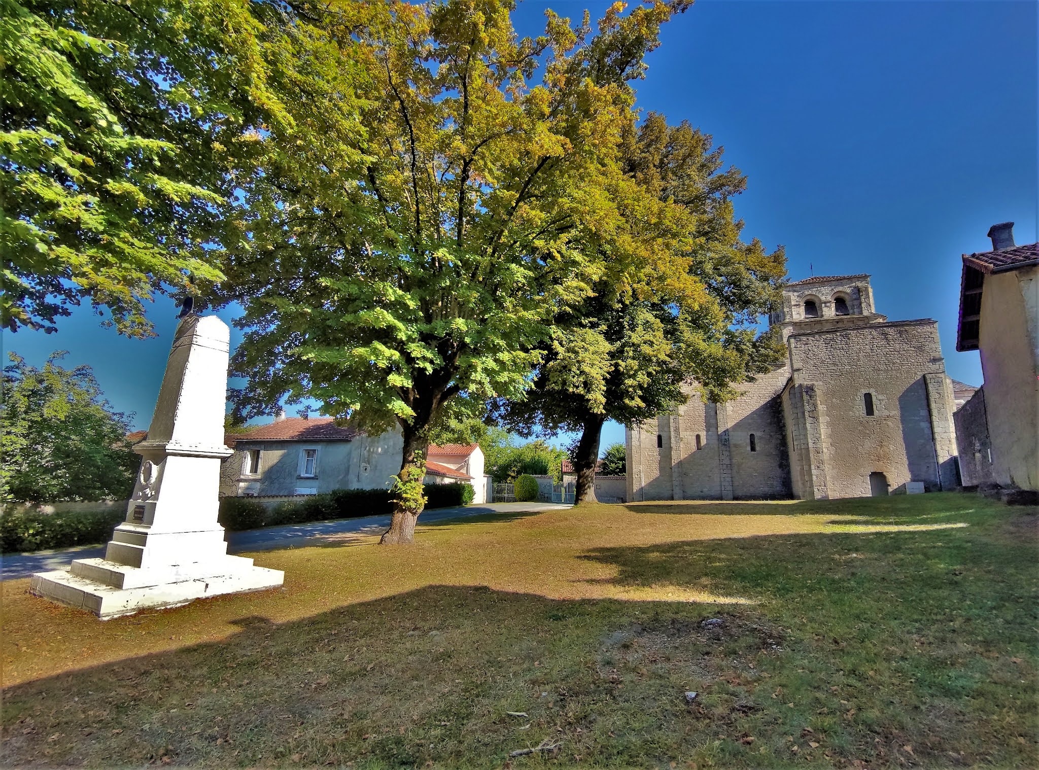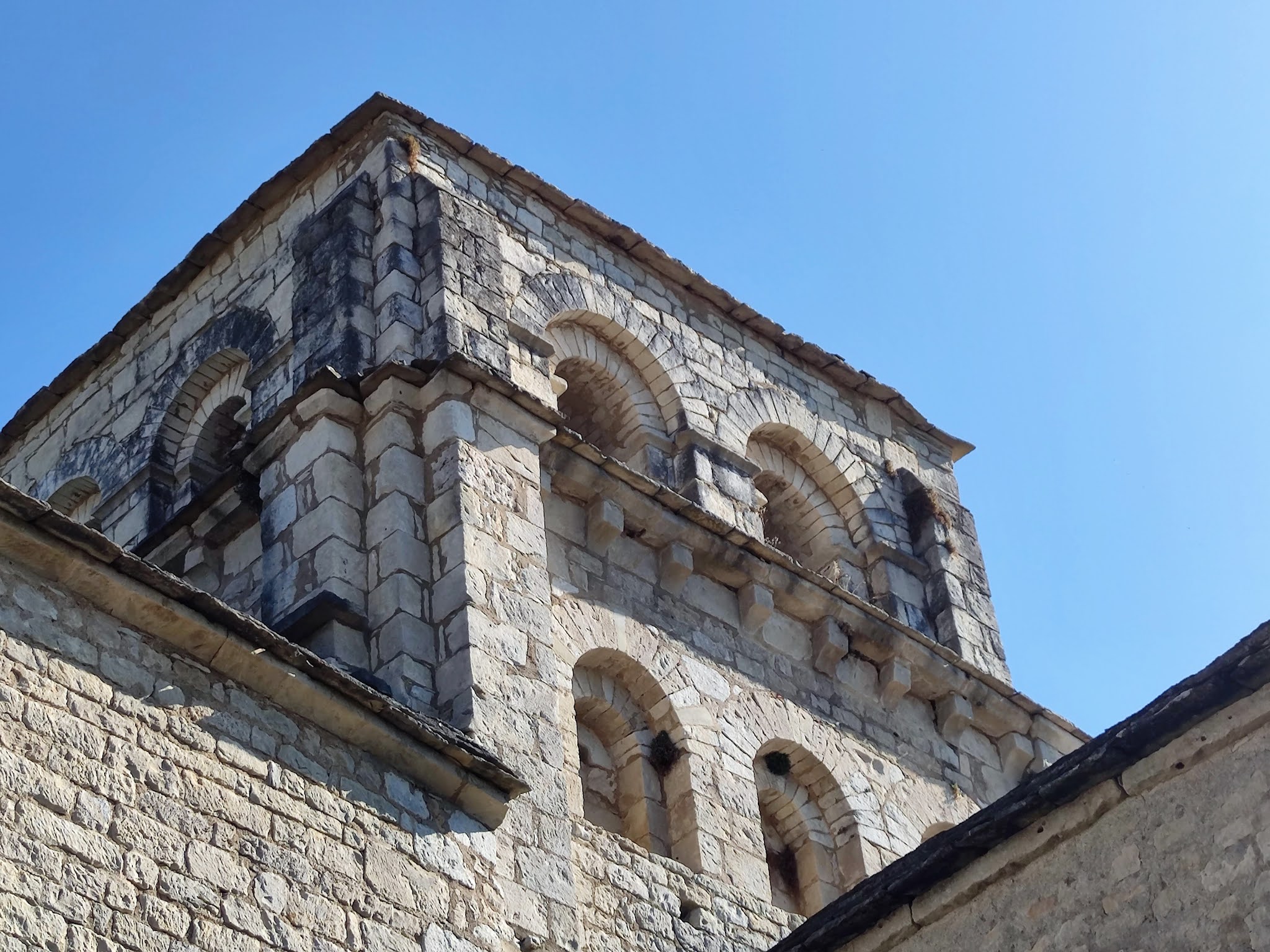 Un édifice dont certaines parties ont plus de 12 siècles, voila une invitation à un voyage à une époque ou le rigorisme était de mise. L'église Saint-Michel est Impressionnante par sa taille pour ce village de 200 habitants. Son histoire remonte au moins au 9ème siècle, l'existence d'un sanctuaire est avéré en 852. L'église carolingienne était celle d'un prieuré dépendant de l'abbaye de Saint-Cybard d'Angoulême. De l'église primitive, il reste le chevet plat abritant une abside voûtée en demi-coupole, cette extrémité orientale est donc carrée à l'extérieur et ronde à l'intérieur. Le reste de l'édifice a été élevé au 11ème et 12ème siècles. Datées du 13ème au 15ème siècles, des peintures ont été mises à jour récemment. L'austérité du monument semble inspirée par les normes du premier âge roman. Cette austérité est présente partout, il existe peu de décors sculptés, les ouvertures sont à minima, de petites baies dont la partie haute est une simple pierre taillée en forme d'arc plein cintre. La construction elle-même impose cette impression de sévérité. Sur la façade Ouest, 4 contreforts s'élèvent, réduisant la place allouée au portail. Un édifice dont certaines parties ont plus de 12 siècles, voila une invitation à un voyage à une époque ou le rigorisme était de mise.