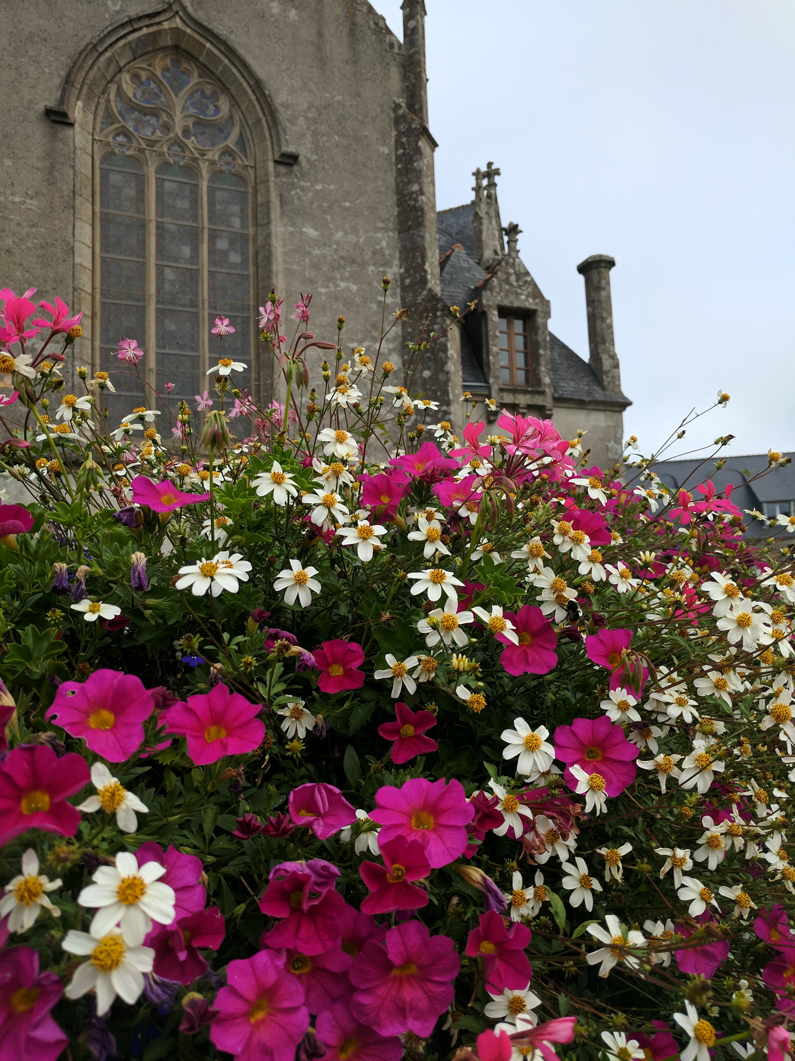 Belle église, les fleurs à l'extérieur étaient très pittoresques avec la vieille église. Petite ville pittoresque.