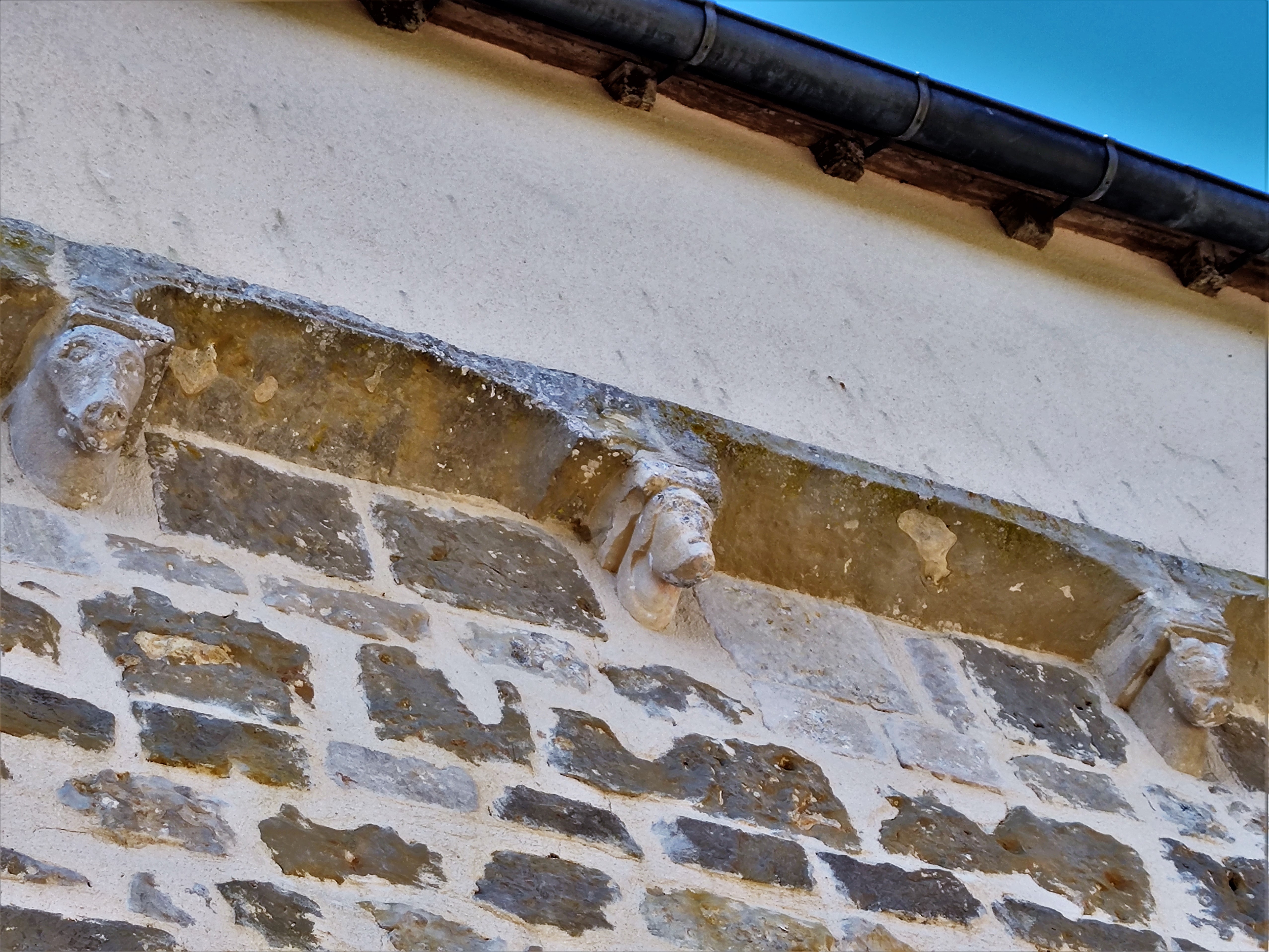 L'église est accueillante, propre et visiblement entretenue avec soin. Pour la visiter, il faut s'adresser à la mairie. Église millénaire, ses origines remontent au milieu du 10ème siècle, elle fut au bord de la ruine plusieurs fois puis restaurée. En 1803, la paroisse rejoignit celle de Vivonne, l'église fut alors dépouillée et devint une grange. En 1843, l'église est restaurée, la paroisse recréée, une cure construite au Sud, elle est à nouveau restaurée fin 19ème. L'église est aujourd'hui mise en valeur par un cadre simple mais dégagé, une restauration du 20ème l'a préservée mais transformée. Placé au Nord-Ouest de l'église, un crucifix fait face aux visiteurs qui rejoignent le portail pour entrer dans l'édifice. Christ en bronze, je pense, croix en béton et socle en pierres. Le mur Nord porte des modillons de l'église primitive. L'intérieur très simple donne à voir un enfeu, quelques statues, un retable et un chemin de croix. L'église est accueillante, propre et visiblement entretenue avec soin. Pour la visiter, il faut s'adresser à la mairie.
