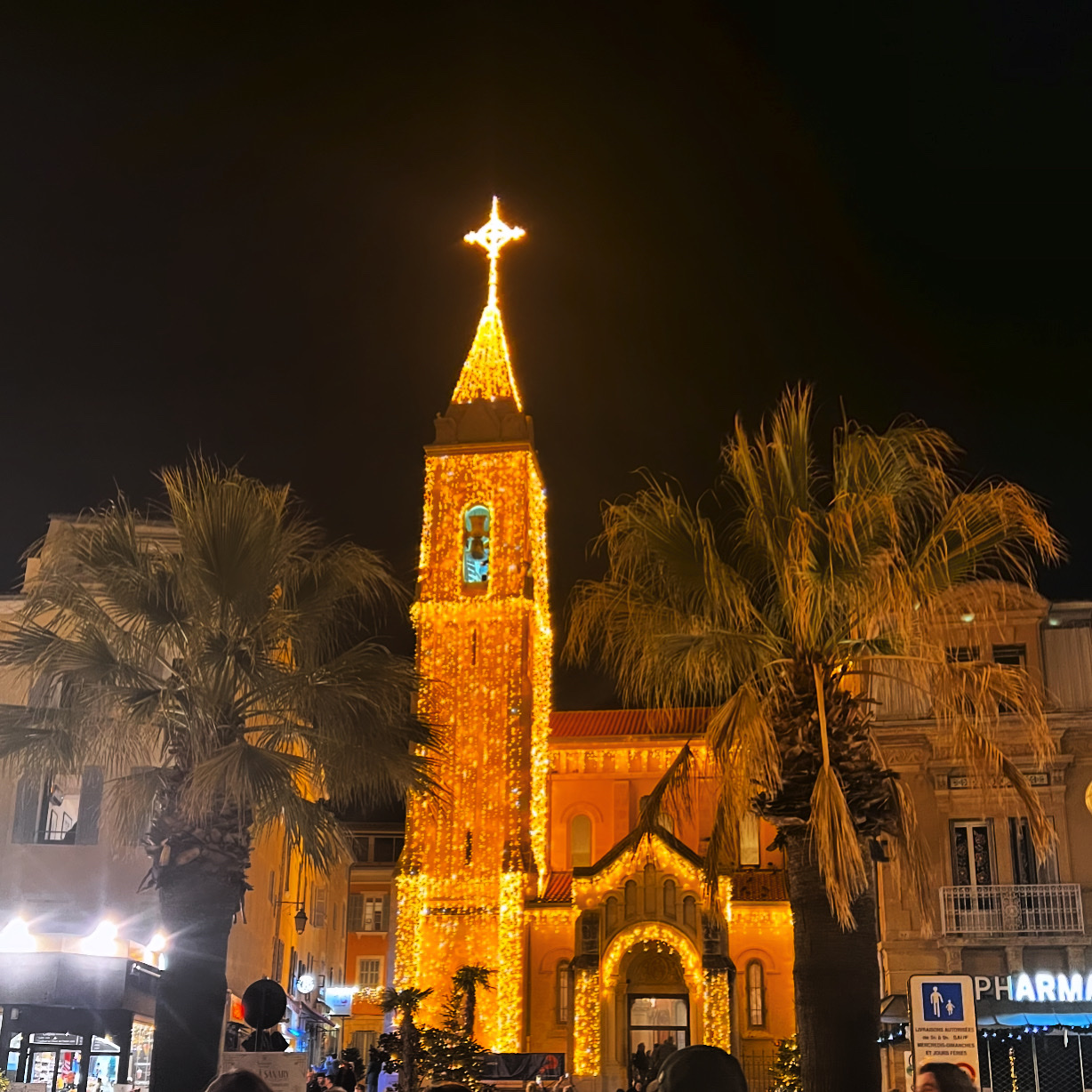 Magestueuse église sur le port de Sanary Ambiance conviviale Accueil chaleureux Sublimes fresques Très belle Crèche pour Noël Suivi des chants et de la messe sur grand écran Prêtre accueillant Je recommande