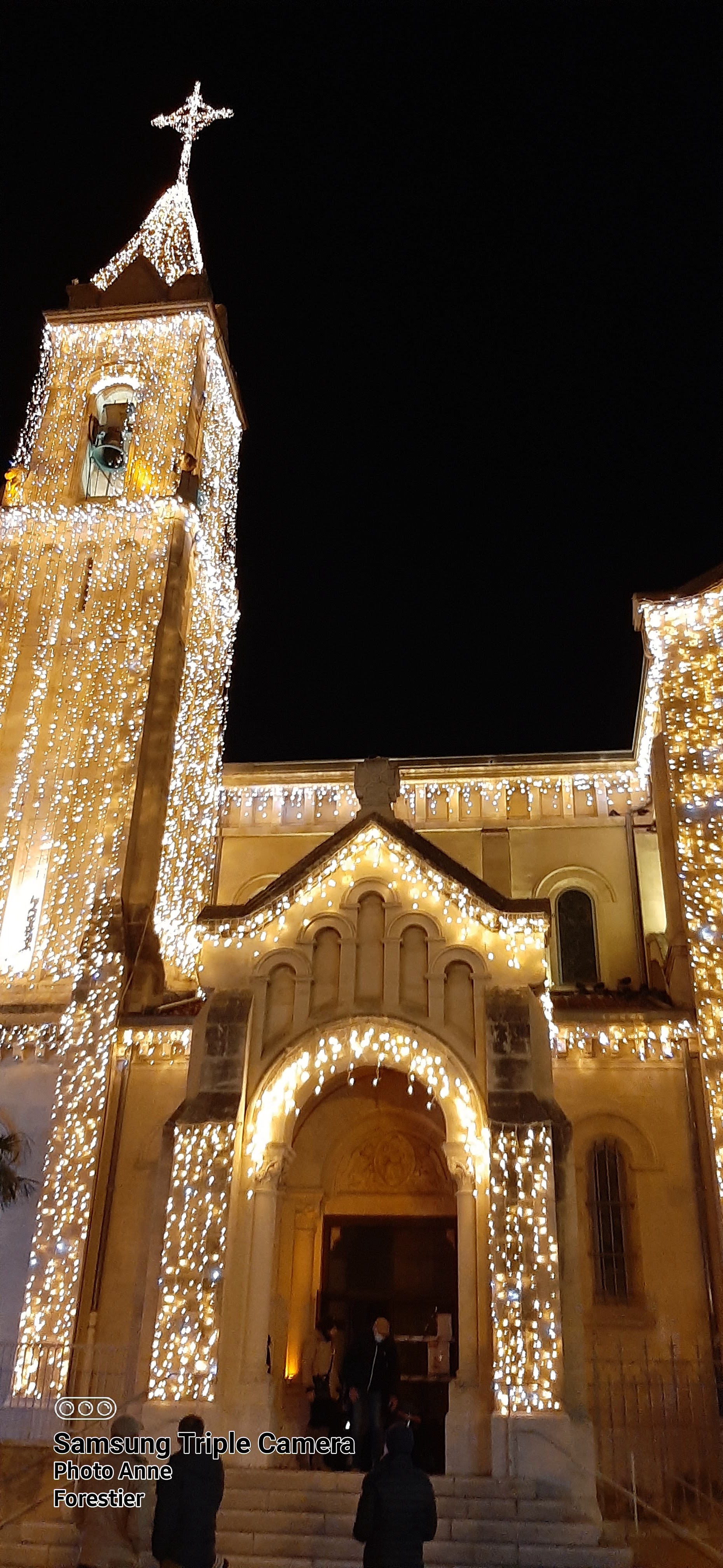 Magnifique église Saint Nazaire en face du quai très jolie de l'extérieur et de l'intérieur murs et plafonds décorés de fresques avec Orgue. Ce jour encore une jolie Crèche.