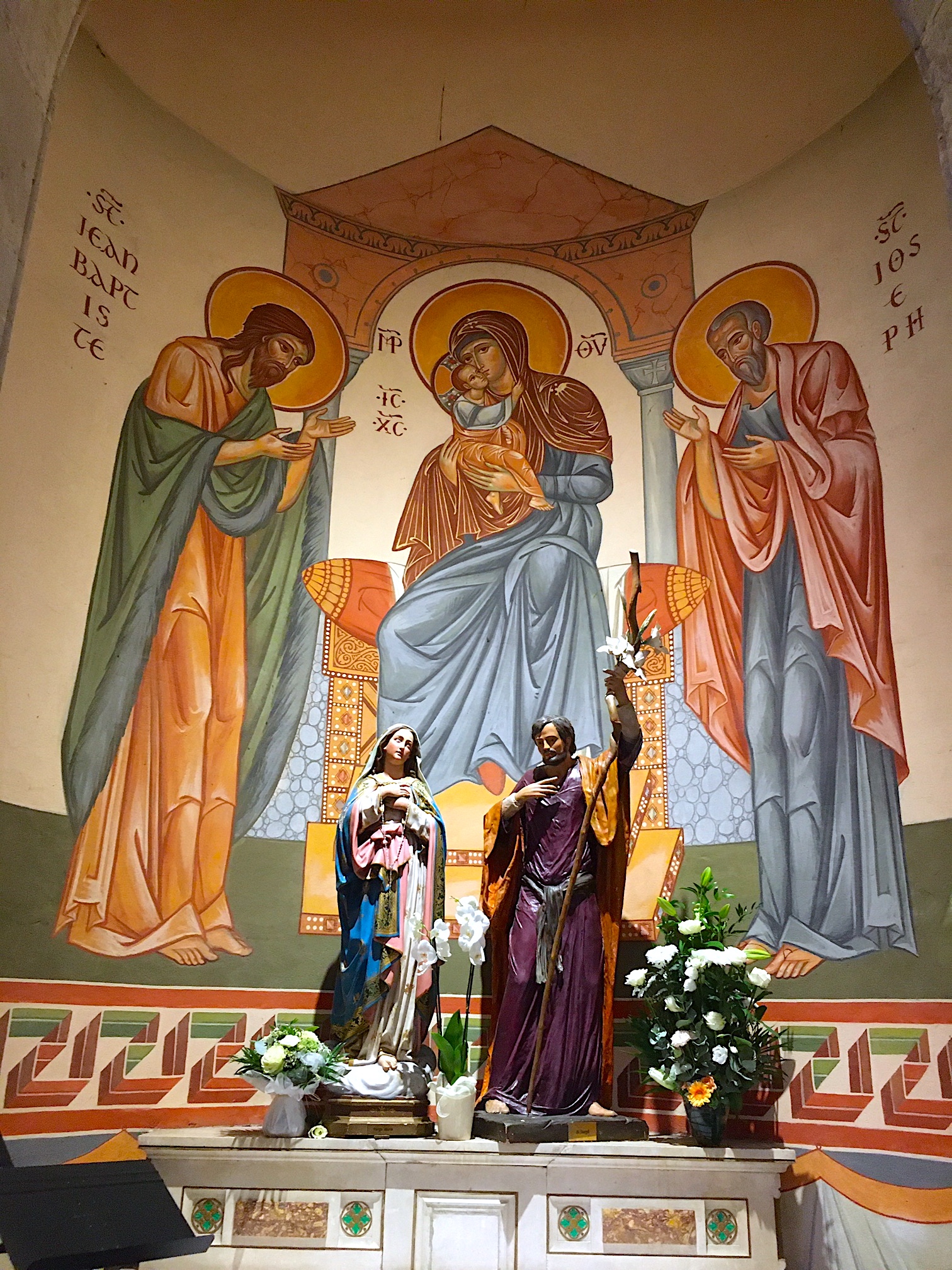 Petite église simple à l'extérieur, tandis que l'intérieur est vraiment beau, décoré de fresques dans un style byzantin/melkite. Bravo à Jean-Baptiste Garrigou qui en est à l'origine