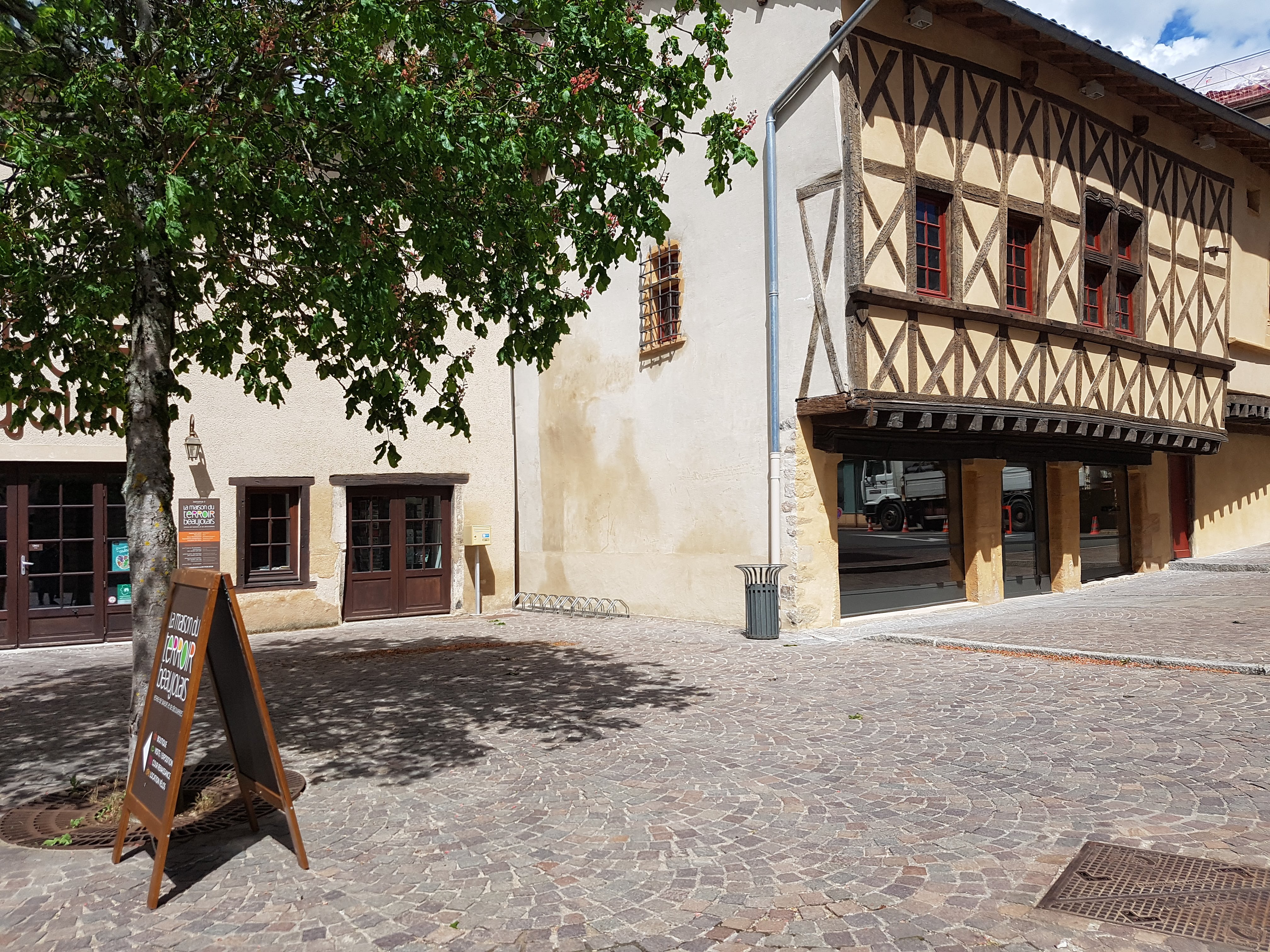 Beaujeu, la ville qui est à l'origine de l'appellation beaujolais. Le Centre bien aménagé avec sa mairie, ses architectures variées et l'église Saint Nicolas (l'intérieur est apaisant, lumineux, joli)