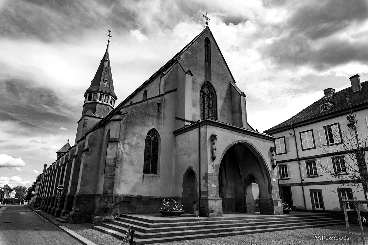 Belle église située à Haguenau, le cimetière se trouve par contre de l'autre côté du pont sur la gauche. Difficulté pour stationner