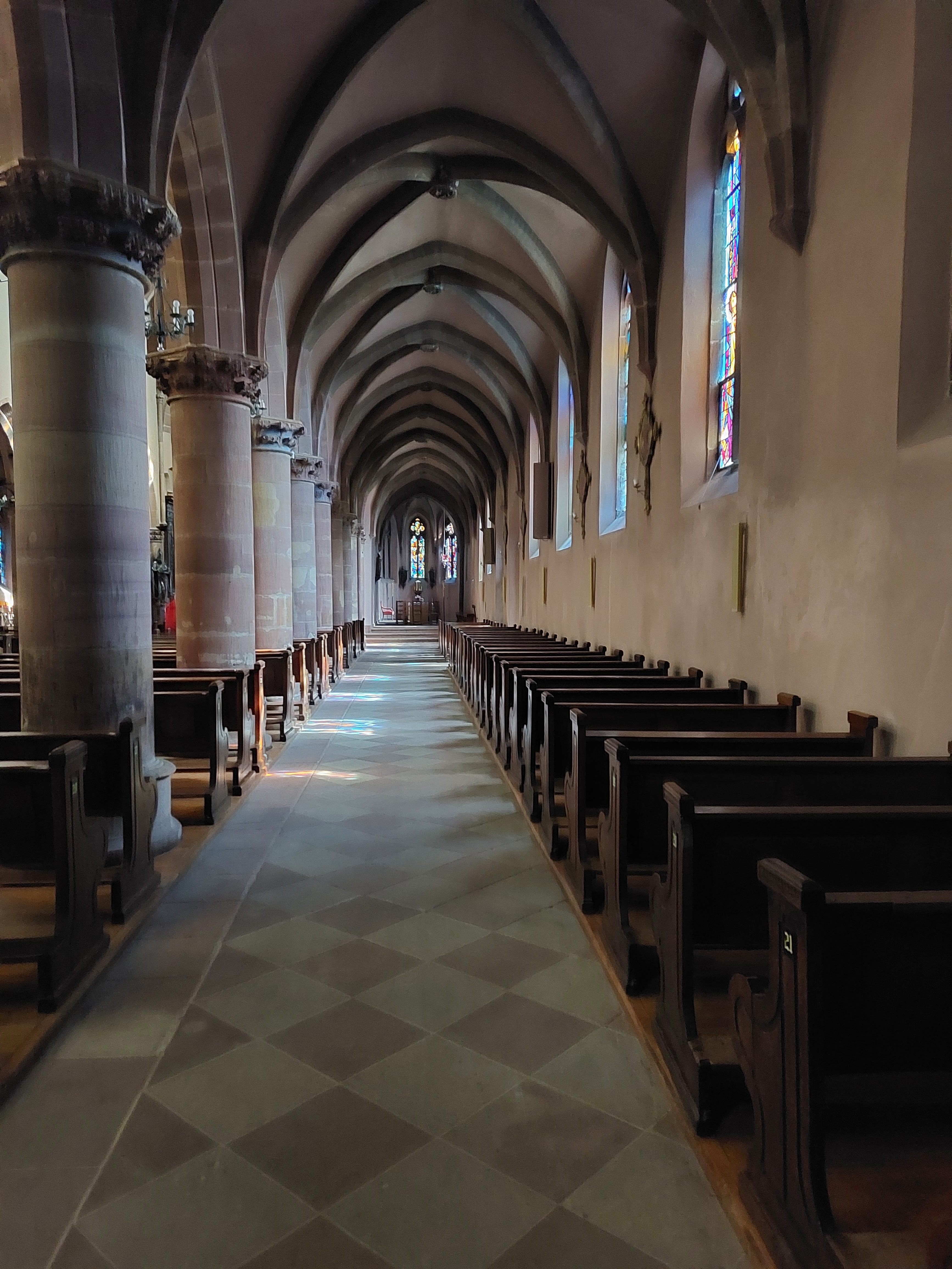 Belle cathédrale ancienne avec de beaux vitraux romans.