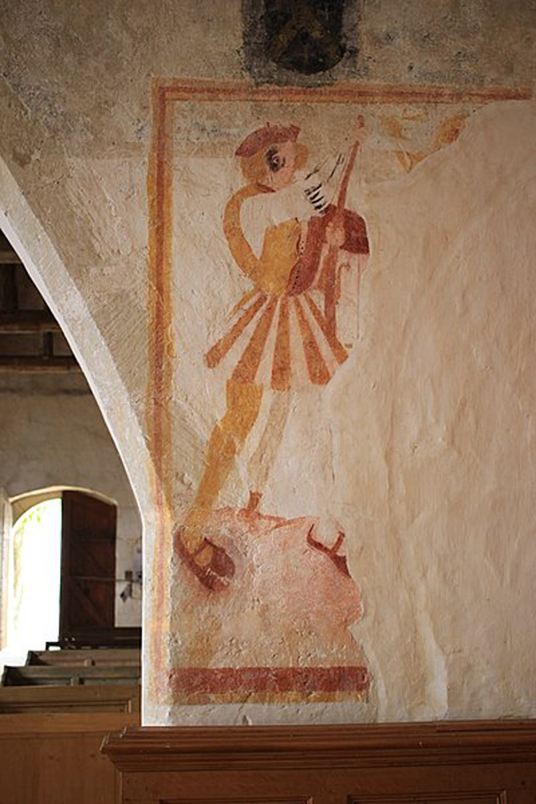 L'église date du XVe siècle. A l'origine, l'édifice devait être une construction romane et une importante partie des peintures murales peuvent remmonter à cette époque. Les peintures murales (restaurées en 1996) sont classées au titre des monuments historiques.