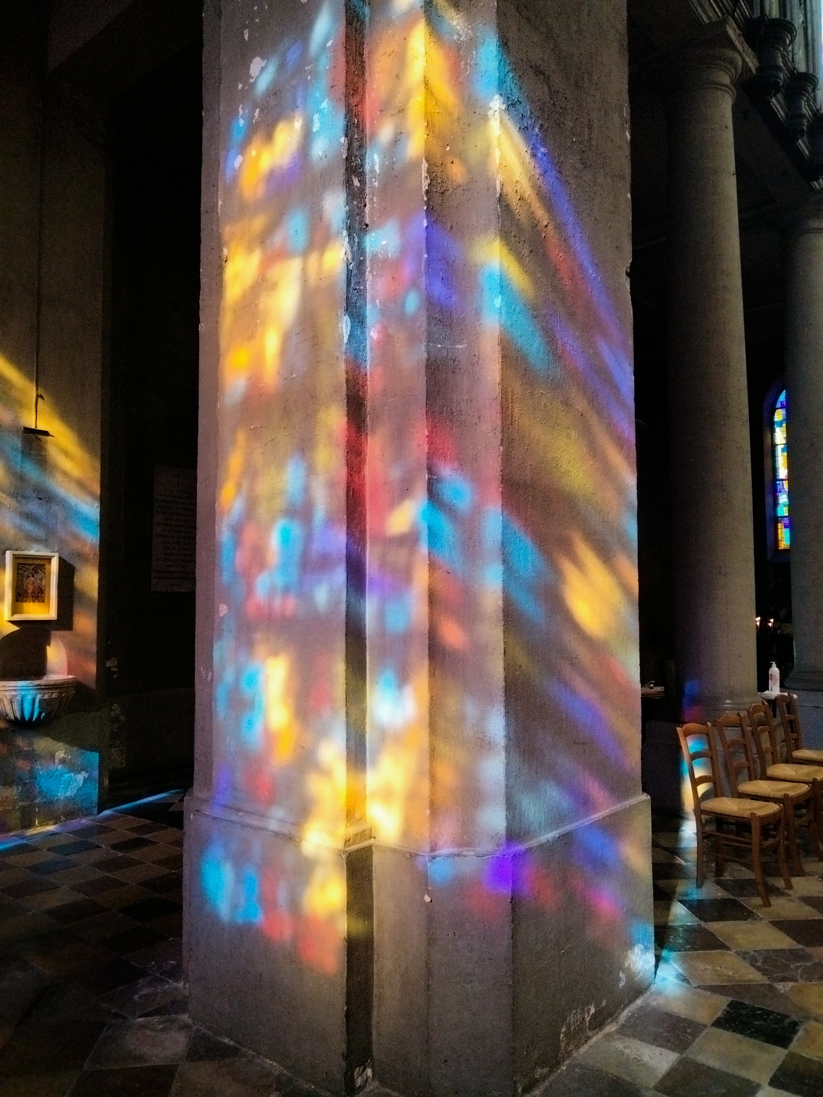 Les vitraux sont magnifiques et offrent des couleurs incroyables aux colonnades de l'église. Une belle découverte !