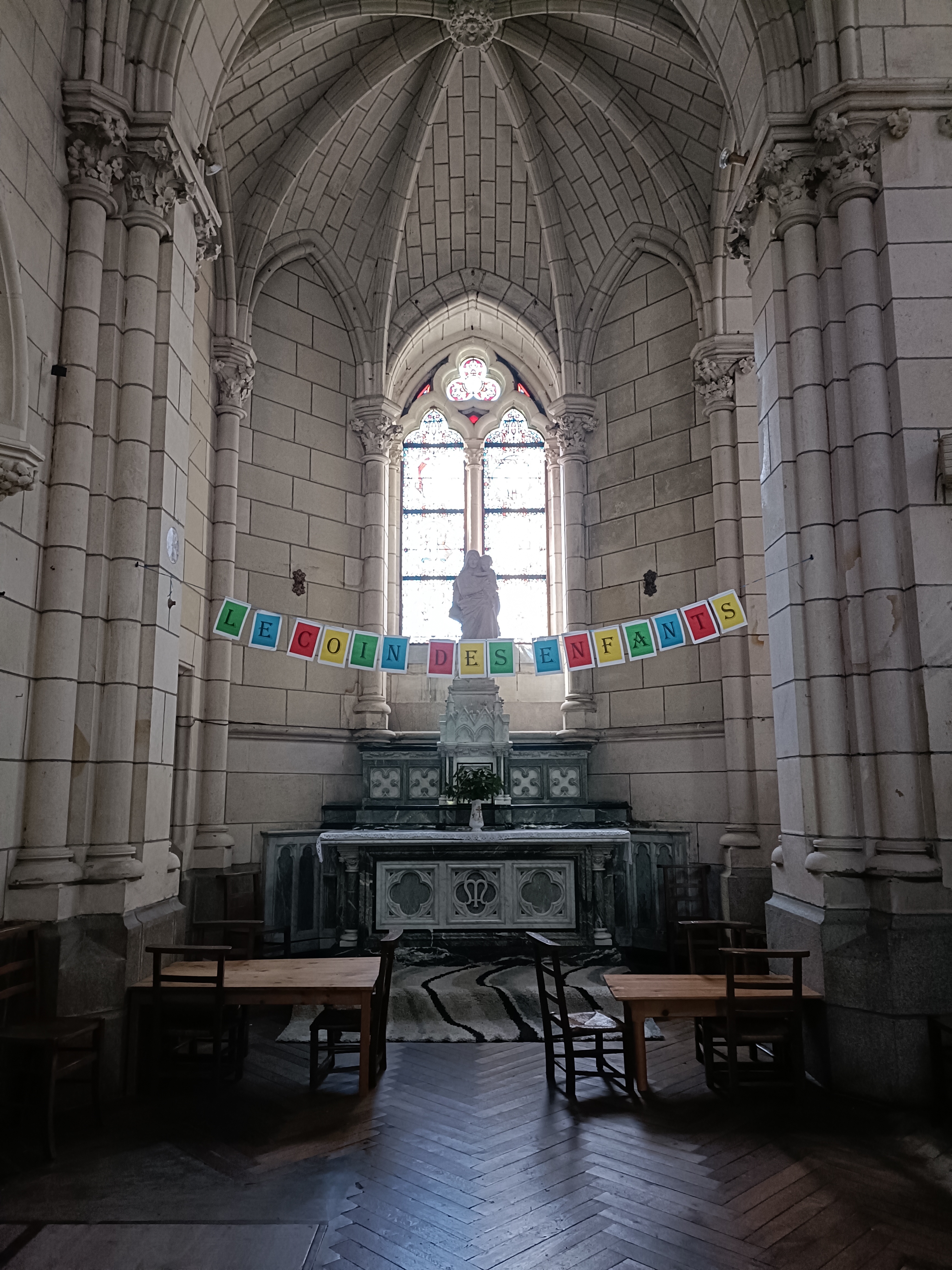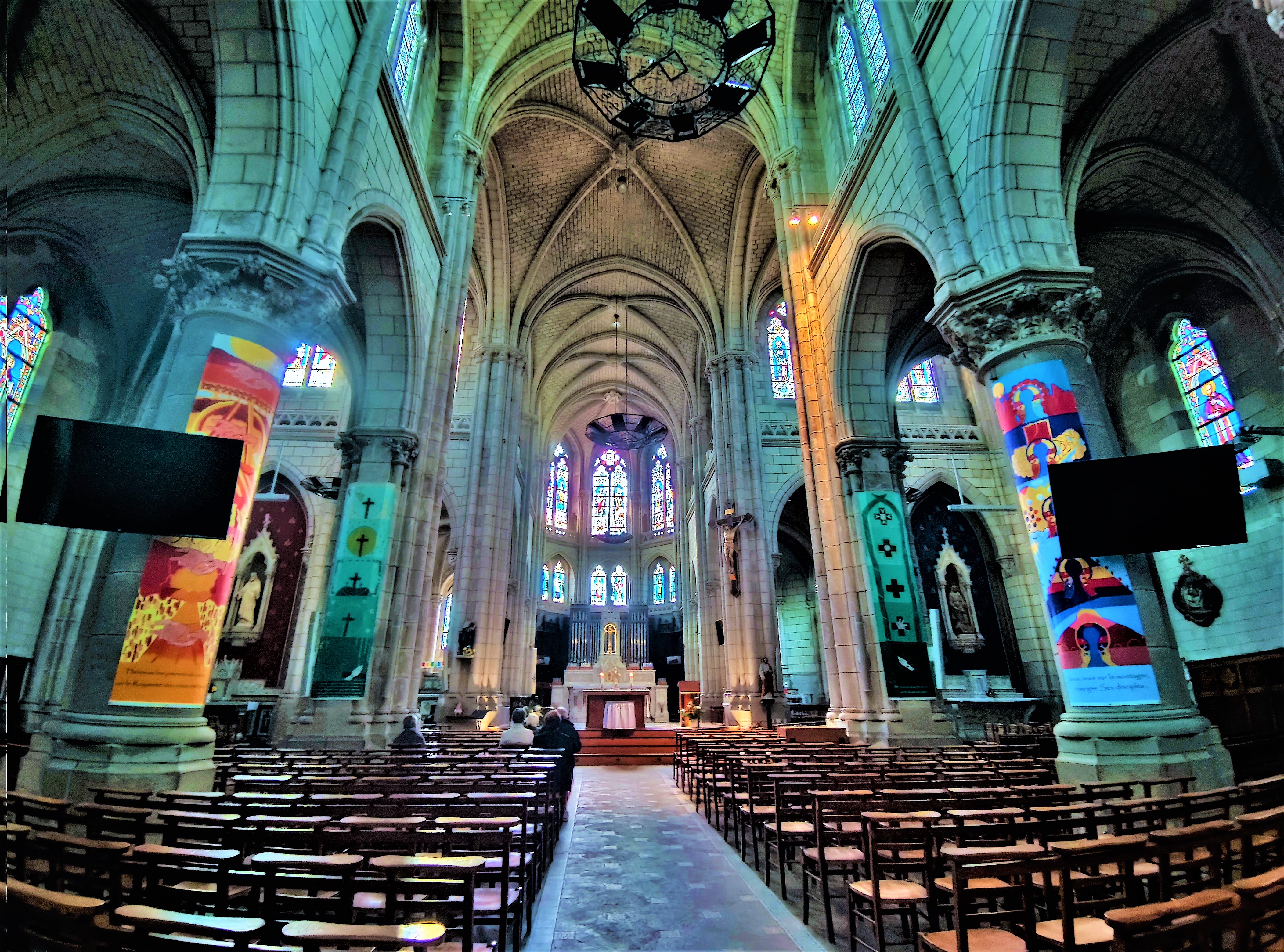 Eglise gothique bien aménagée,prêtre dynamique ,empathique,avec des efforts pour mieux communiquer et suivre la messe.