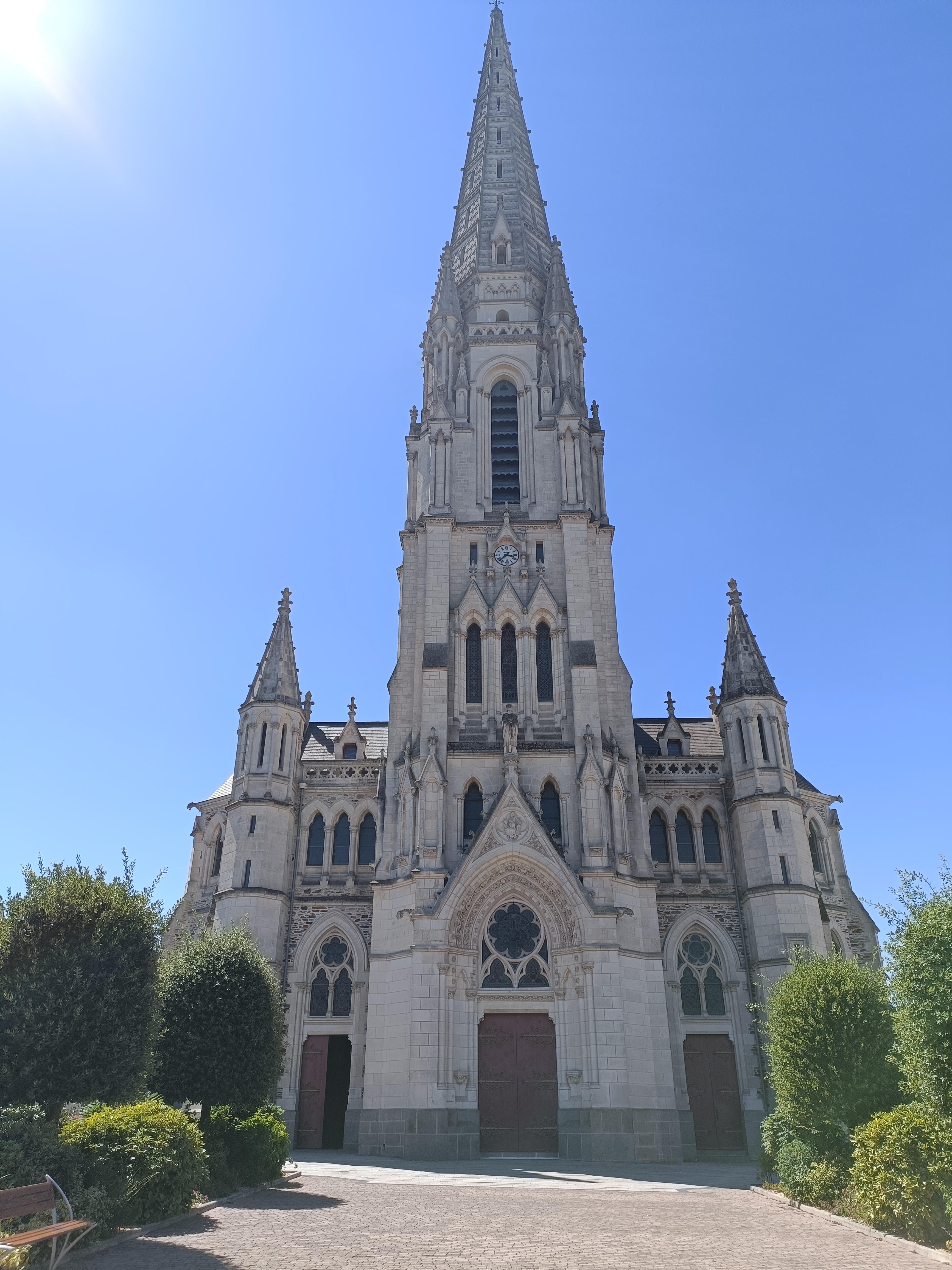 C'est un bon complément à la visite du site castral situé à 6mn à pied. Église construite à la fin du 19ème siècle, en pleine période néogothique, elle remplaça une église du 16ème siècle, qui avait elle-même remplacé une chapelle du 12ème siècle. La façade ressemble à celle de la Basilique Saint-Nicolas de Nantes qui a certainement inspiré l'architecte. La nef possède 3 vaisseaux, beaucoup de baies et de vitraux. Les élévations du vaisseau central, du transept et du chœur sont impressionnantes, c'est un lieu apaisant mais dépourvu de cette simplicité qui me conduit à l'intériorité.