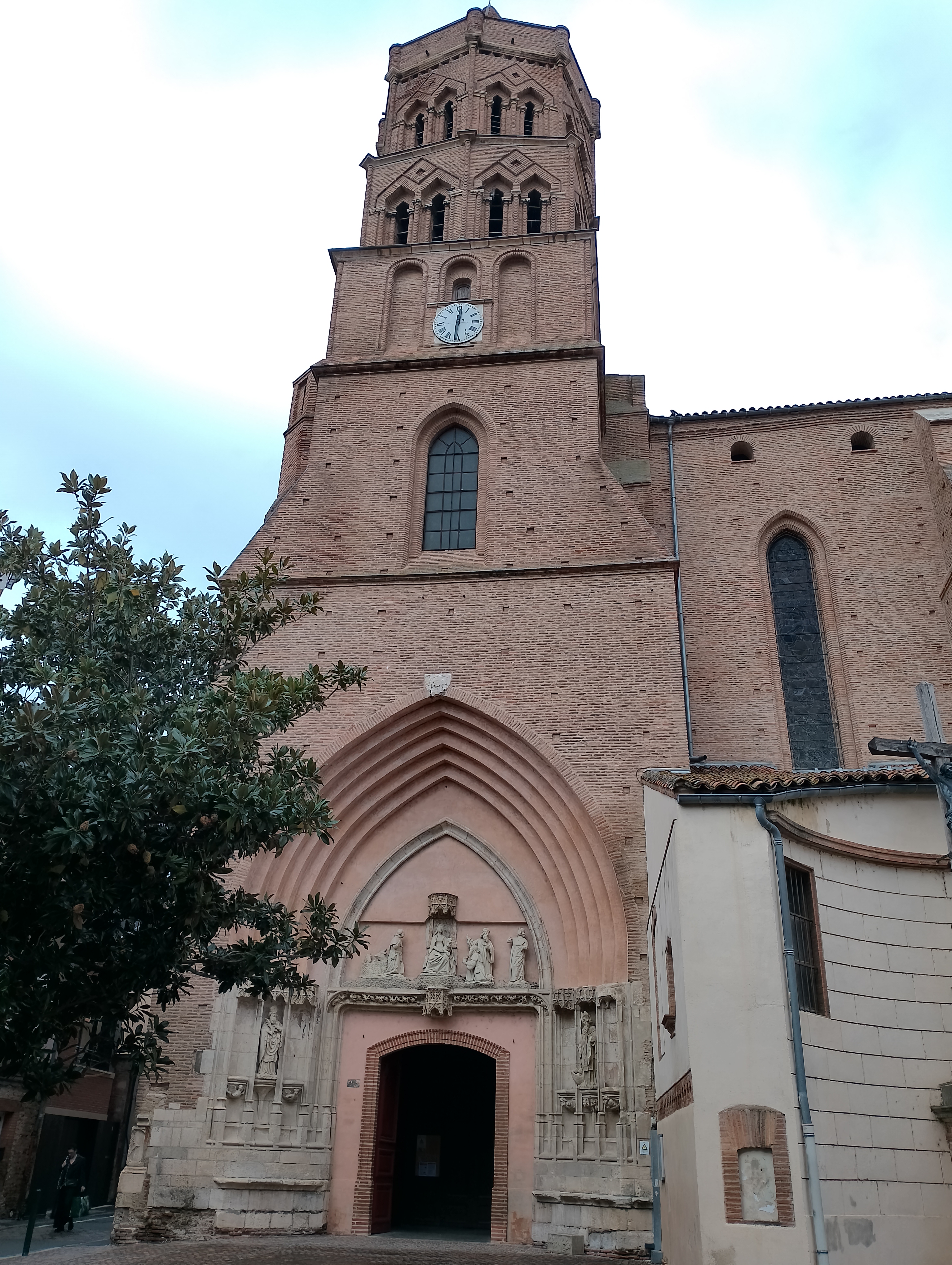 Une des plus belles entrées de style gothique méridional, avec un clocher rappelant le style toulousain de Saint-Sernin et des Jacobins.