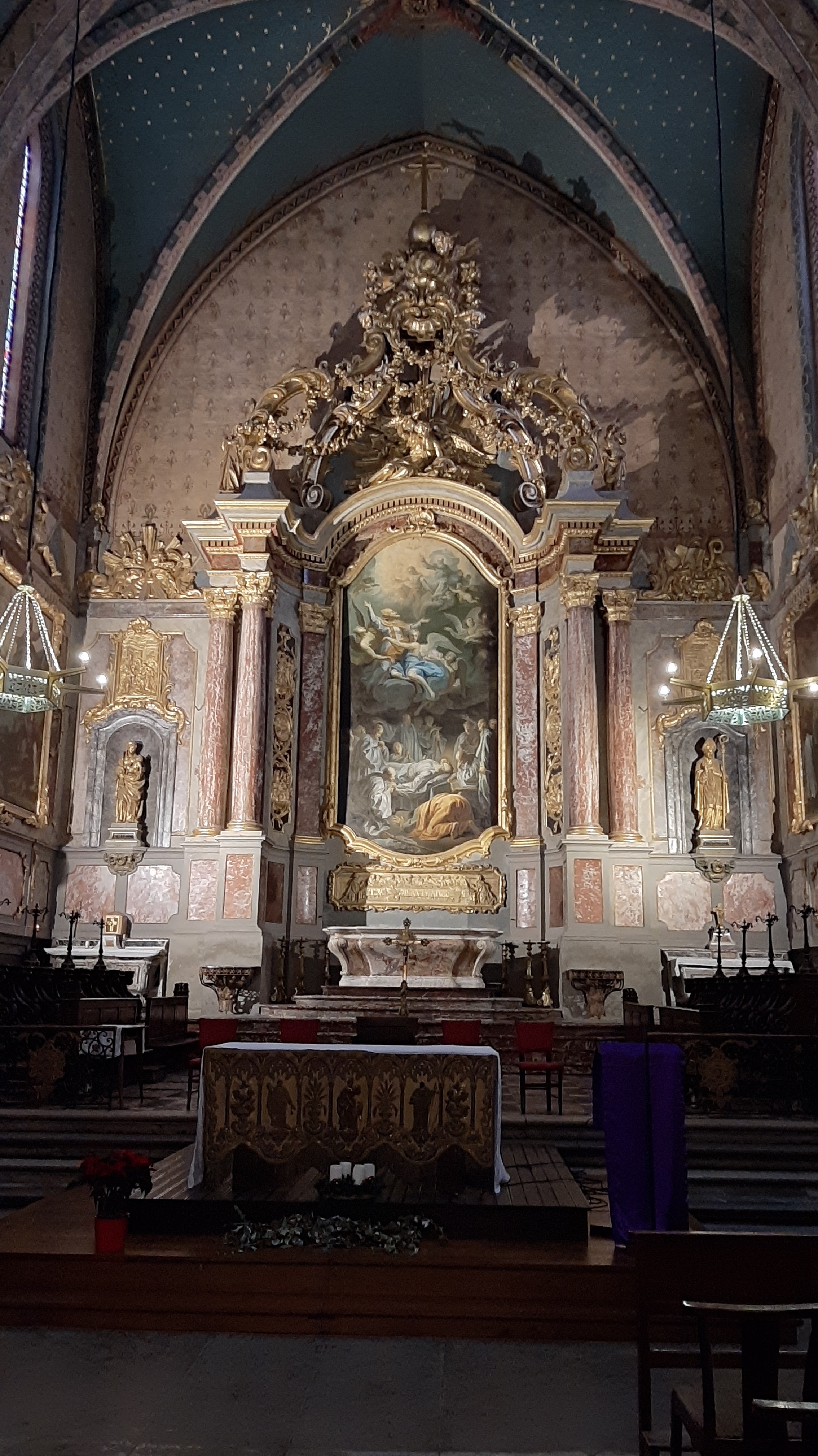 5 étoiles pour une église à voir absolument. Un bijou cette mini cathédrale entièrement peinte avec un coeur magnifique, des chapelles latérales vraiment exceptionnelles et originales sans parler des peintures murales de la nef. Même la chaire est de toute beauté. Je n'en ai pris plein les yeux. L'église Saint Nicolas mérite le détour et sa voisine la chapelle Saint Joseph de la Grave fait pâle figure à côté. Sur le côté gauche de la porte en entrant une plaque rappelle la hauteur d'eau de la grande crue de 1875. C'est impressionnant, il y avait + de 2 mètres d'eau devant le parvis de l'église au plus fort de la crue.