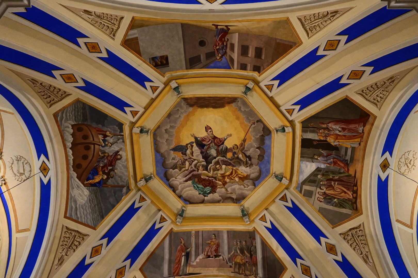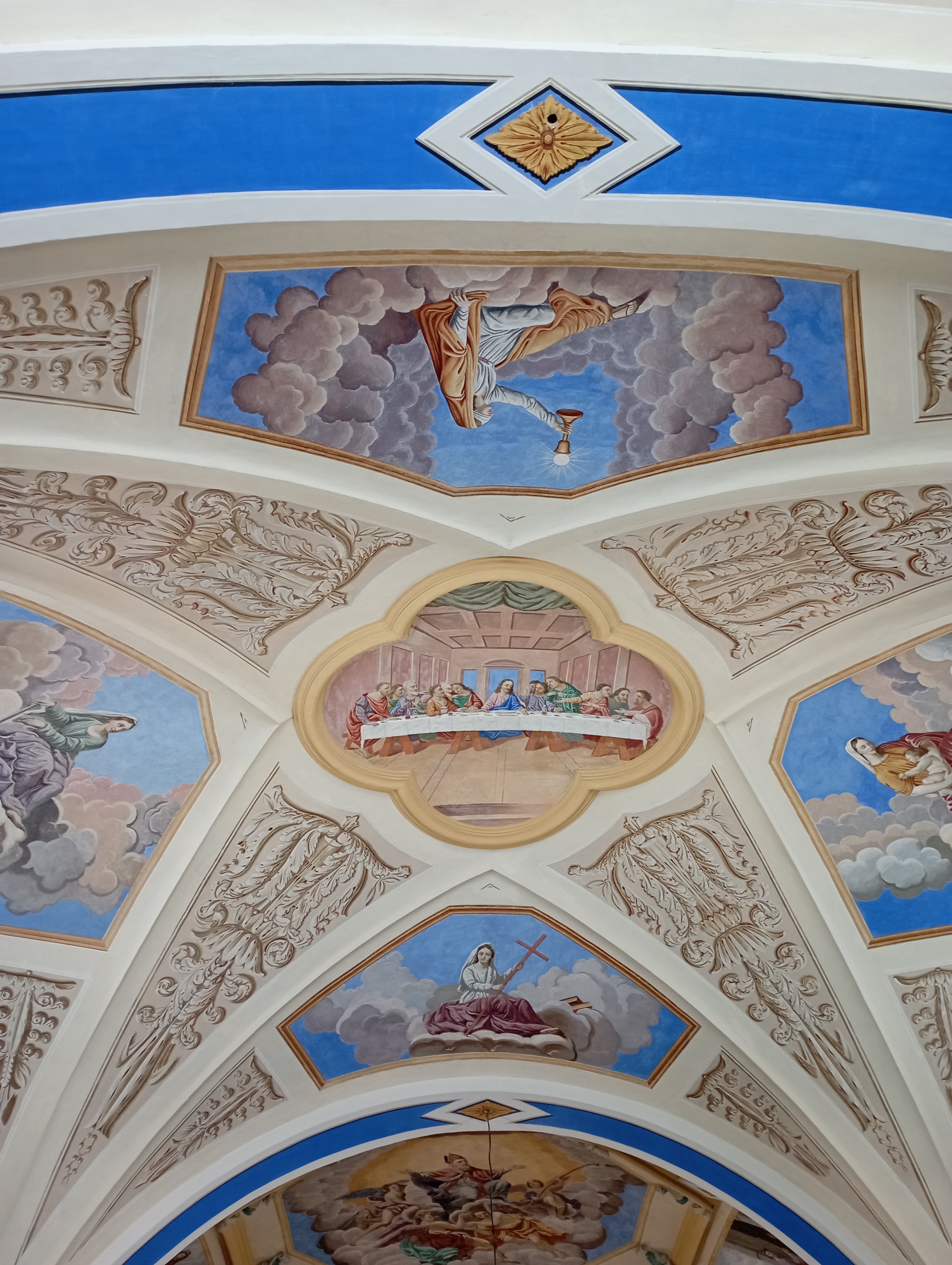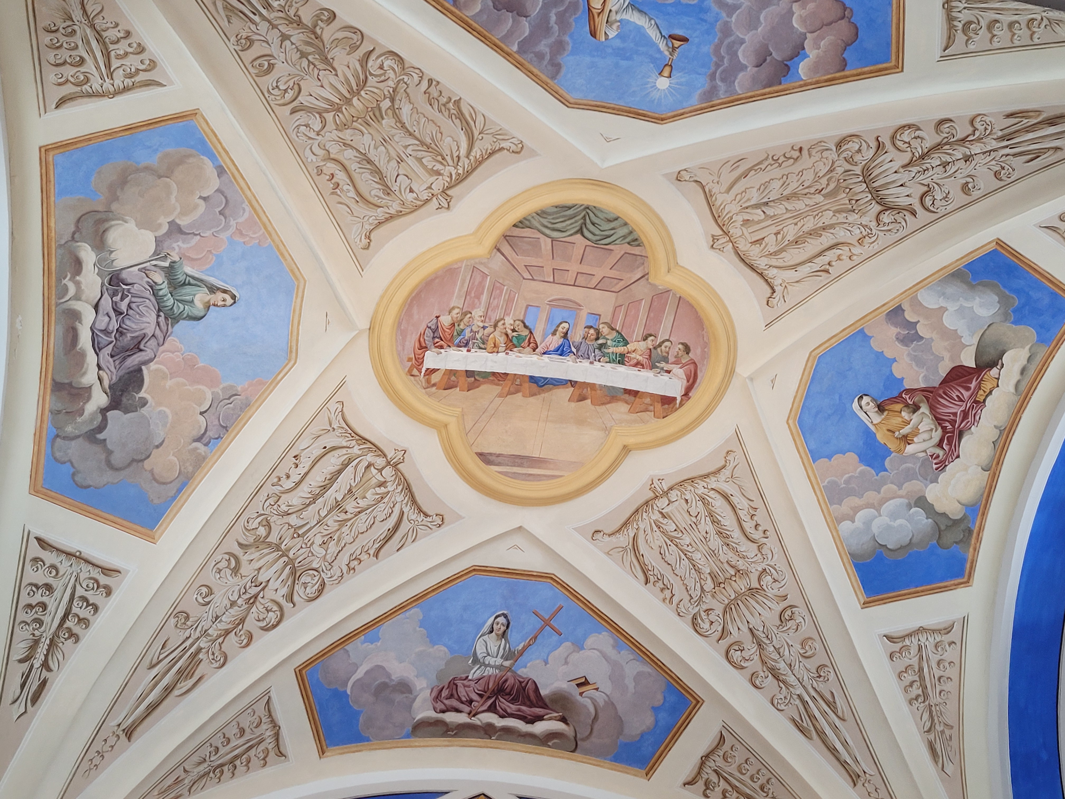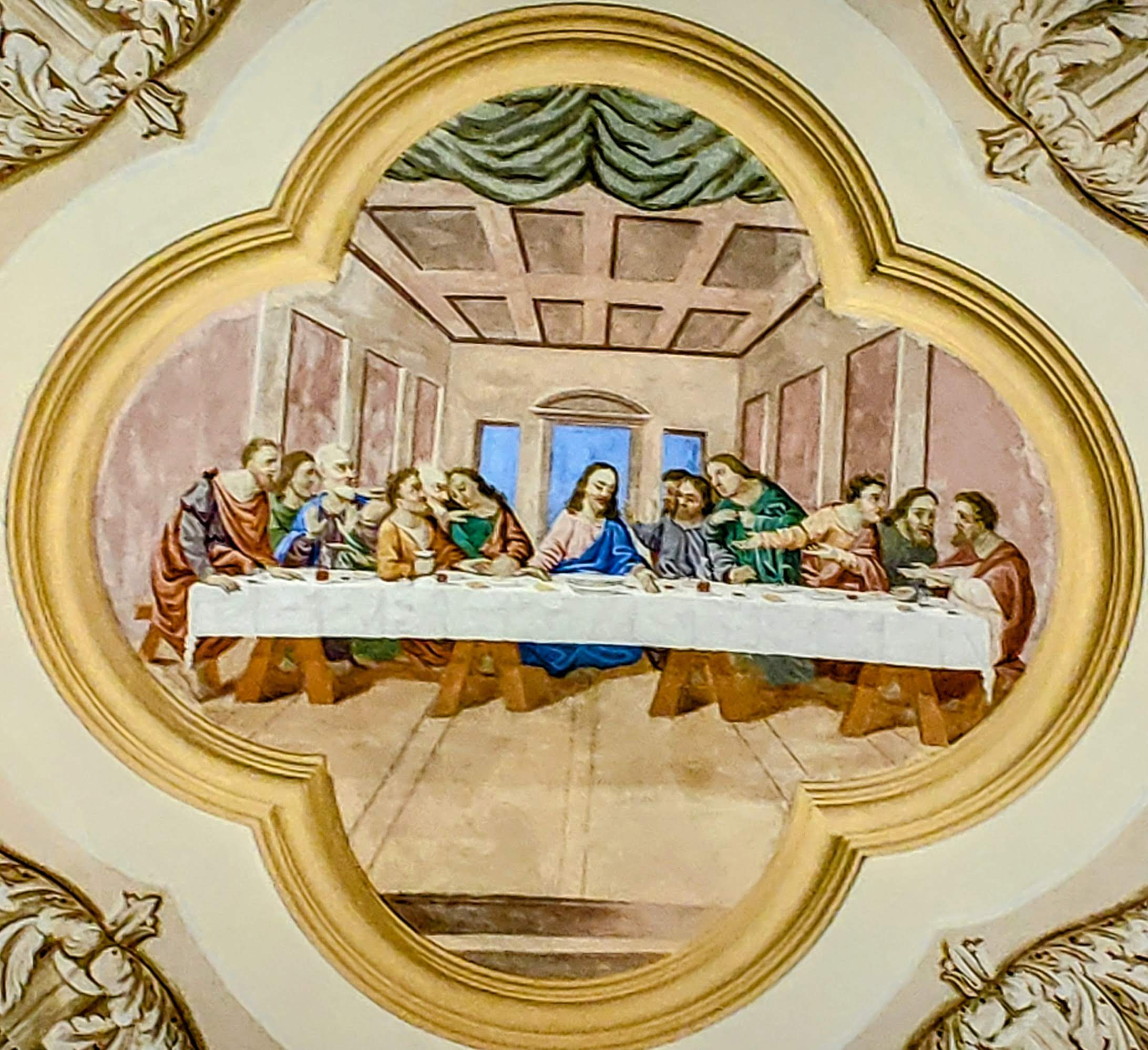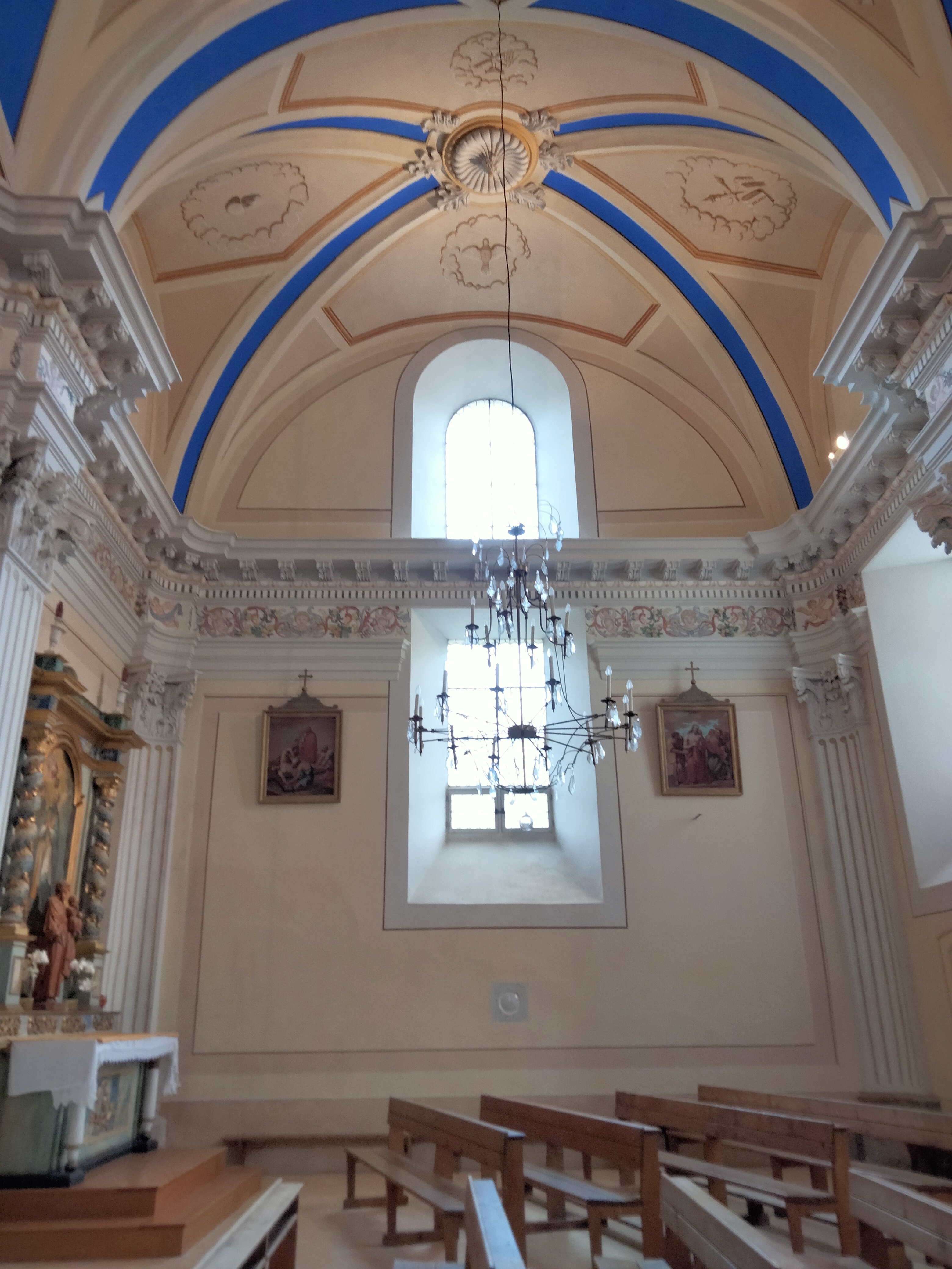 Magnifique lieu de prière, le plafond et les peintures sont une touchante catéchèse.