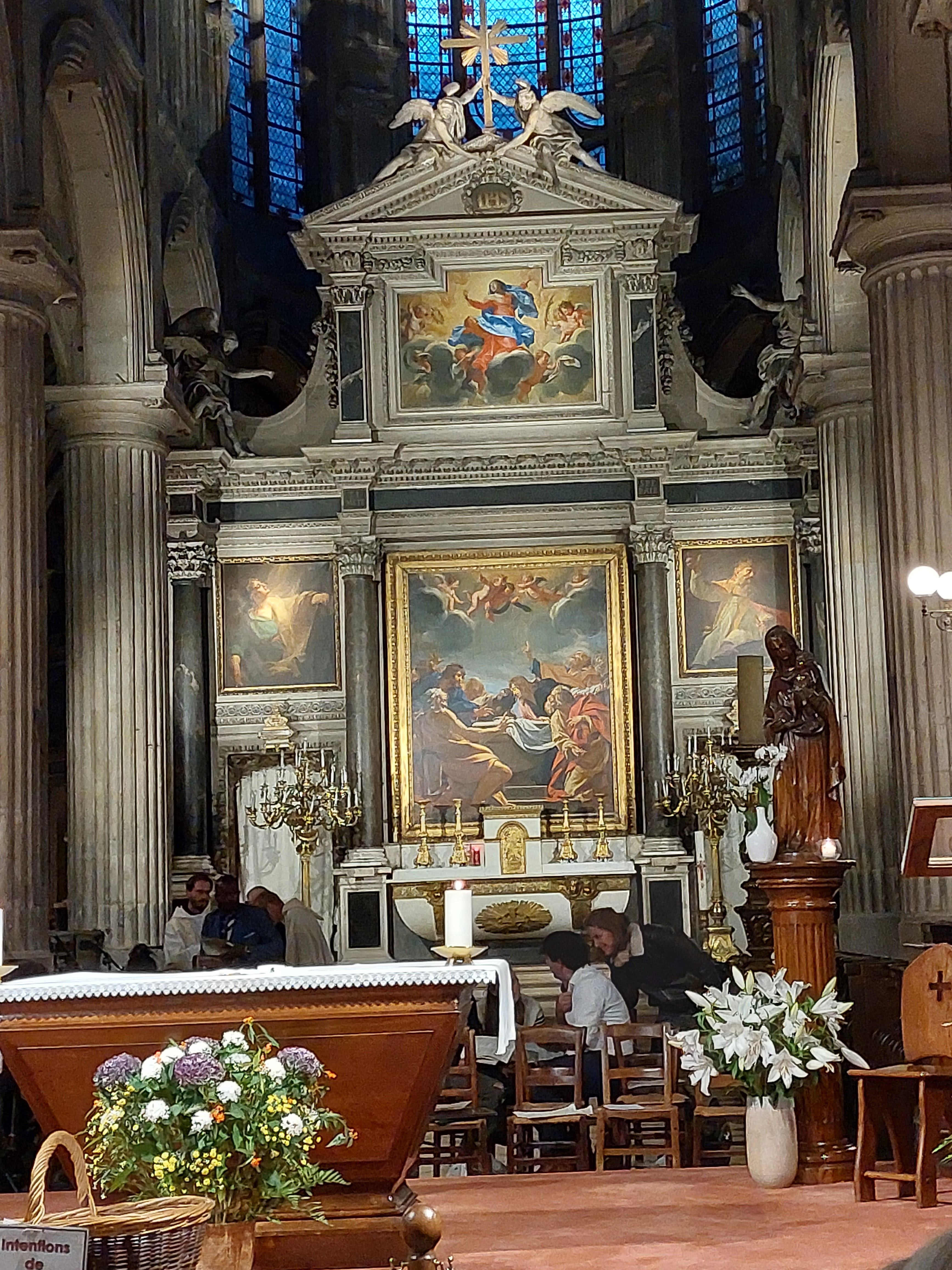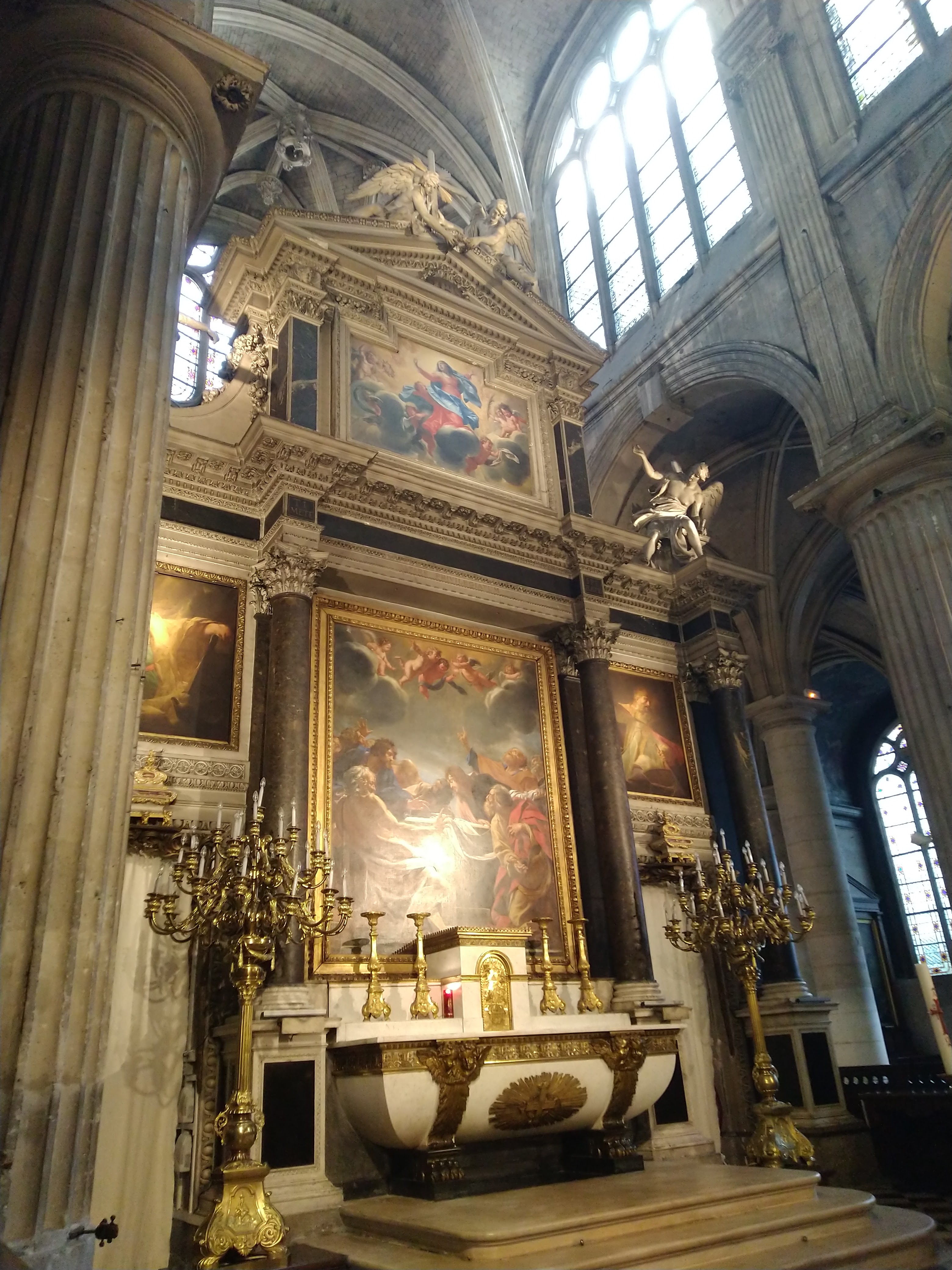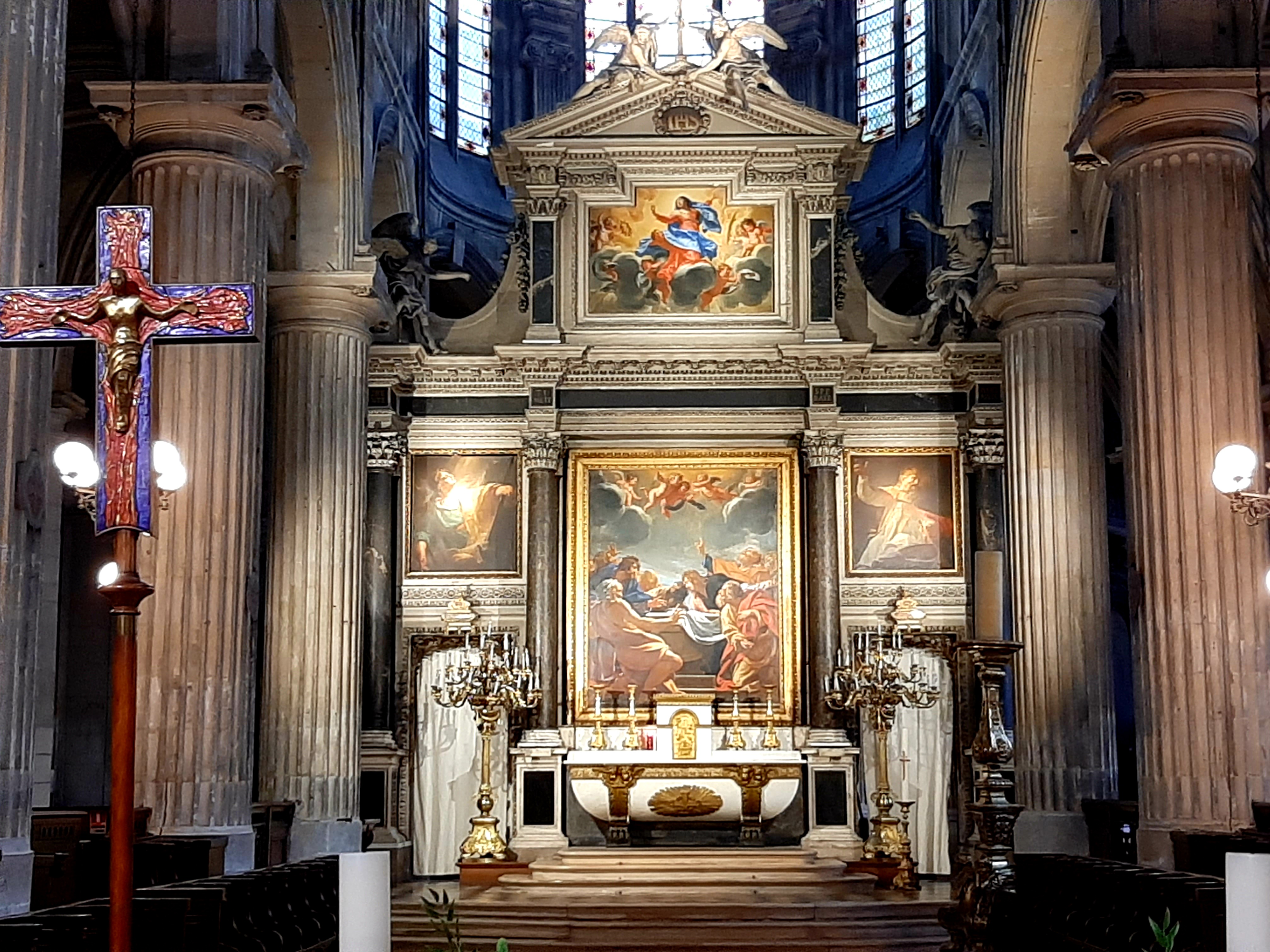 Il y a là, au-dessus du maître-autel, l'un des derniers retables que l'on peut admirer dans la capitale. Œuvre de Simon Vouet, L' Assomption de la Vierge, probablement peint vers 1630, après son séjour à Rome qui dura plus d'une décennie. Le peintre est l'un de ceux qui apportèrent le style baroque en France.