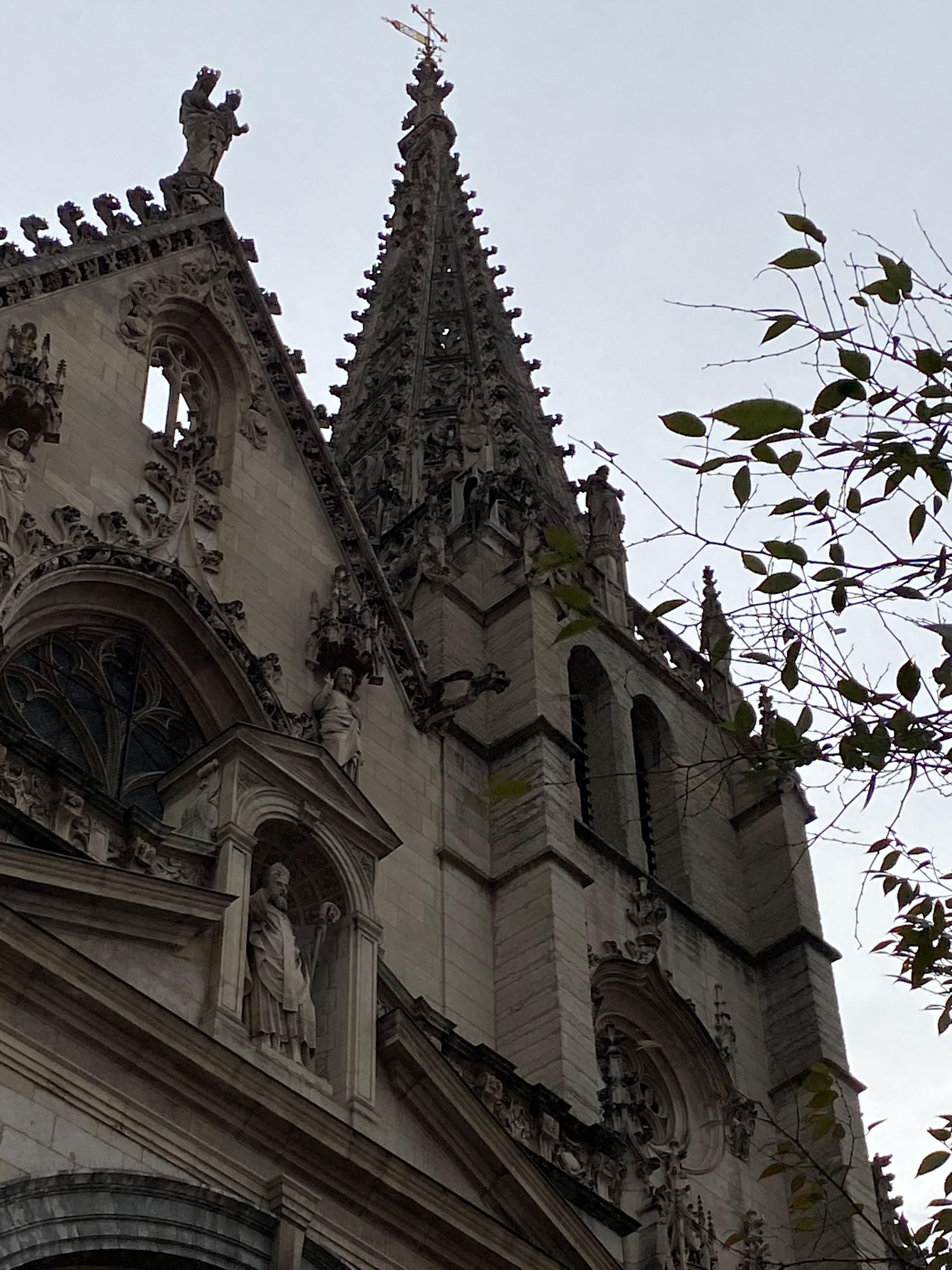 Une magnifique vue depuis la ruelle menant sur l'église Saint-Nizier de Lyon. J'ai été émerveillé par la beauté de ce bâtiment.