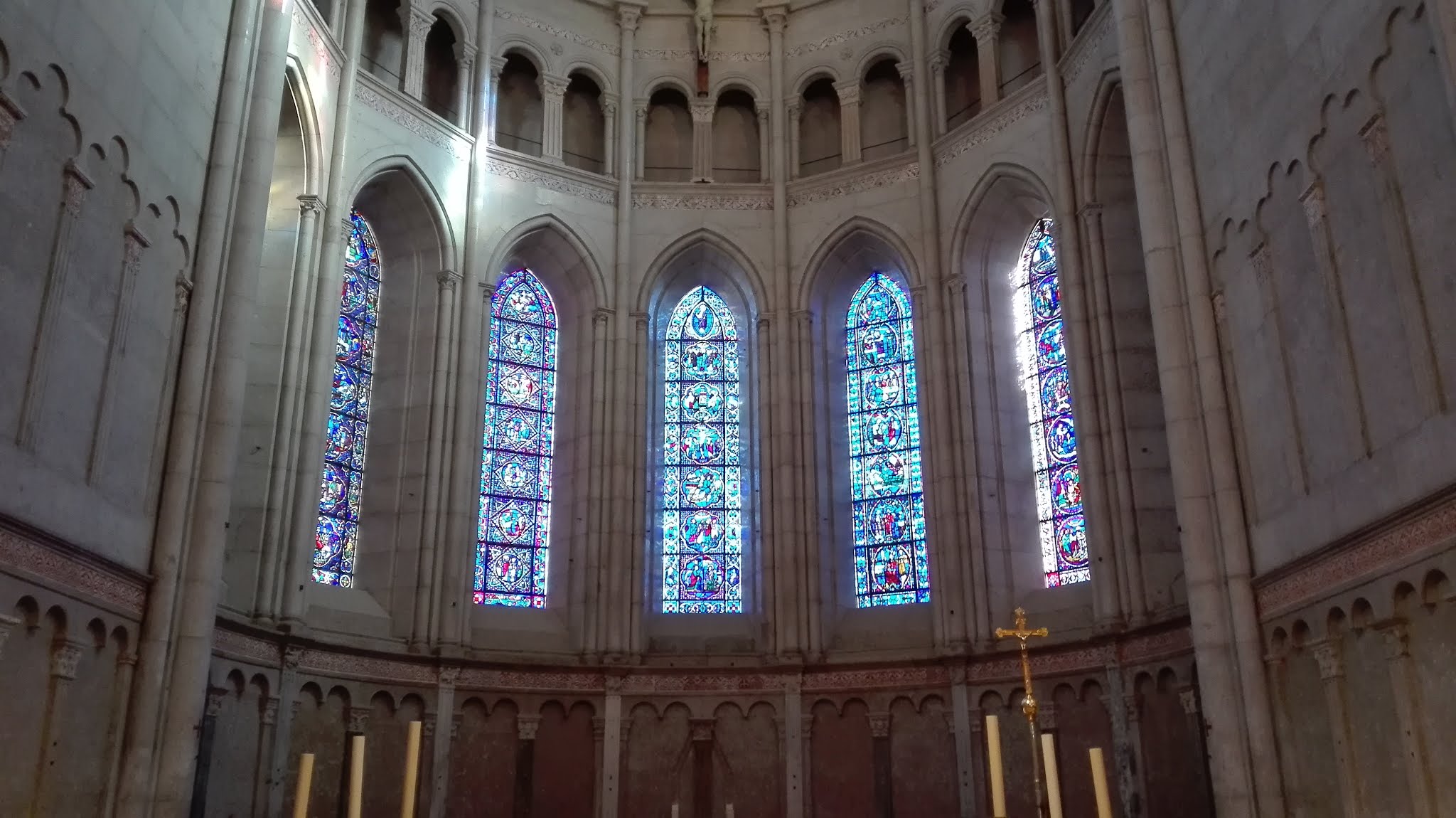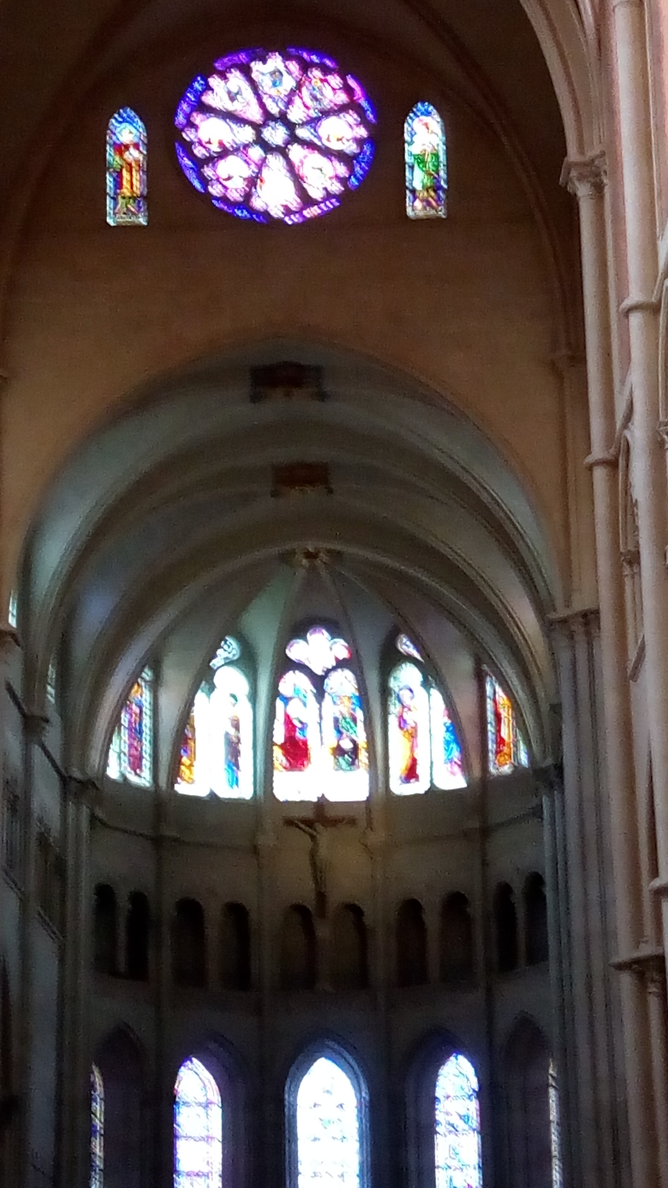 Beaux vitraux et un grand orgue. Les proportions sont harmonieuses et pas écrasantes.