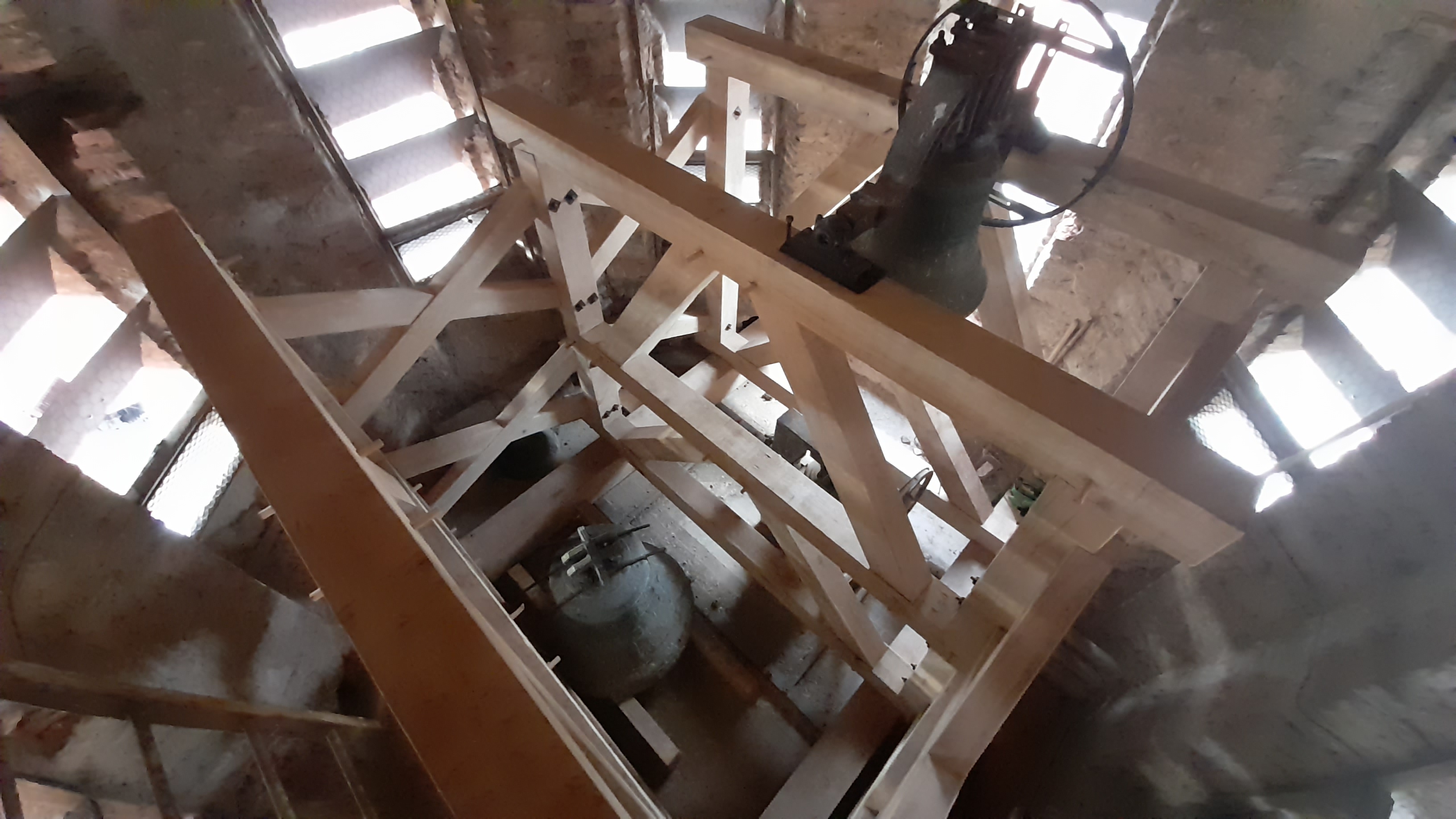 Le clocher fait peau neuve, nous venons d'installer un magnifique beffroi en chēne...une belle expérience 😉