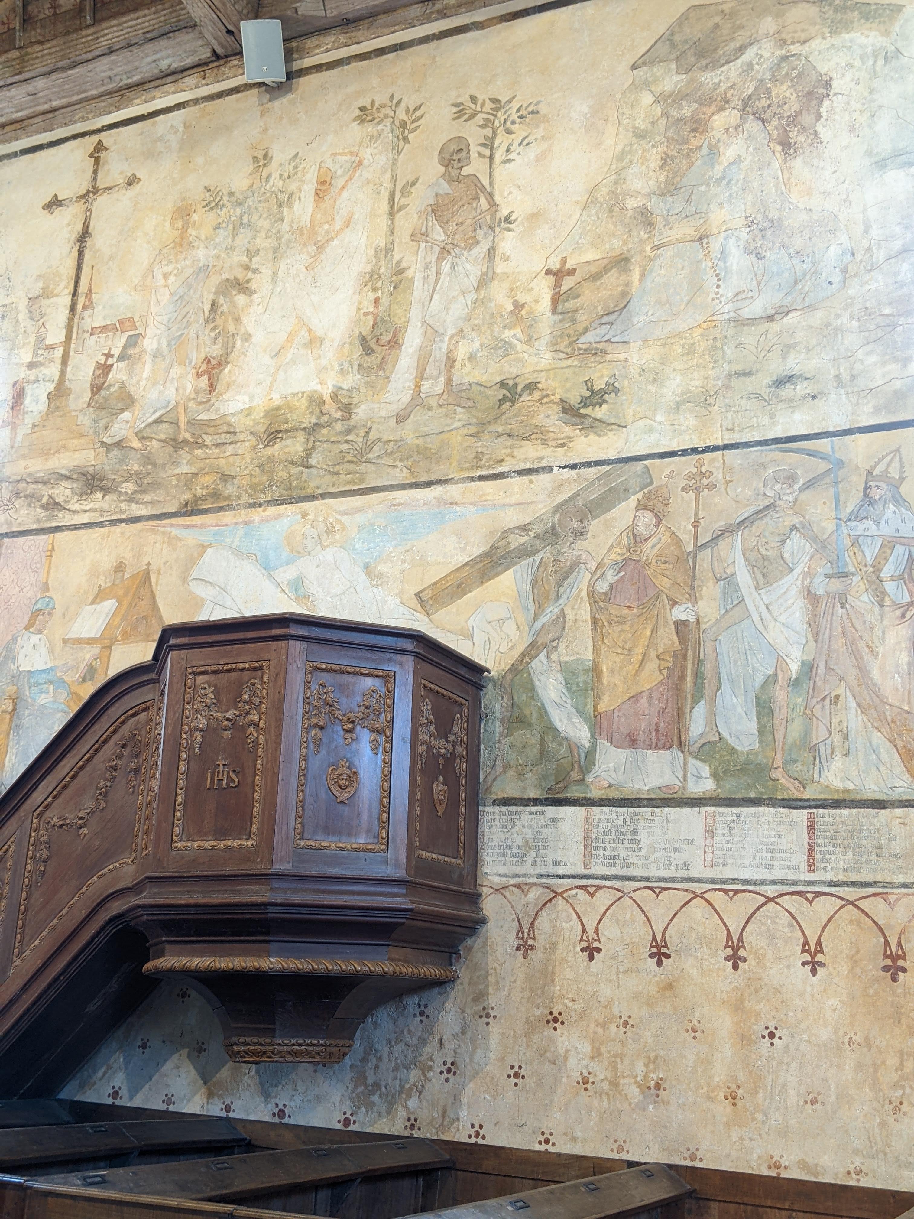 Magnifiques fresques de danse macabre peu fréquentes dans cet état. L'église était ouverte et le patrimoine présenté par une bénévole très investie.
