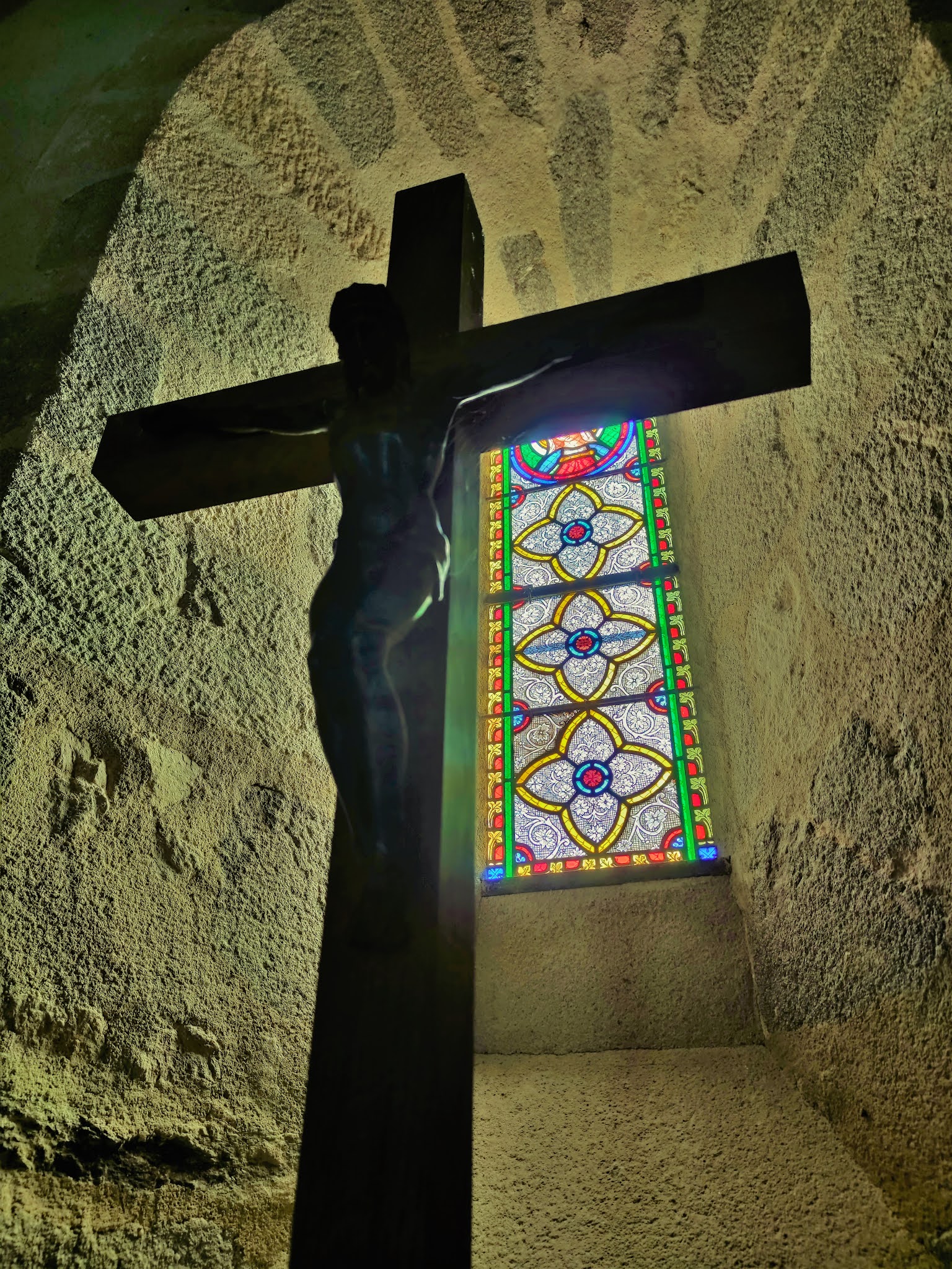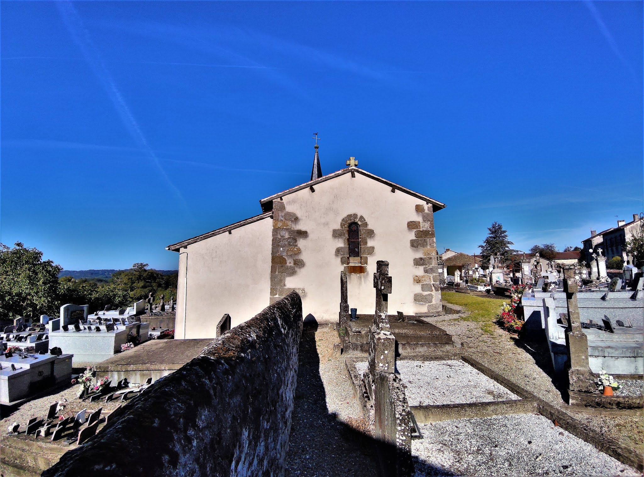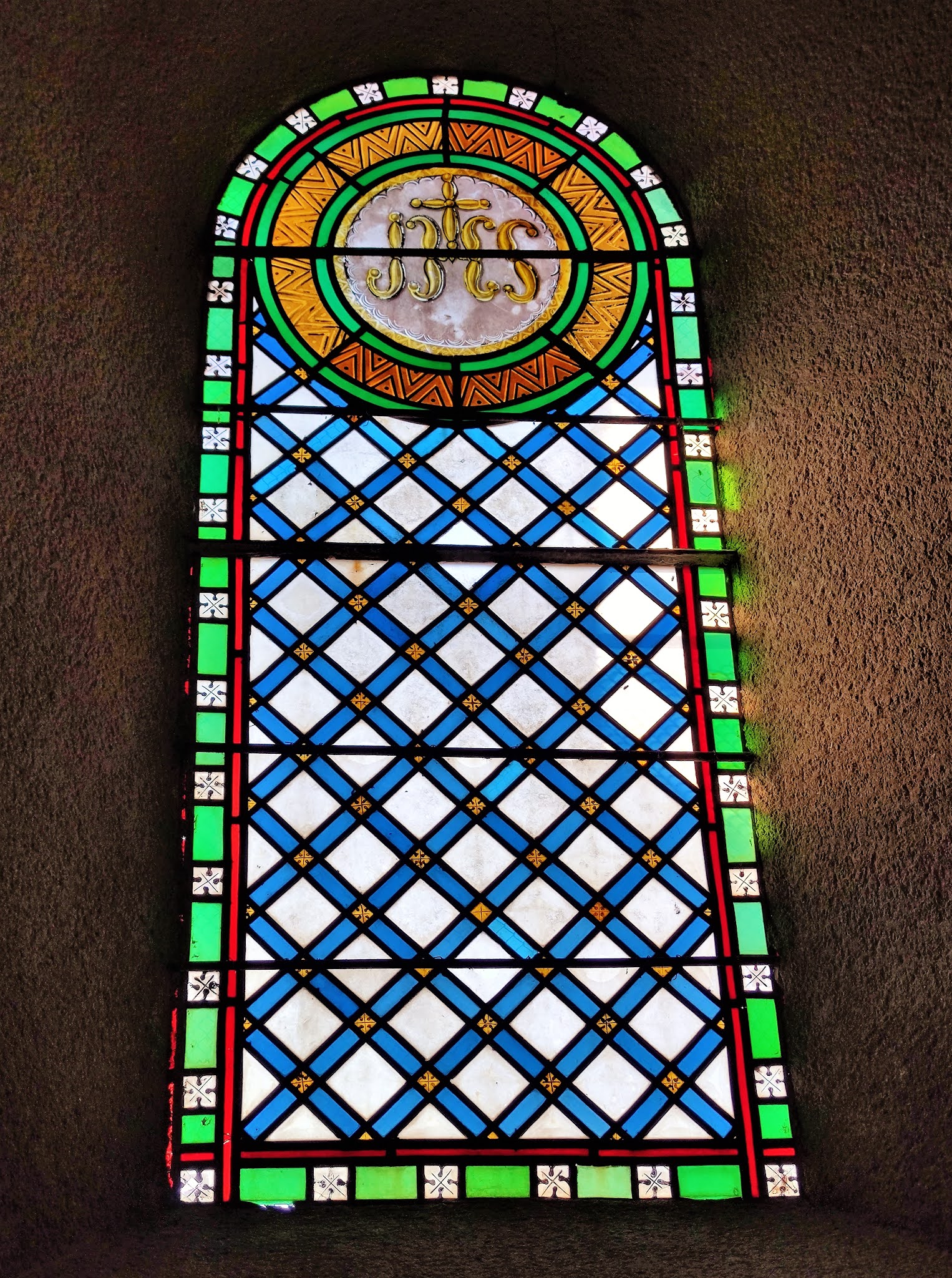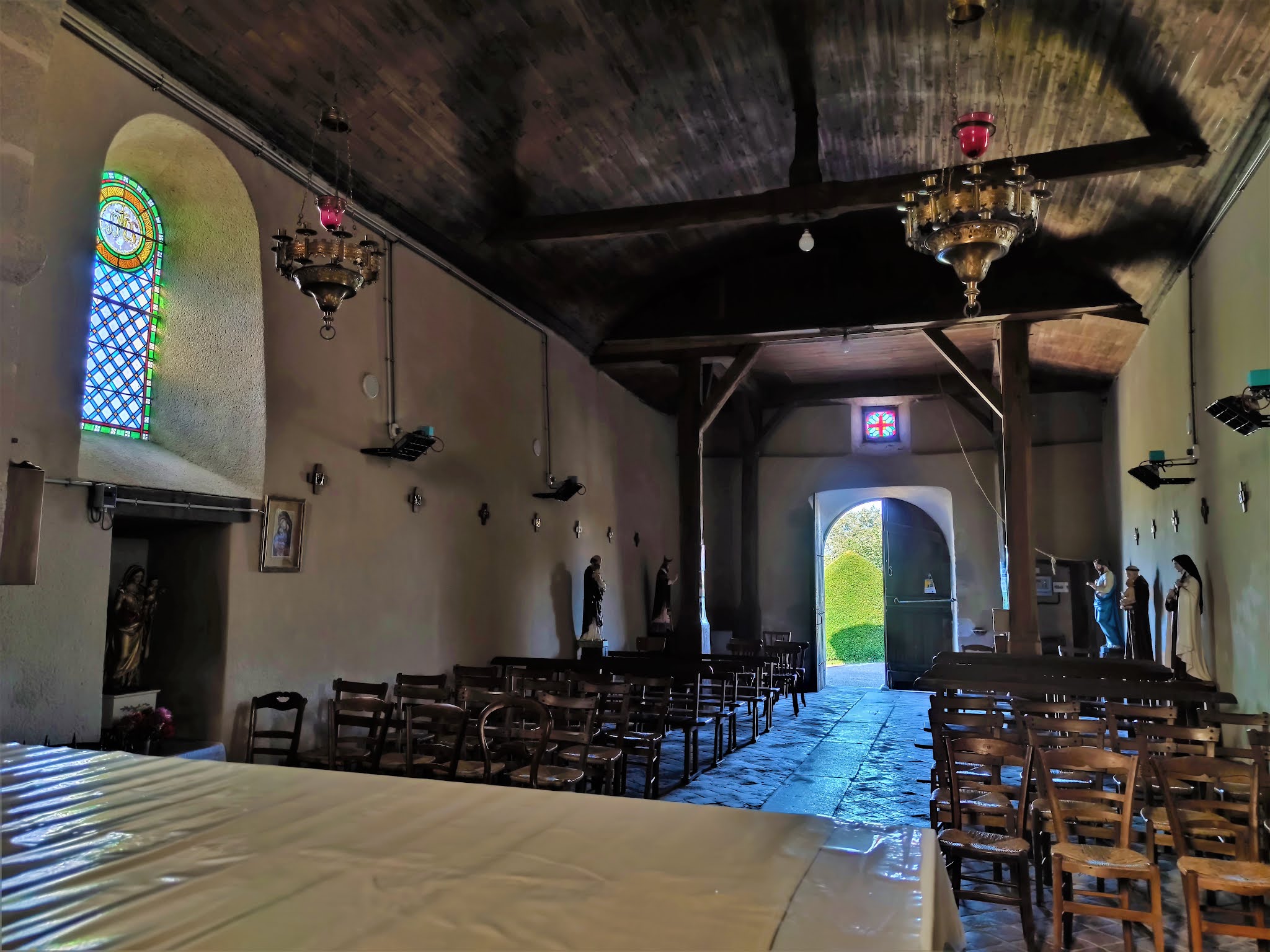 Une église toute simple, bien tenue, ce fut pour moi l'occasion d'une pause bien agréable. Placée au milieu du cimetière, cette position indique que cette église a des origines très anciennes. L'édifice actuel semble dater du 16ème siècle, c'est en tout cas à cette période que la construction de son clocher charpenté est confirmée. Venu voir le pont gothique en chantier de restauration, je n'ai pas pu approcher. Je me suis alors dirigé vers cette église. Ouverte et accueillante, elle abrite quelques jolis objets, statuaire, tabernacle, relique de la vraie croix. Rien de somptueux à voir mais le charme indéniable des petites églises de bourg en émane. La nef plafonnée en lattis se prolonge par le chœur plus étroit voûté en berceau. Les vitraux des trois ouvertures en plein cintre et de l'oculus carré diffusent une belle lumière. Une église toute simple, bien tenue, ce fut pour moi l'occasion d'une pause bien agréable.