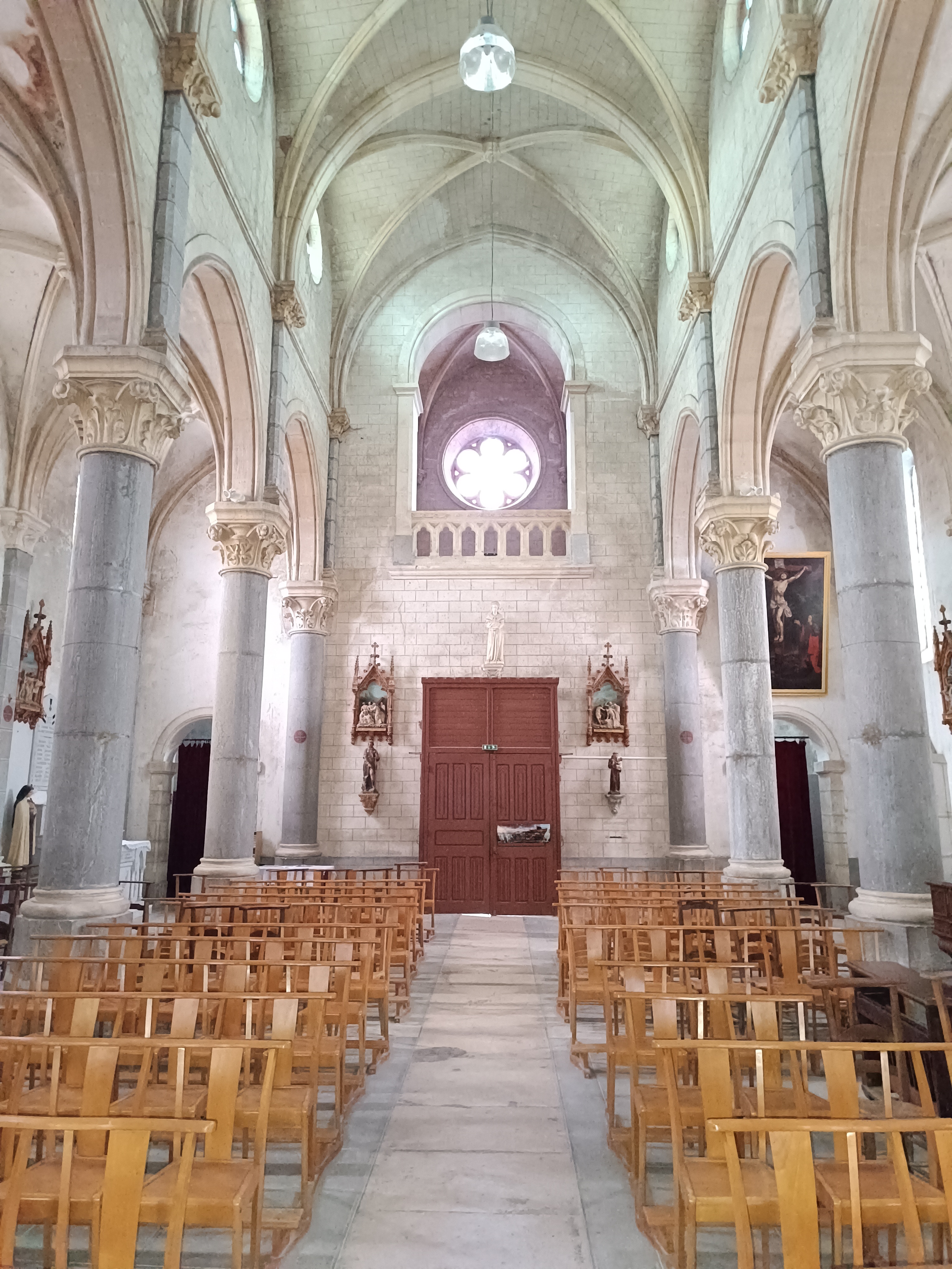 Joli église qui cache en son cœur ou chœur, de fines colonnes qui lui donnent de la légèreté.
