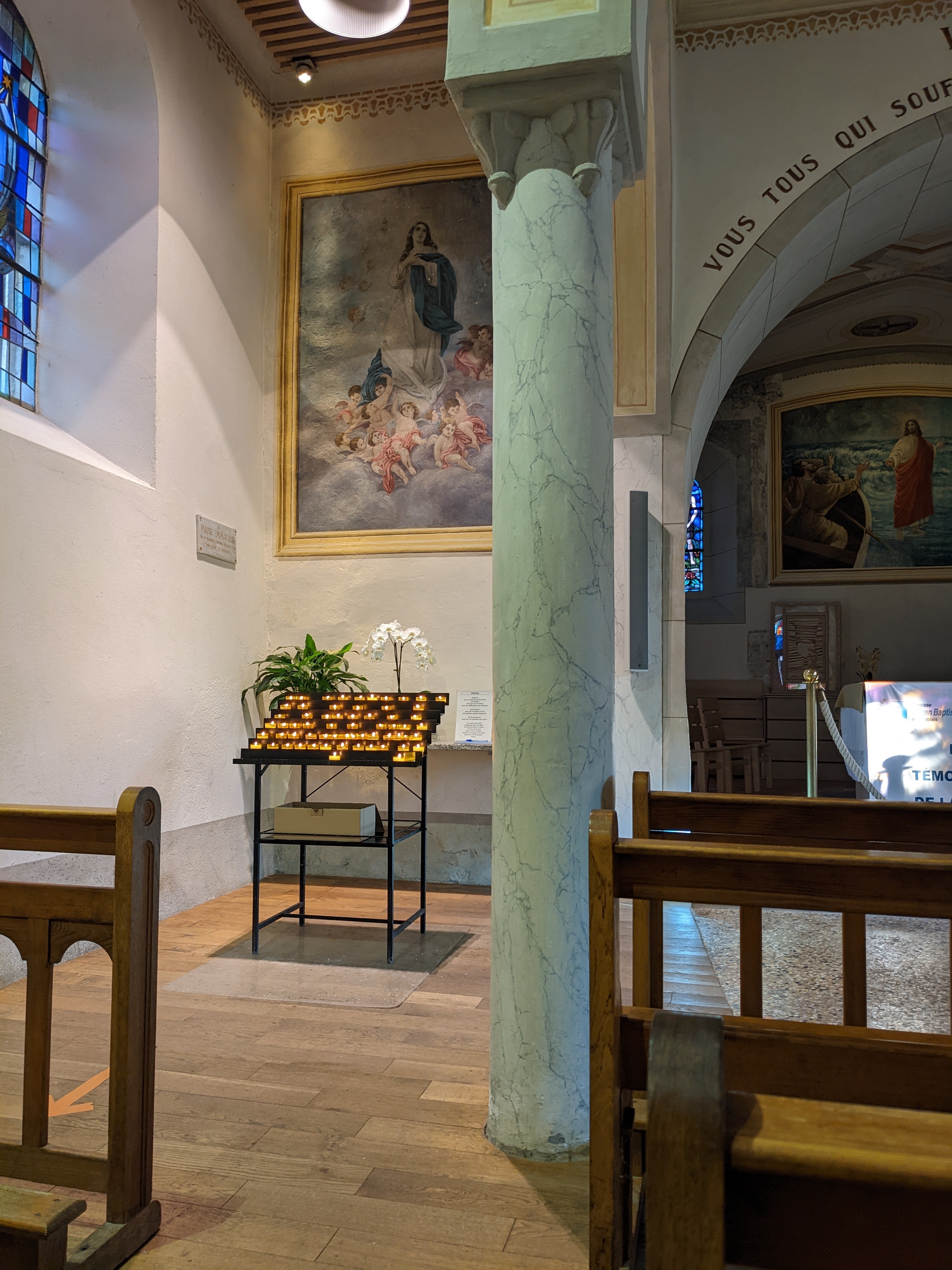 Une petite église dans le beau village d'Yvoire. L'église n'était pas bondée lorsque nous y sommes allés et offre une belle vue sur le lac depuis l'entrée. Un endroit très paisible et c'était bien de passer du temps à l'intérieur. Les vitraux sont magnifiquement réalisés et l'endroit est bien entretenu.