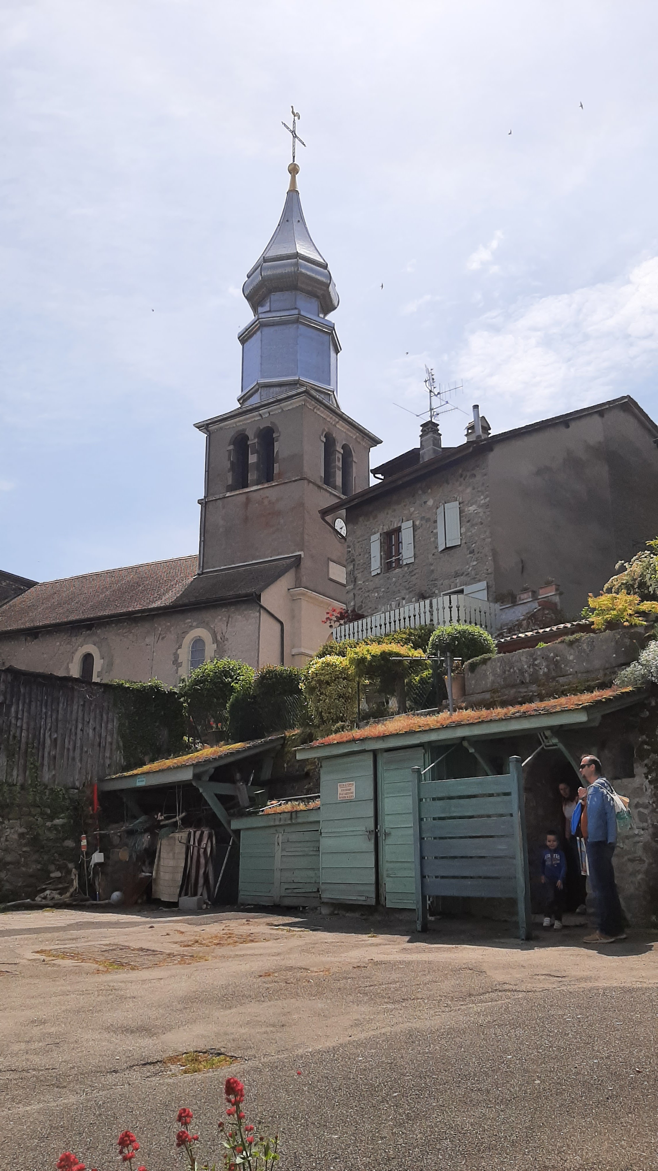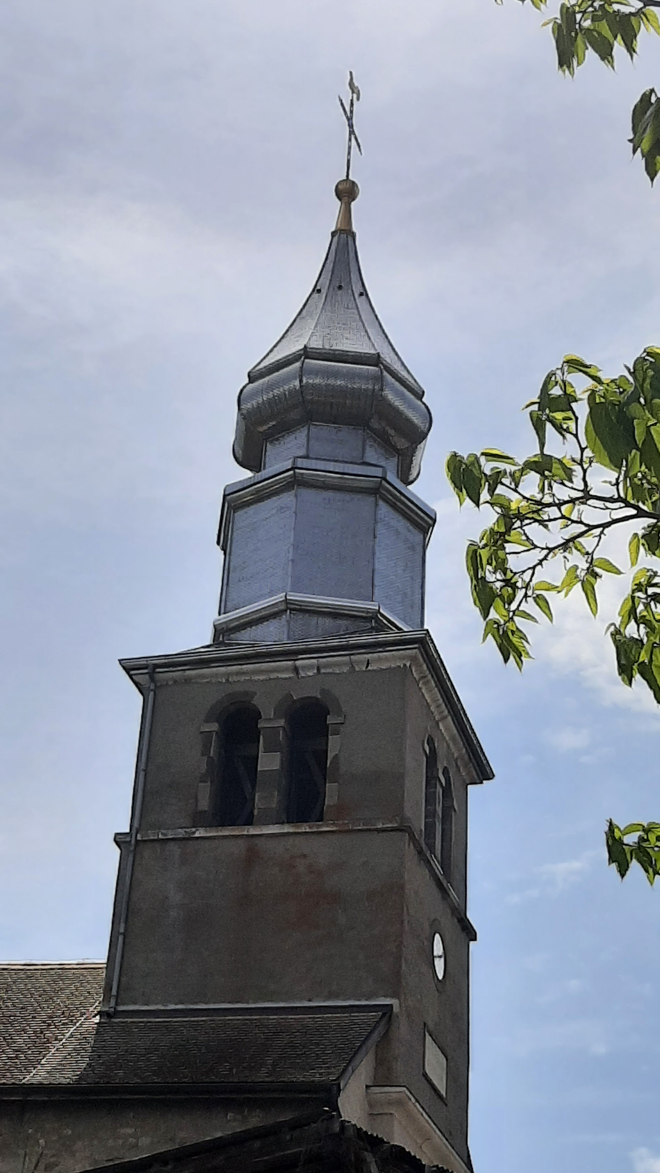 Très jolies église avec son toit argenté particulier