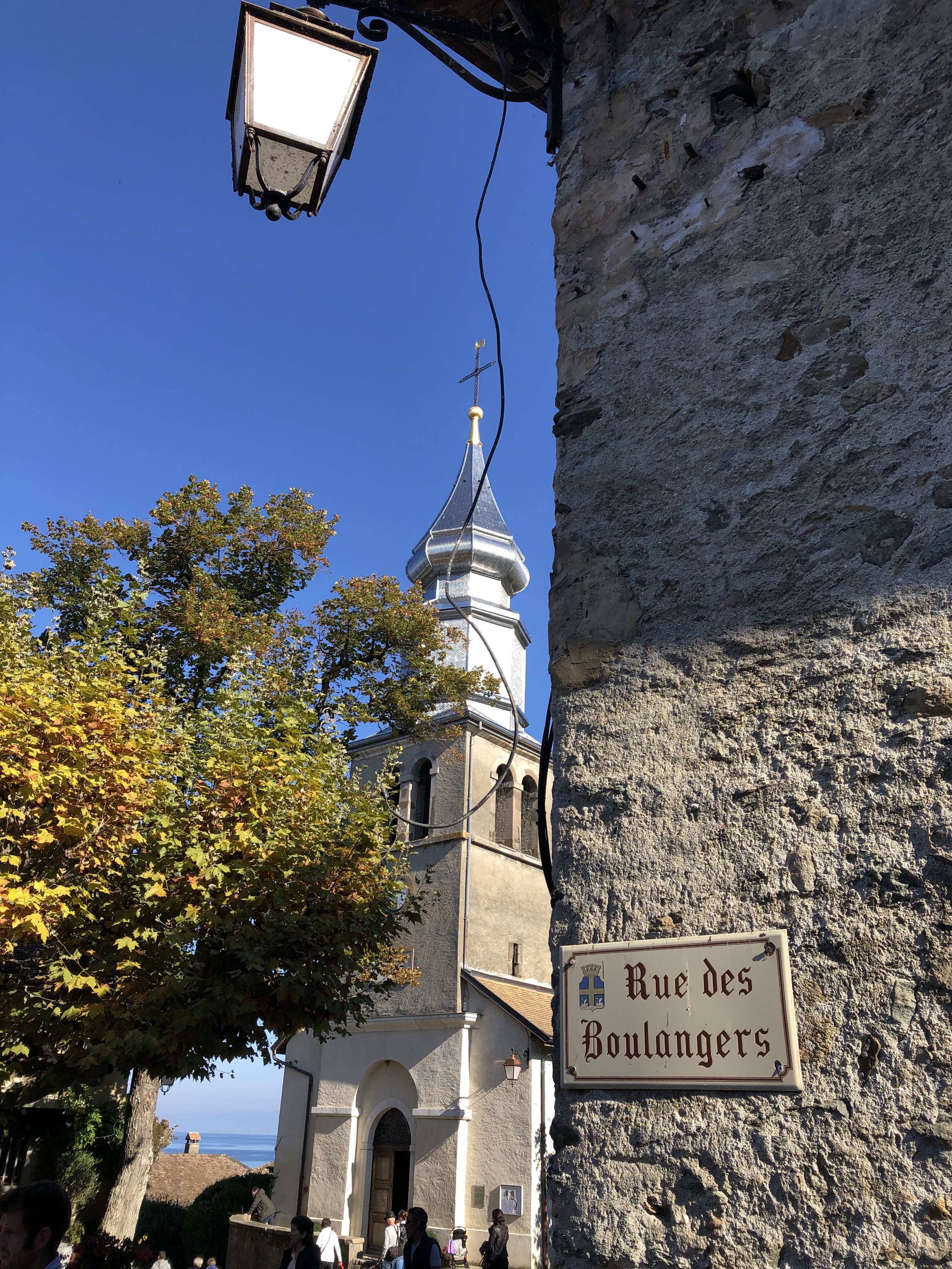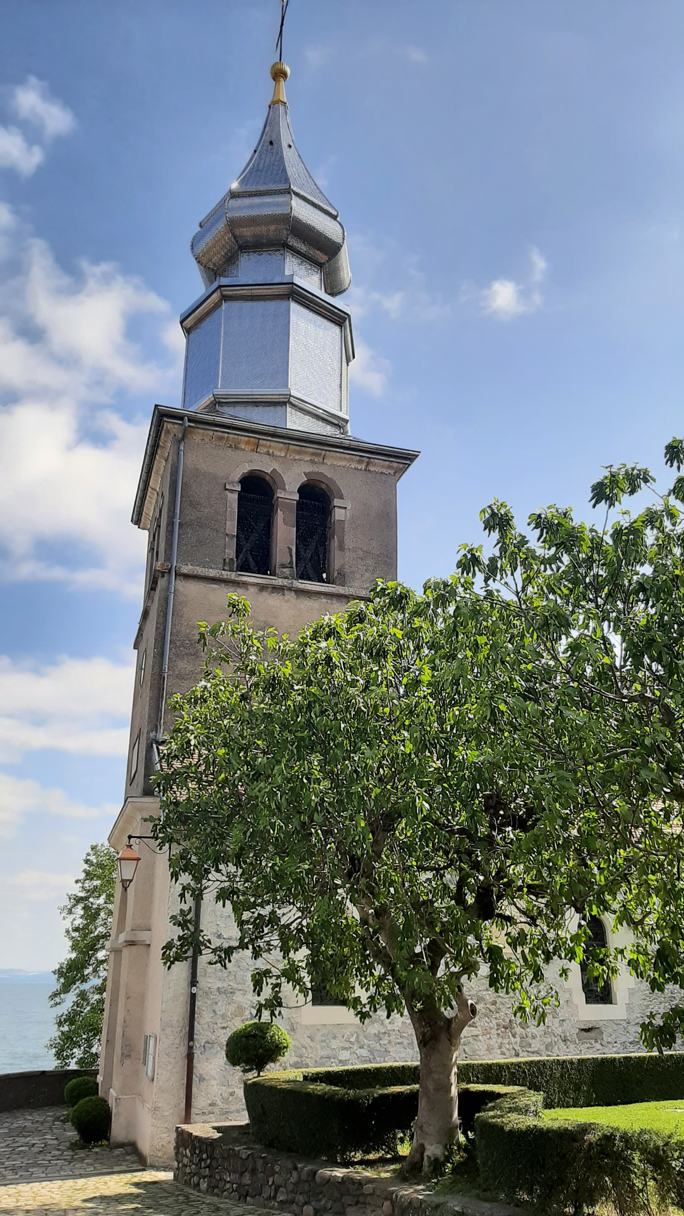 Belle église dans un magnifique village médiéval. Il est magnifiquement situé avec une vue imprenable sur le lac Léman. À l'intérieur, c'est calme et paisible.