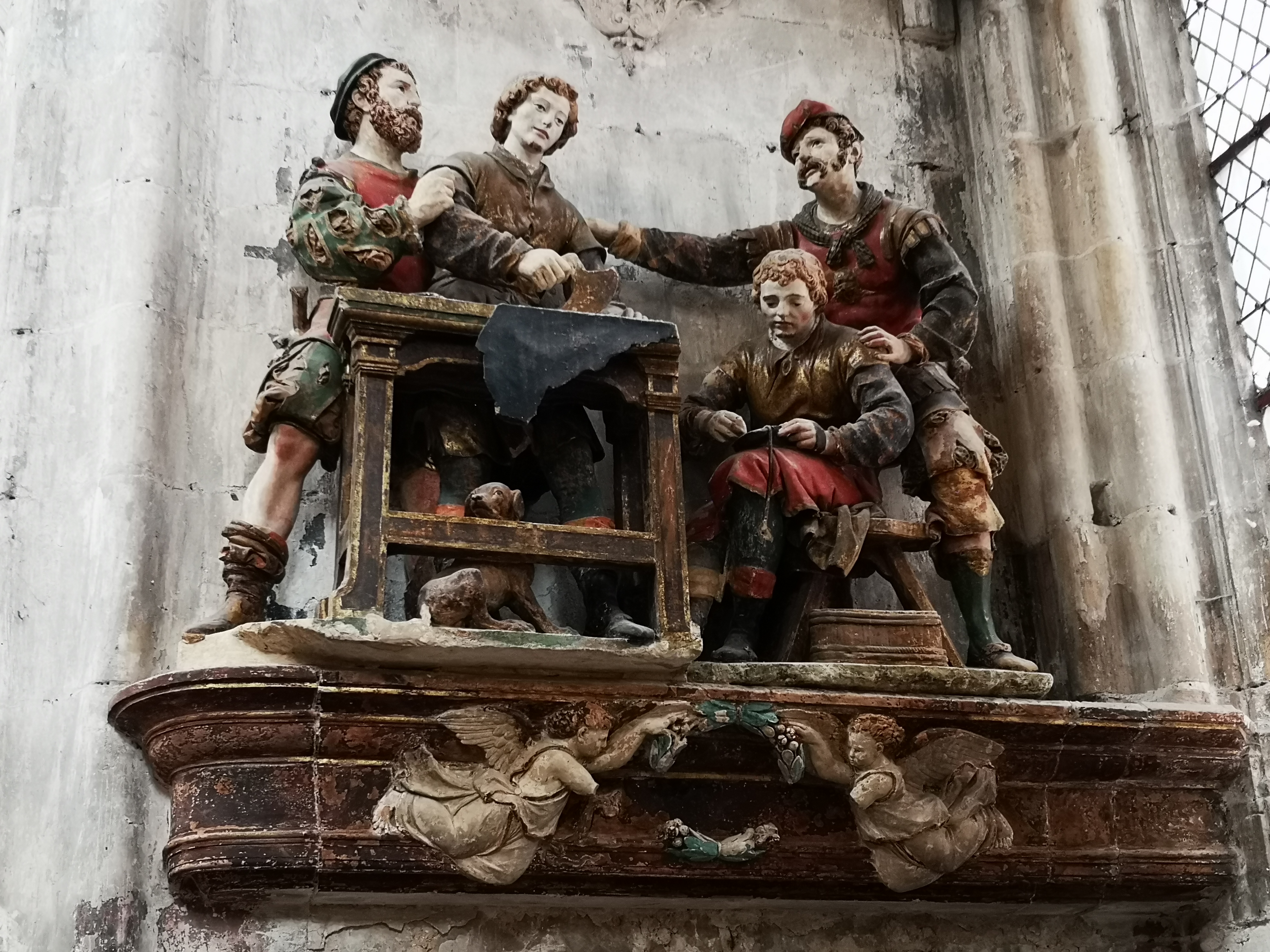 Eglise de style renaissance, à l'architecture rare. L'intérieur est un véritable musée de la sculpture du XVI siècle, avec quelques pièces étonnantes comme l'arrestation de Saint Crispin, très vivante et encore plychrome.