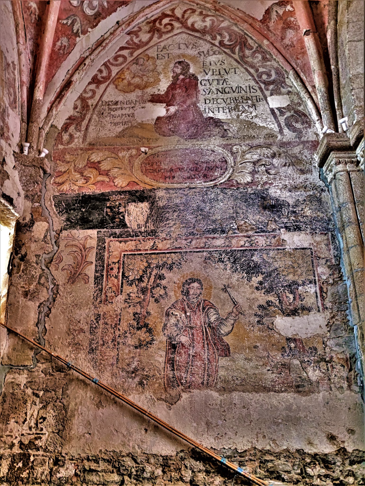 Je conseille ardemment cette découverte patrimoniale dans cette commune tournée vers le tourisme. L'église Saint Pardoux, construite au 12ème siècle, reçue des voûtes d'ogives et un portail au Nord au 13ème siècle. Au 17ème et 18ème siècles, elle fut agrémentée de peintures sur l'essentiel des surfaces des murs et des voûtes, comme on le faisait au moyen-âge. Au 19ème siècle le plan rectangulaire de l'église devint plan en croix latine par l'adjonction de deux chapelles. On ouvrit pour cela les murs Nord et Sud de la 4ème travée de la nef, faisant disparaitre des décors peints. Les 2 chapelles reçurent aucun décors. Le 2 novembre 1977, les Monuments Historiques inscrivirent l'église et les peintures dans leur totalité. Ces peintures, décors fragiles et témoins historiques, verront peut-être, par cette protection, leurs conservation et restauration facilitées. Un excellent fascicule de visite, riche de détails et de commentaires pertinents, à la disposition des visiteurs, permet de se situer dans cette abondance de représentations peintes. Cela ajoute un vrai confort à cette visite, l'éclairage de l'édifice est restreint. Cette découverte m'a enthousiasmé, l'extérieur de l'église est également intéressant, le clocher charpenté et recouvert de bardeaux de châtaigner est un modèle du genre. Je conseille ardemment cette découverte patrimoniale dans cette commune tournée vers le tourisme.