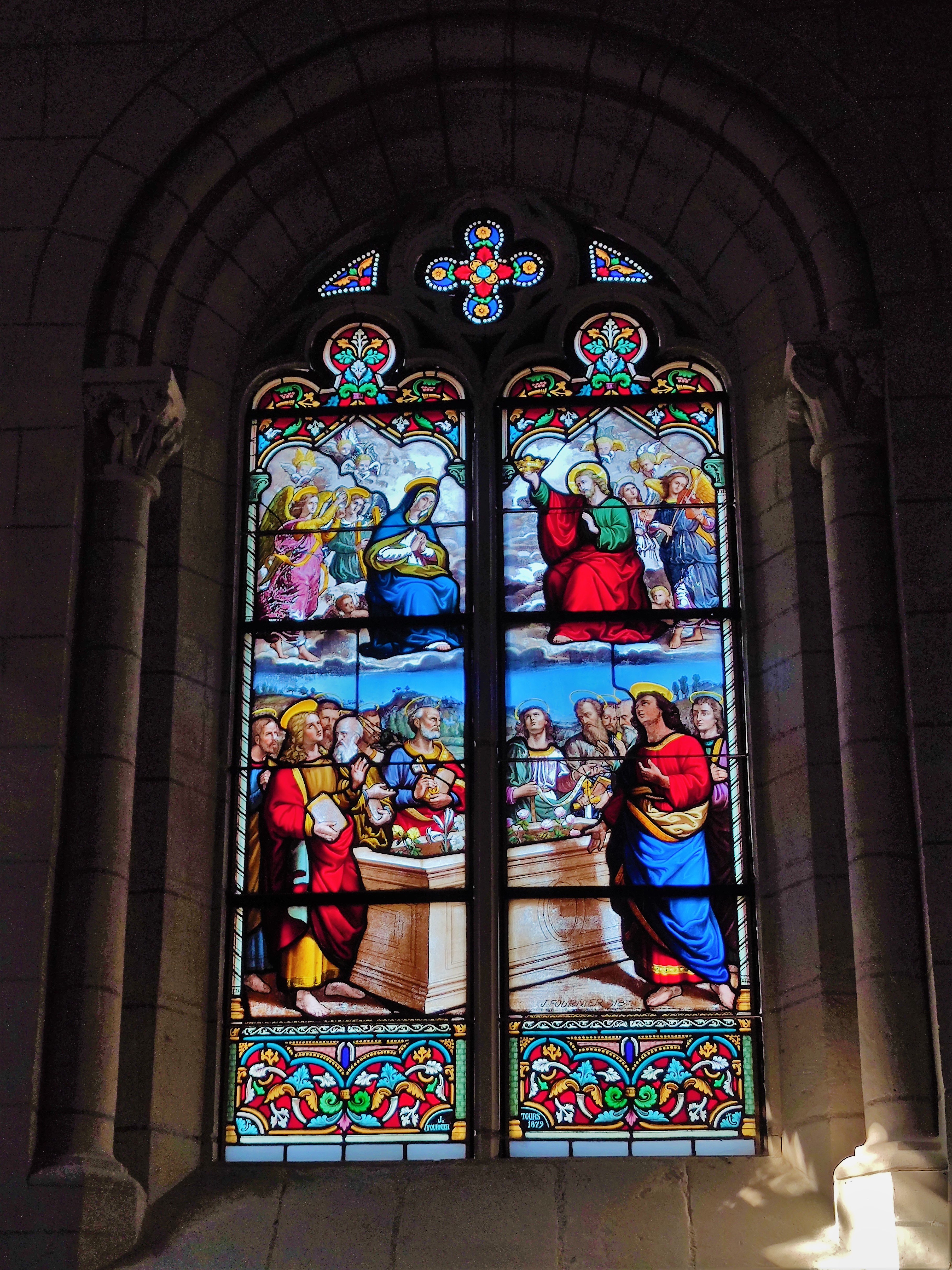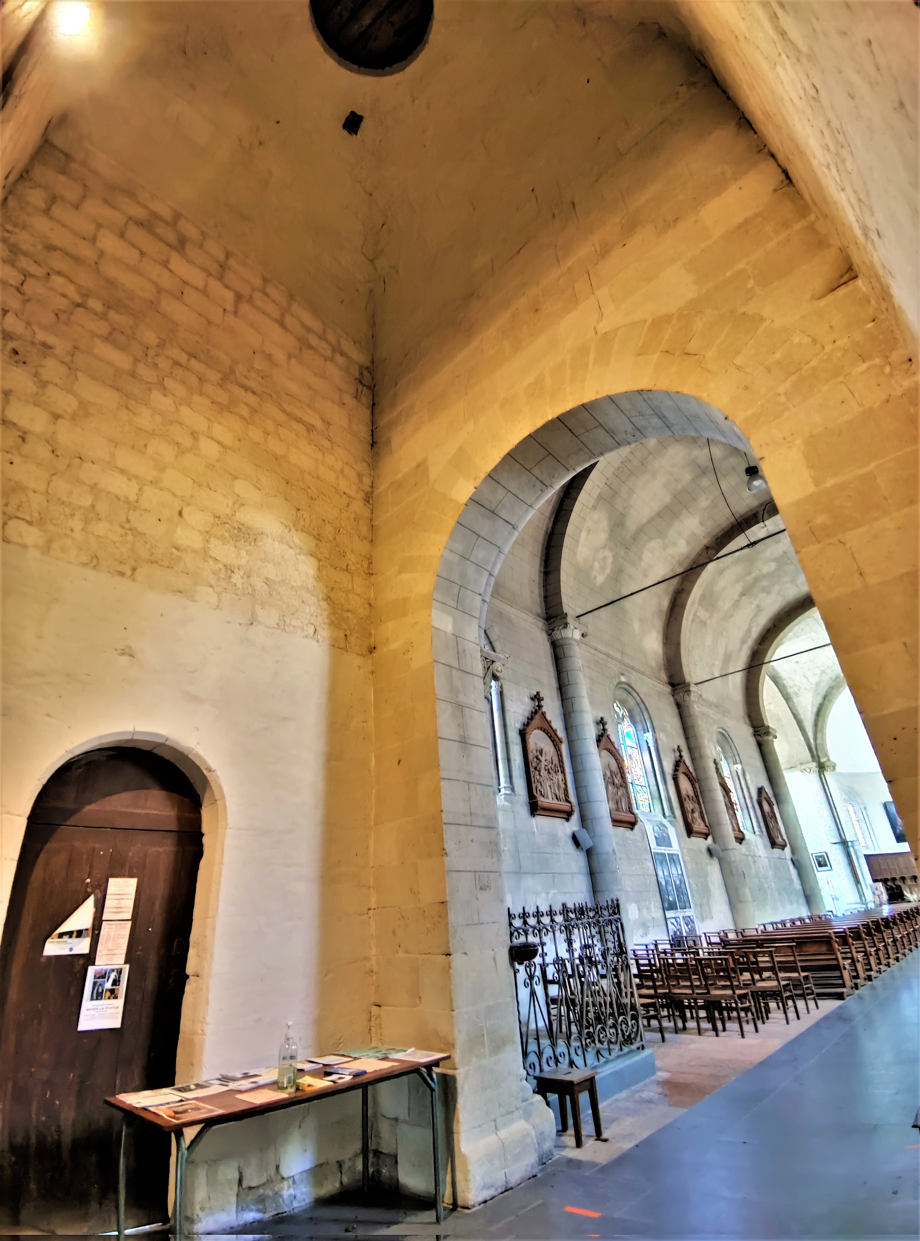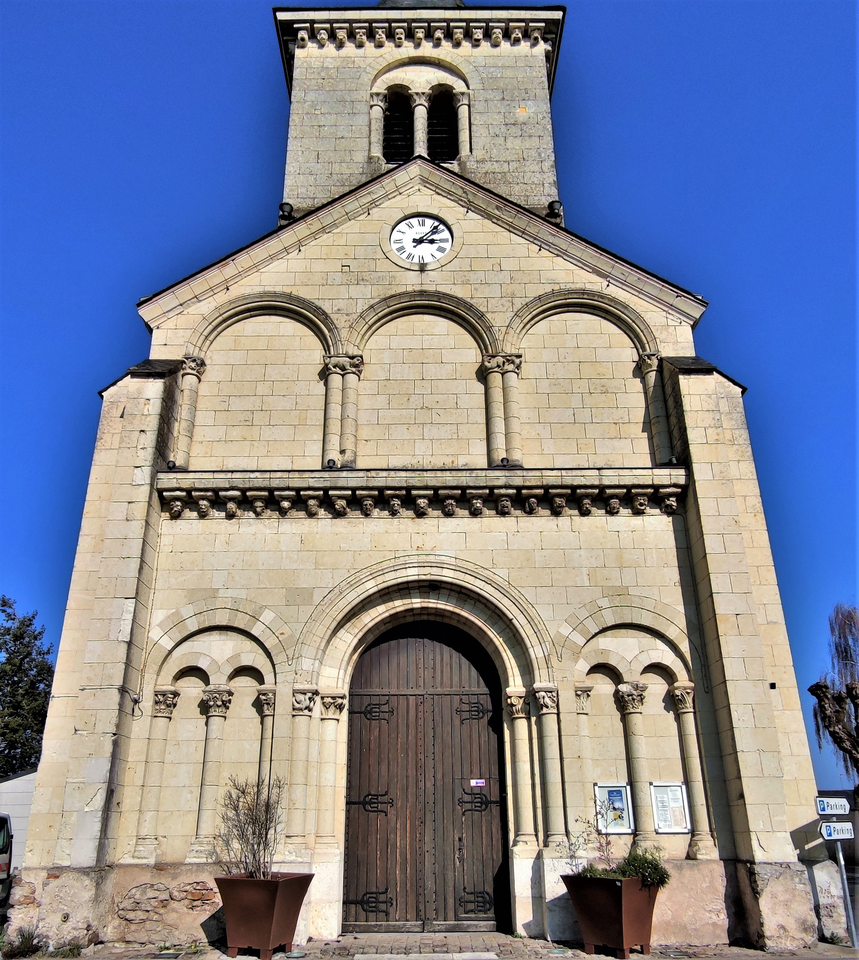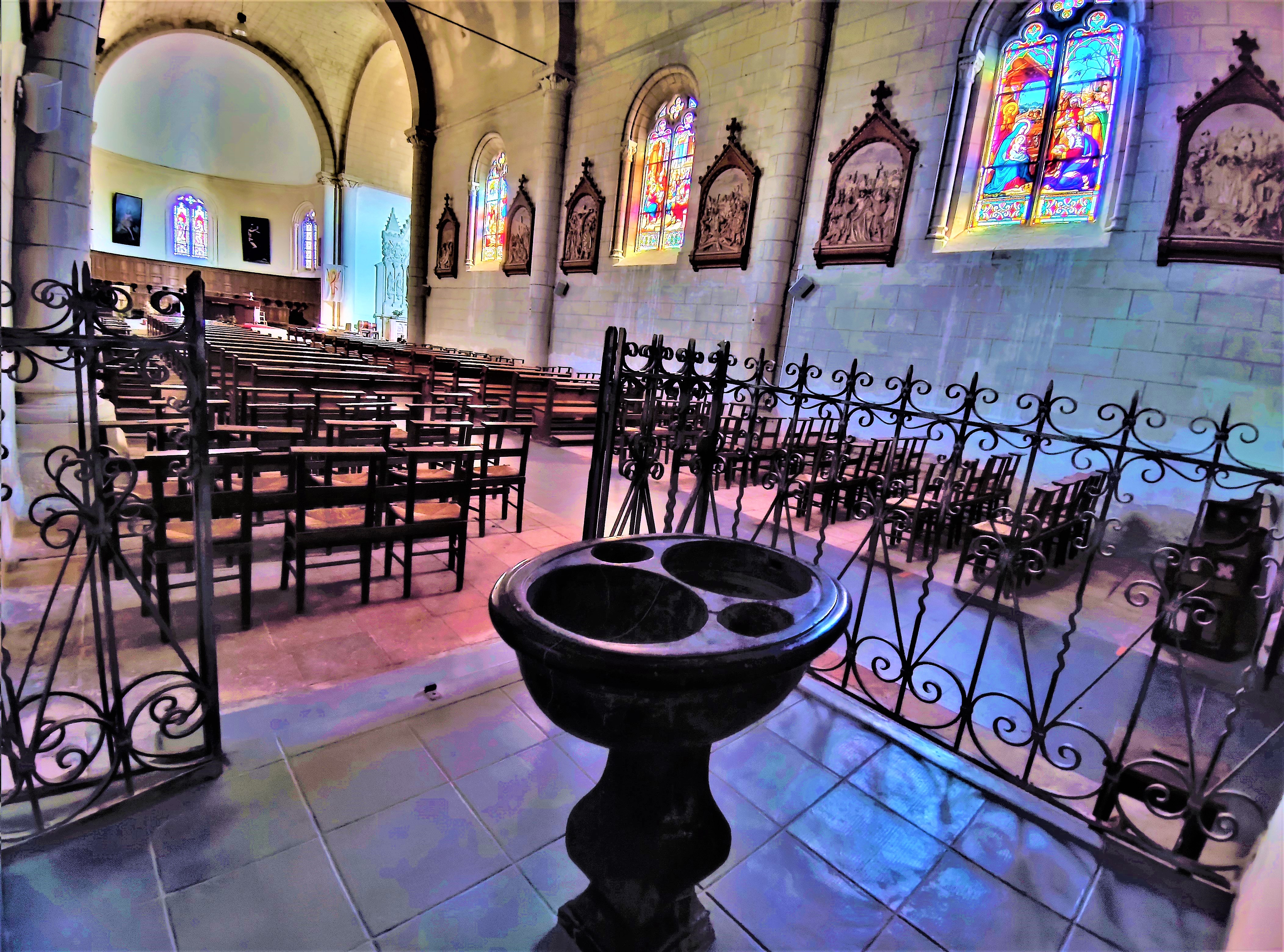 Cette église du 19ème, construite par nécessité, m'a séduit par son charme et son histoire. L'église Saint-Paul de Vivy, ouverte et accueillante, bien mise en valeur sur la place de la cité, fut construite en 1843 avec les matériaux de l'ancienne église. De ce fait, on retrouve en façade un ensemble de modillons supportant la corniche et d'autres supportant la partie haute du clocher. Ce village était autrefois situé sur les bords de l'Authion, à, Le Vieux Bourg, près du port. Les inondations fréquentes, causes de dégradations et d'insalubrité, ont incité les habitants à déménager le village et son église au milieu du 19ème siècle. La nef unique voûtée en berceau, le sanctuaire logé dans une abside semi-circulaire, ces touches romanes offrent à l'édifice un côté intimiste et chaleureux. Les ouvertures gothiques et leurs beaux vitraux apportent une lumière abondante et colorée.