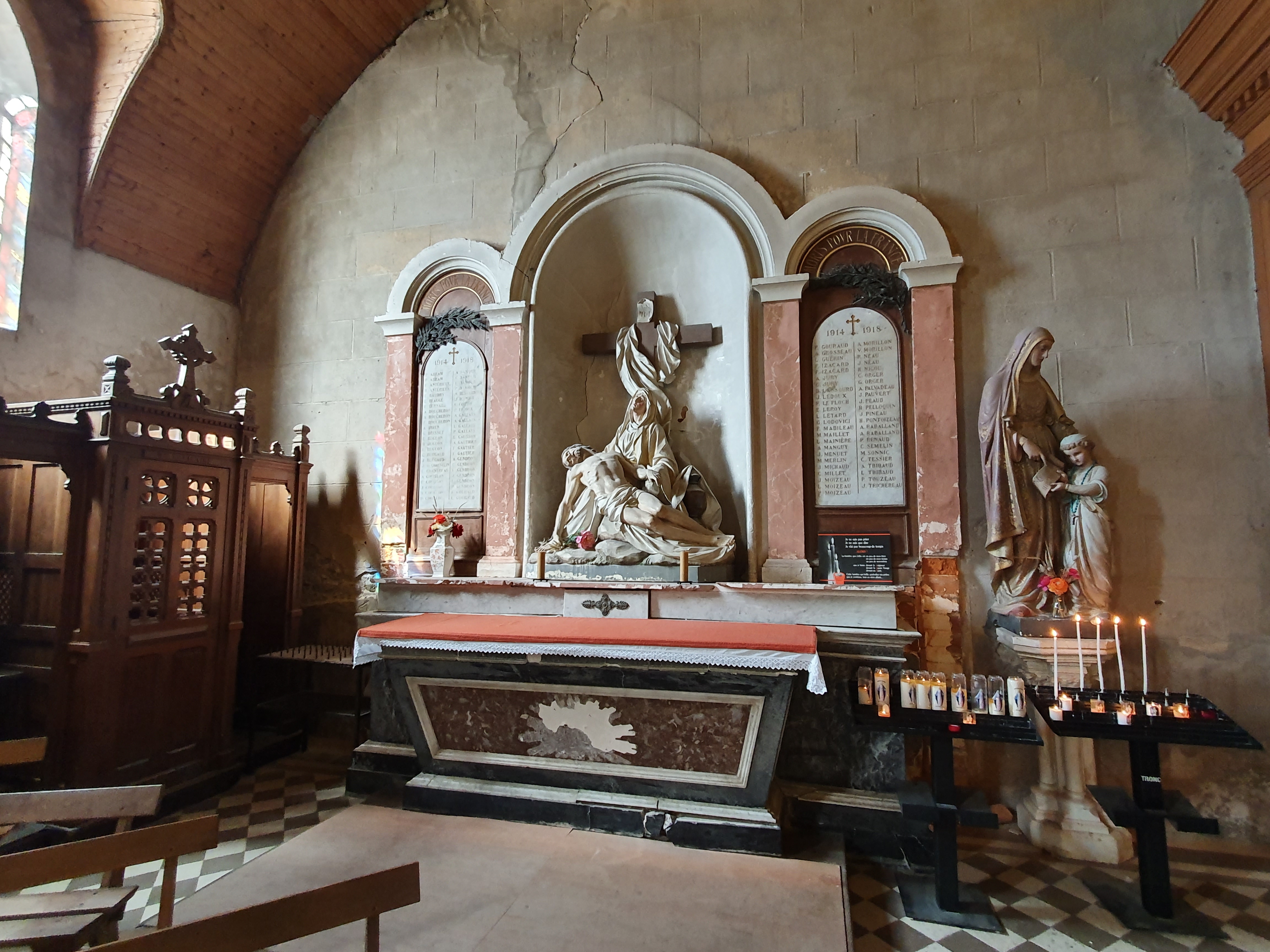 Jolie église 💒 avec une crypte sous l'autel, beau retable.