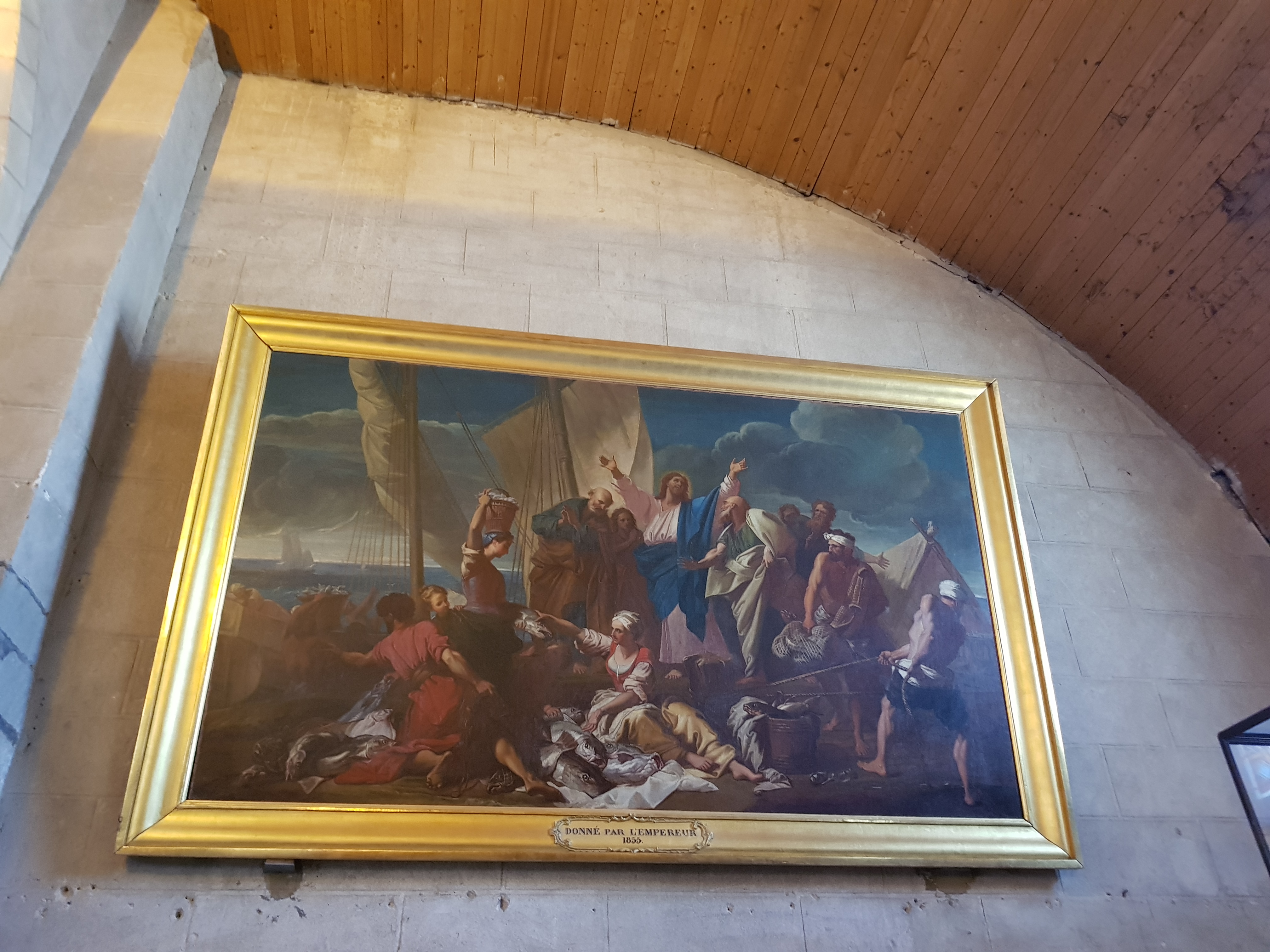L'église qui avait été fondée sur ce qui restait de l'ancienne Abbaye où on peut voir la crypte romane avec la tombe de Saint Philibert et l'église est magnifique avec sa coque de bateau renversé et de chaque côté les grands maîtres d'autel sont superbes et l'architecture et grandiose