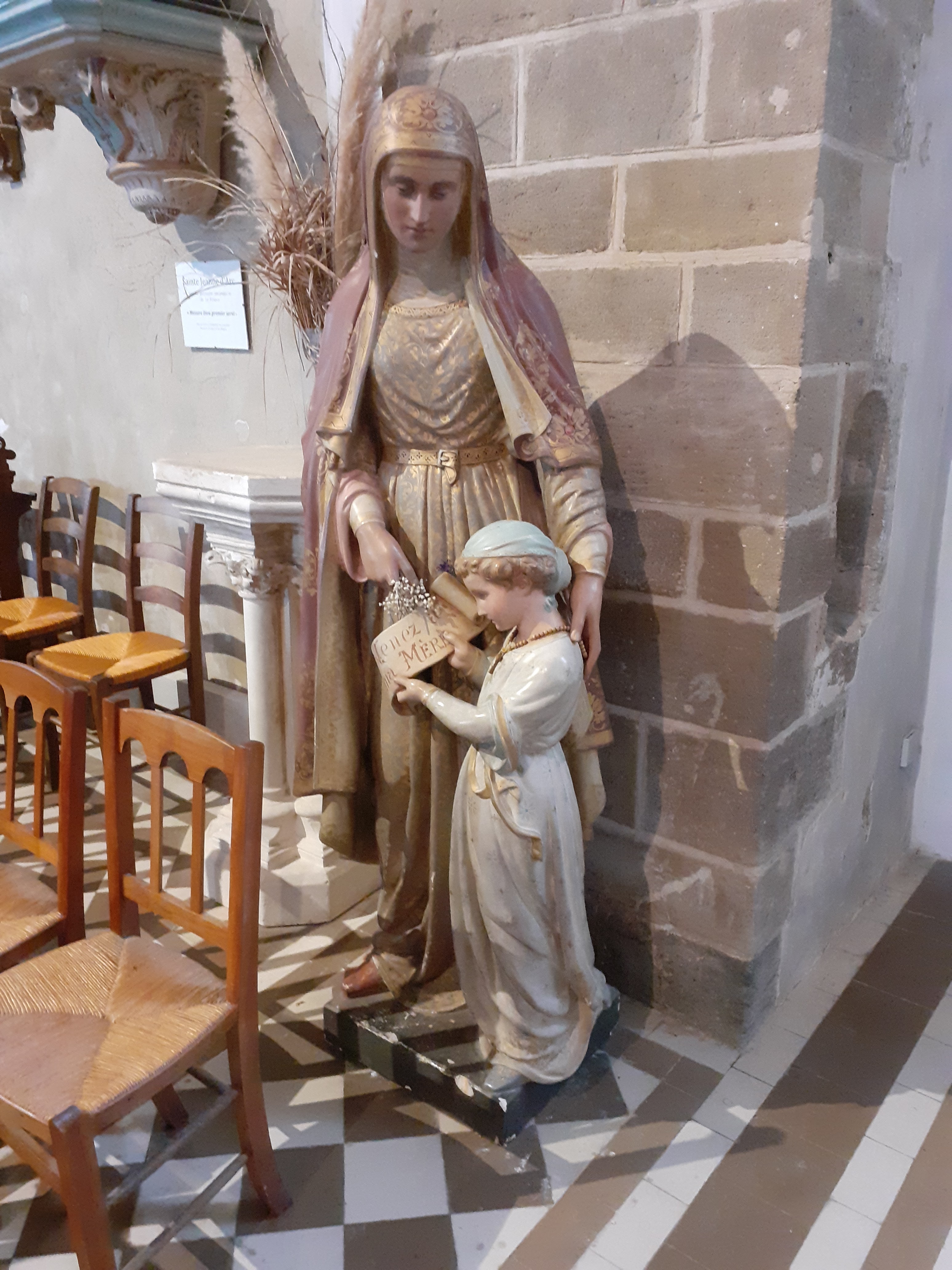J'ai donné une statue de la Ste Madeleine et j'espère qu'on pourra l'admirer bientôt à St Philbert ou Notre Dame de Bon Secours à l'Herbaudiaire ! Elle fait un mètre de haut et c'est une copie de celle du musée de Cluny à Paris.