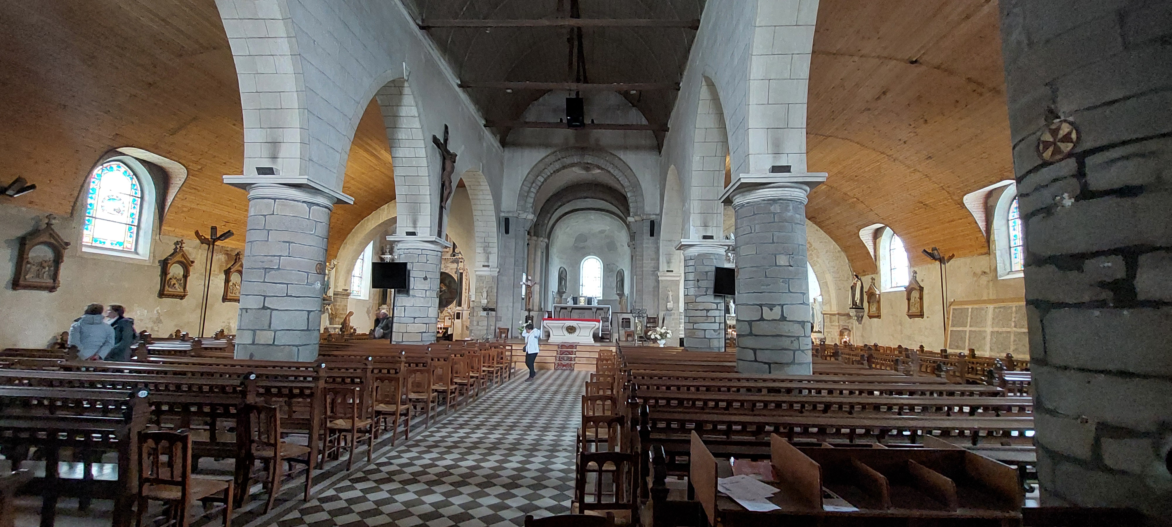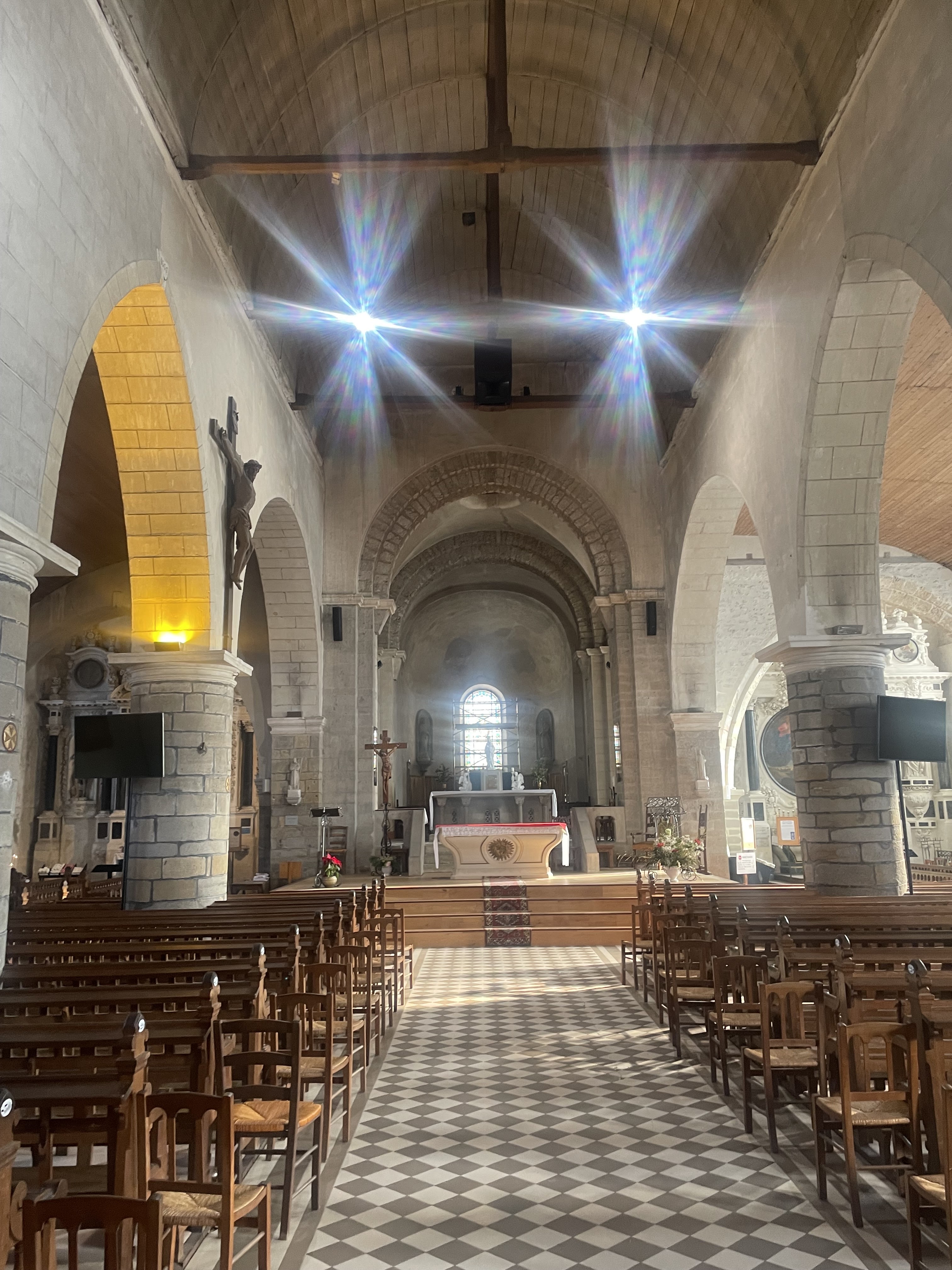 Belle église à voir crypte et ossature bois du plafond identique charpente bateau