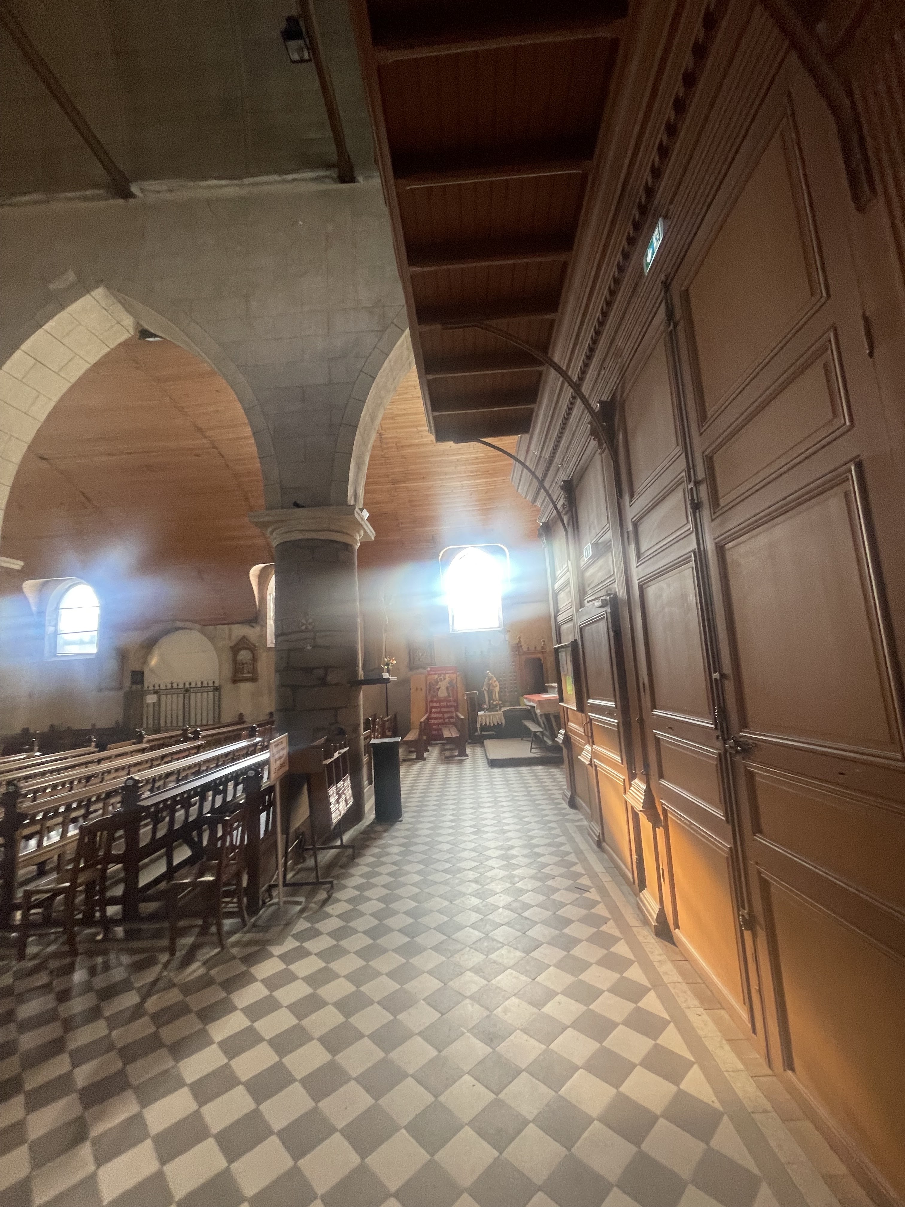 Une église d’une grande beauté avec sa voûte en forme de coque de bateau et que dire de la crypte : magnifique.