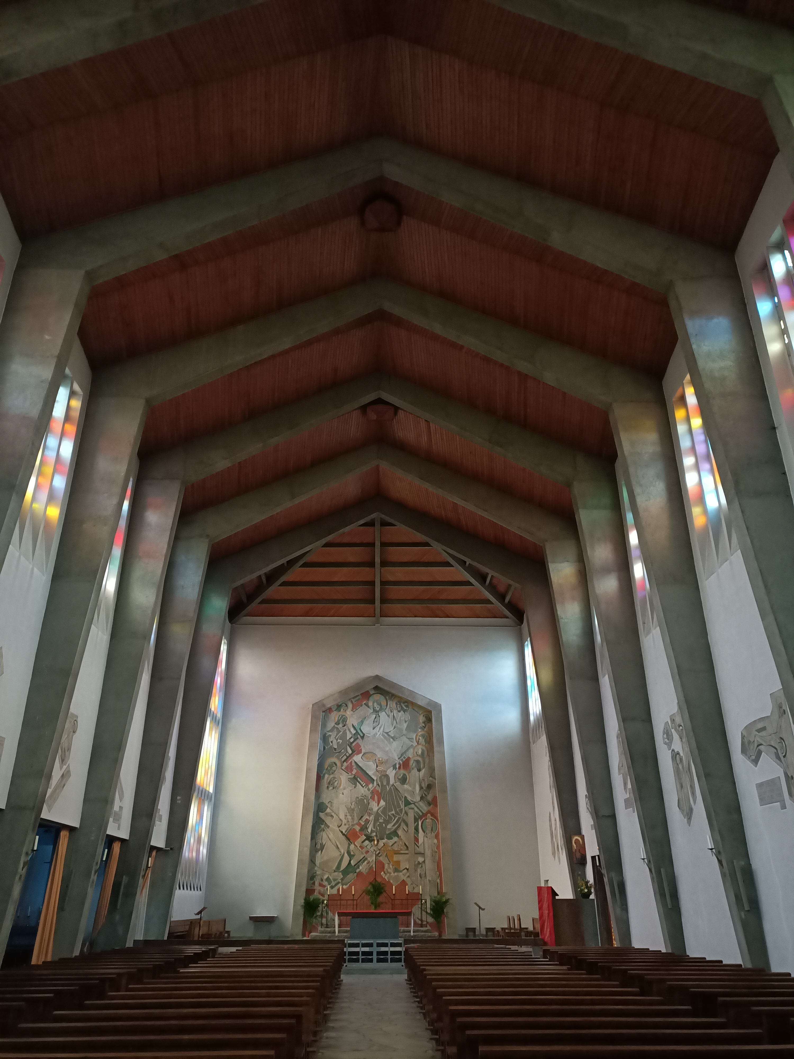 Quand je suis arriver à l'église de l'extérieur je me suis dit euh bizarre le design et la couleur mais uné fois rentre dedans plus rien s voir