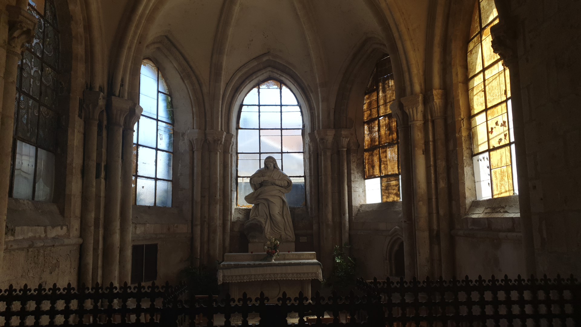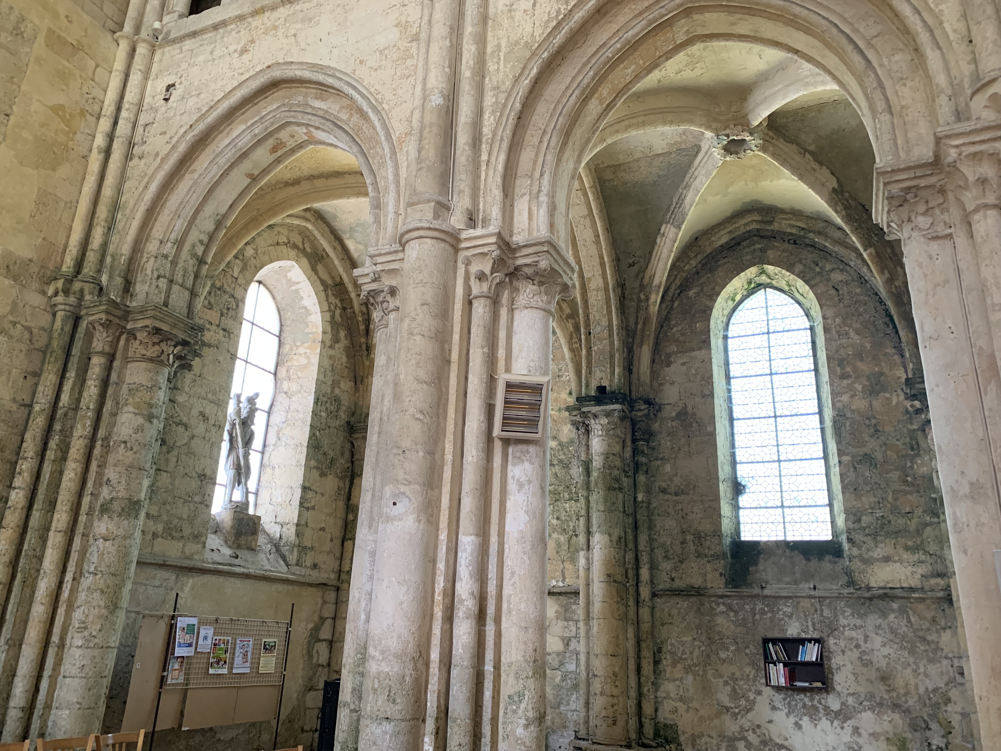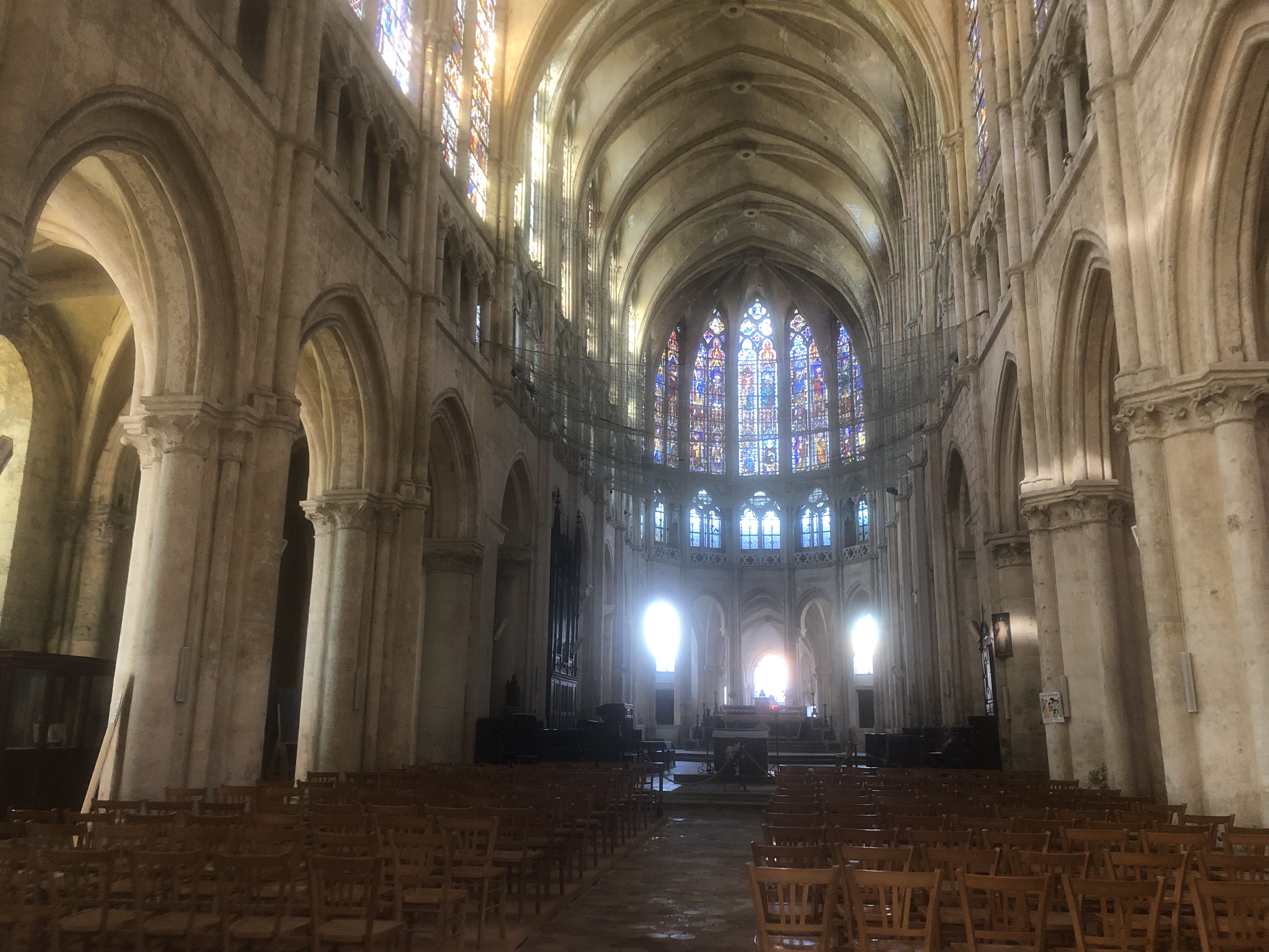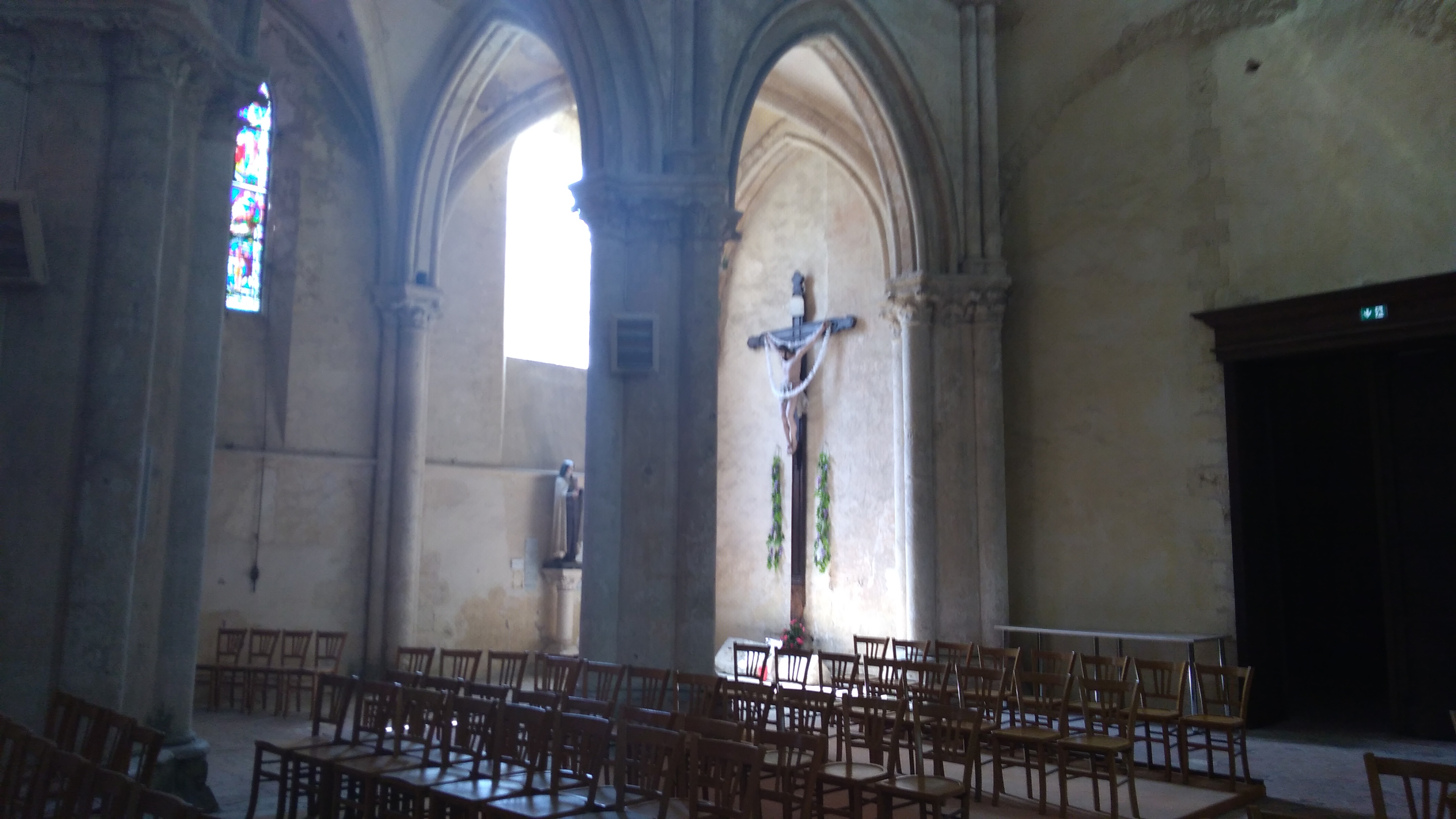 Magnifique bâtiment malgré les blessures infligées par le temps et l'humidité, du mur nord particulièrement. Très bel ensemble gothique, ample et lumineux. Les jours de soleil mettent en valeur les vitraux médiévaux.