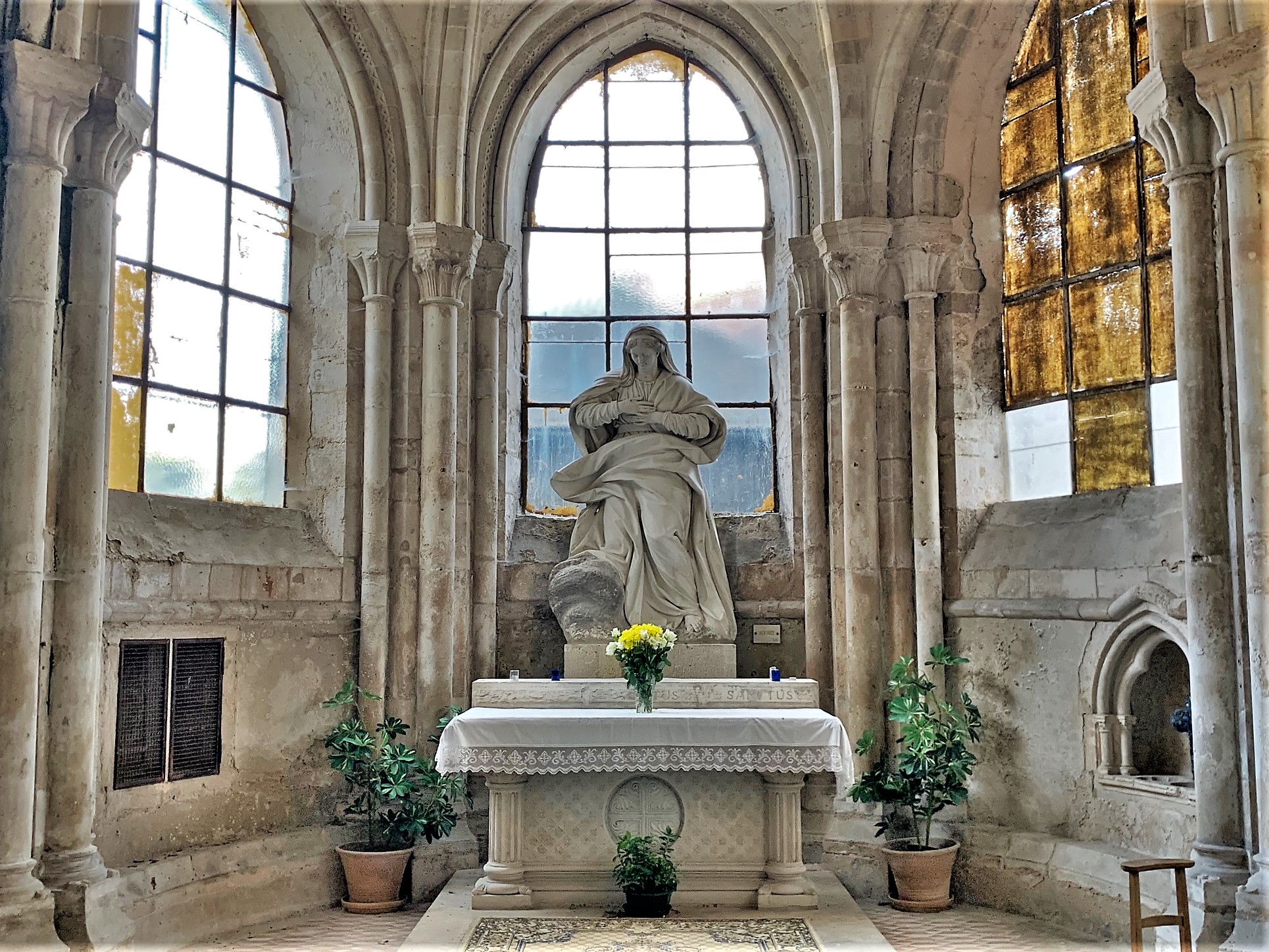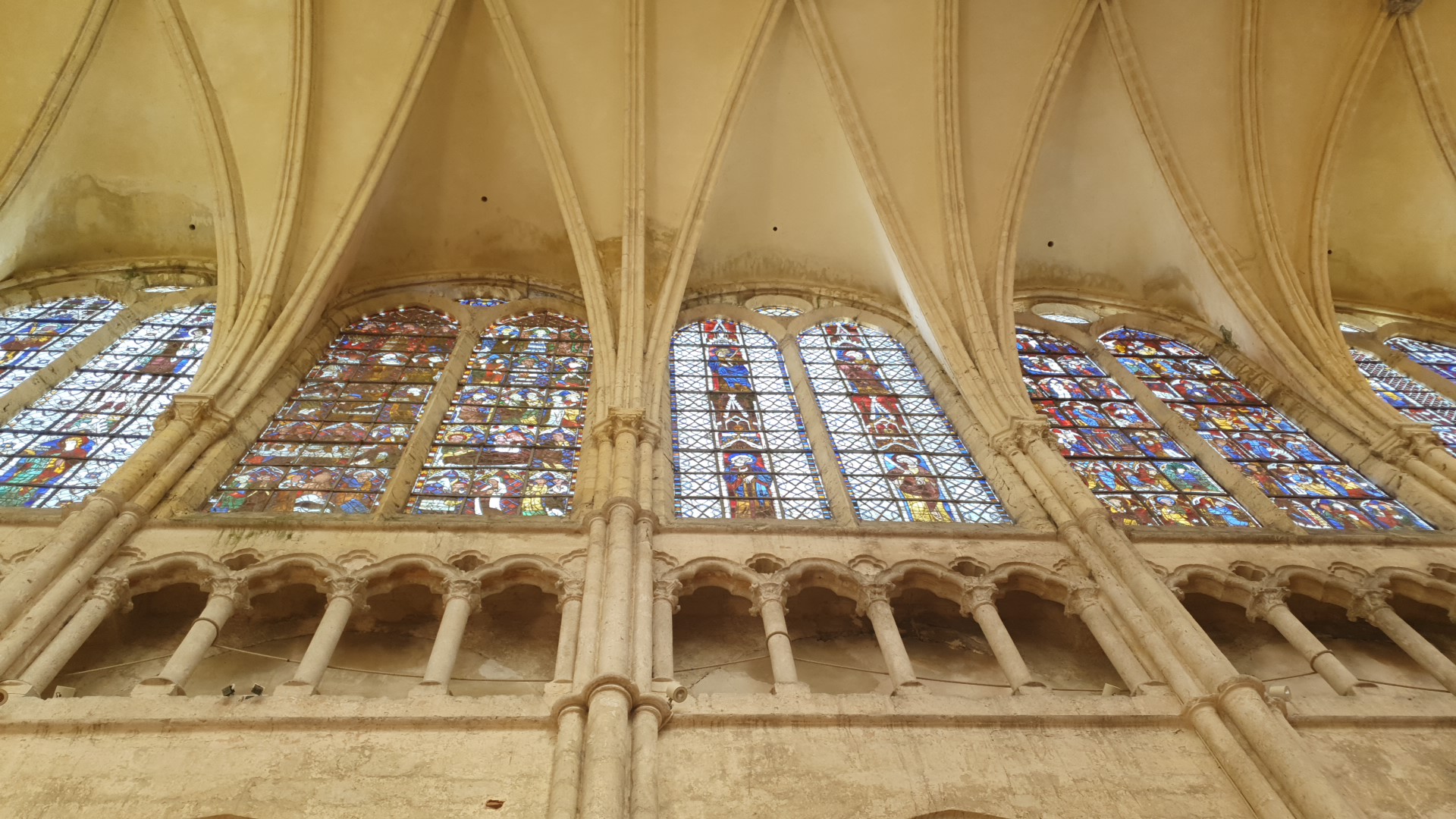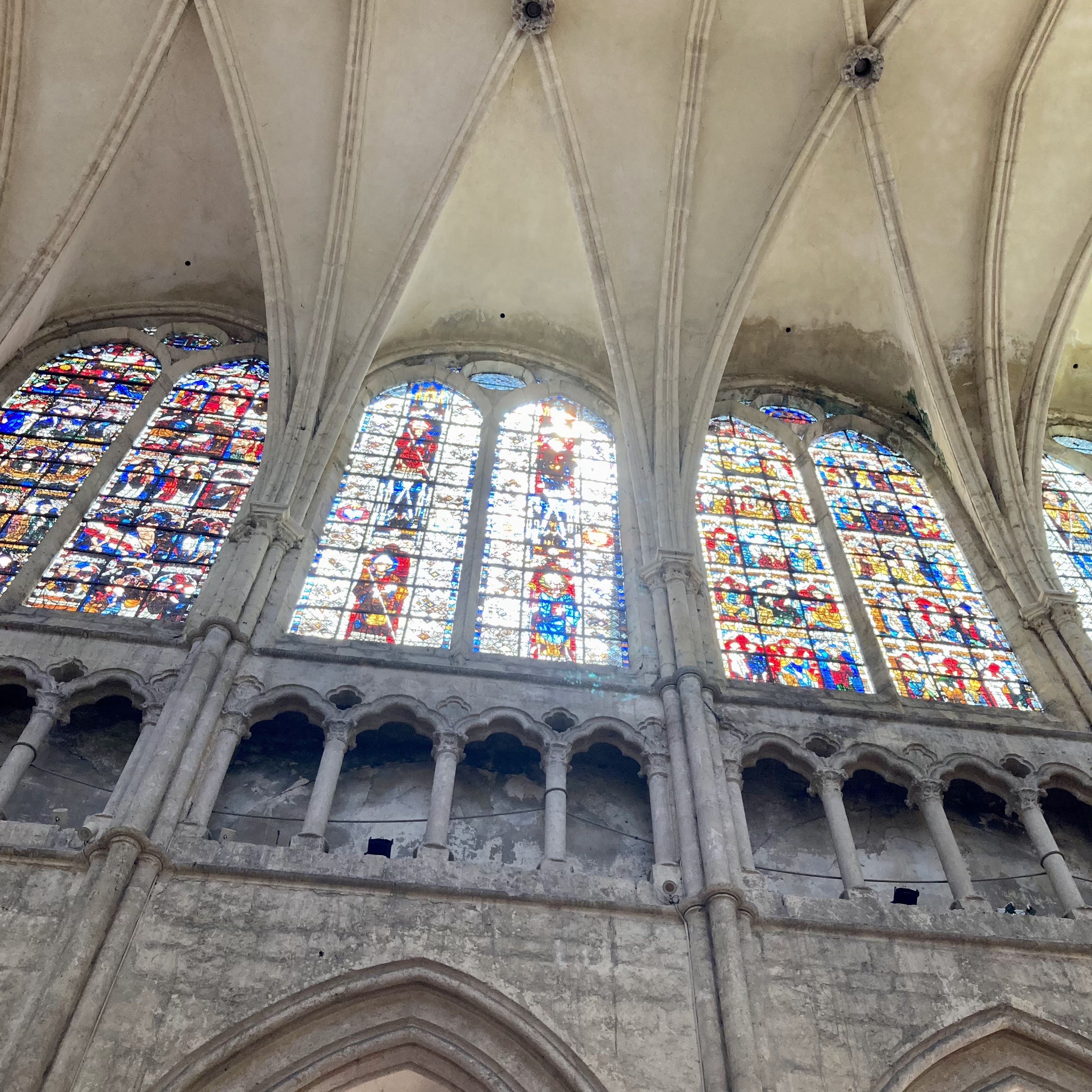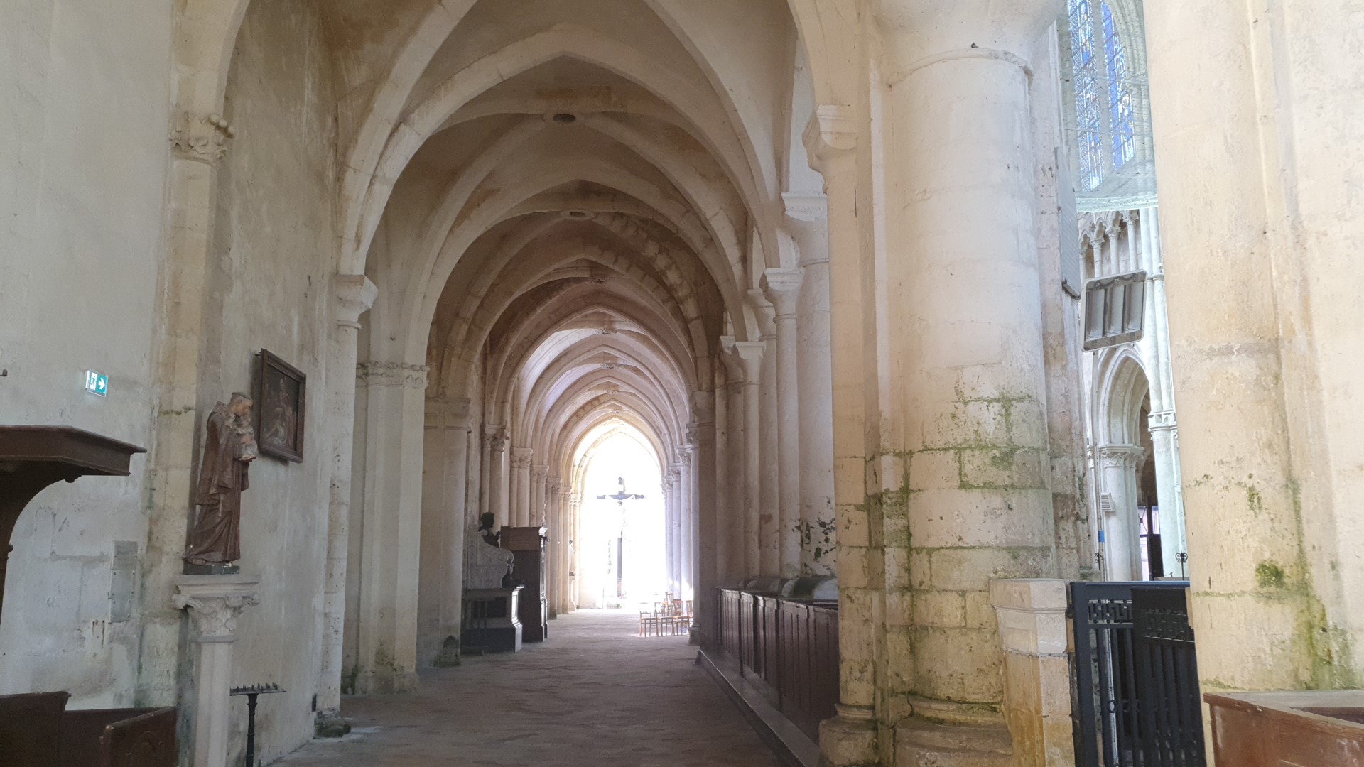 Magnifique bâtiment malgré les blessures infligées par le temps et l'humidité, du mur nord particulièrement. Très bel ensemble gothique, ample et lumineux. Les jours de soleil mettent en valeur les vitraux médiévaux.