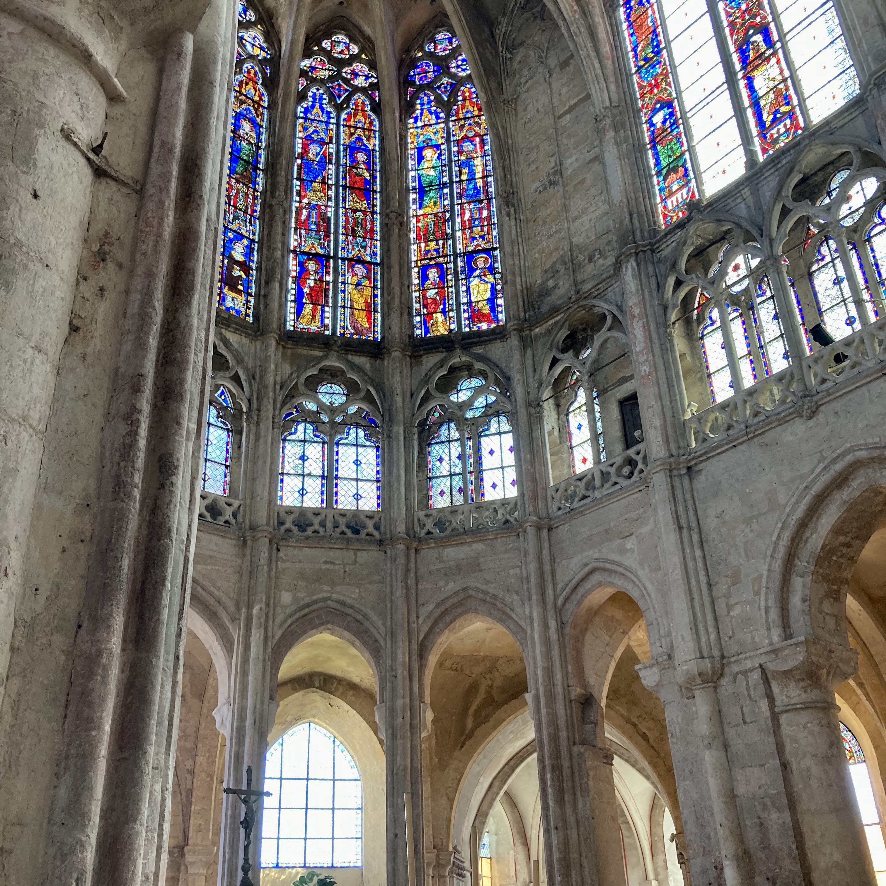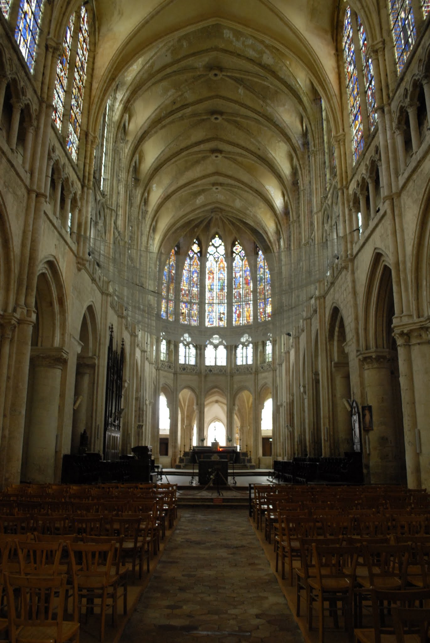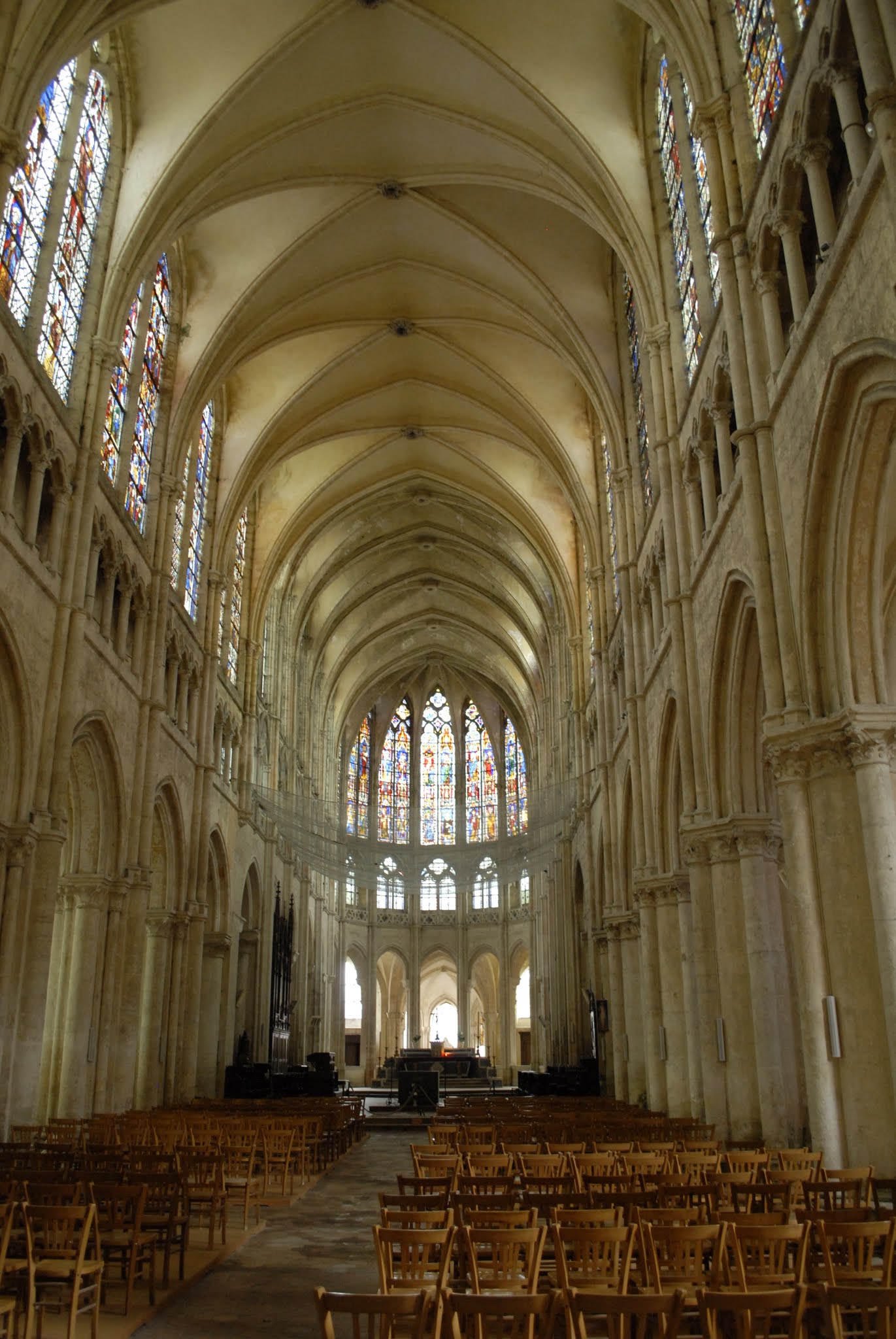 Cette grande église abbatiale est contemporaine de la cathédrale qui, bien évidemment, l'éclipse de toute sa splendeur. On aurait cependant tort de la dédaigner: nous sommes en présence de l'une des plus hardies et lumineuses églises du premier gothique français. Quoique les proportions du sanctuaire soient moins élancées que celles de la cathédrale, les parties hautes du choeur, avec leur triforium à claire-voie, émerveillent par leur audace et leur légèreté.