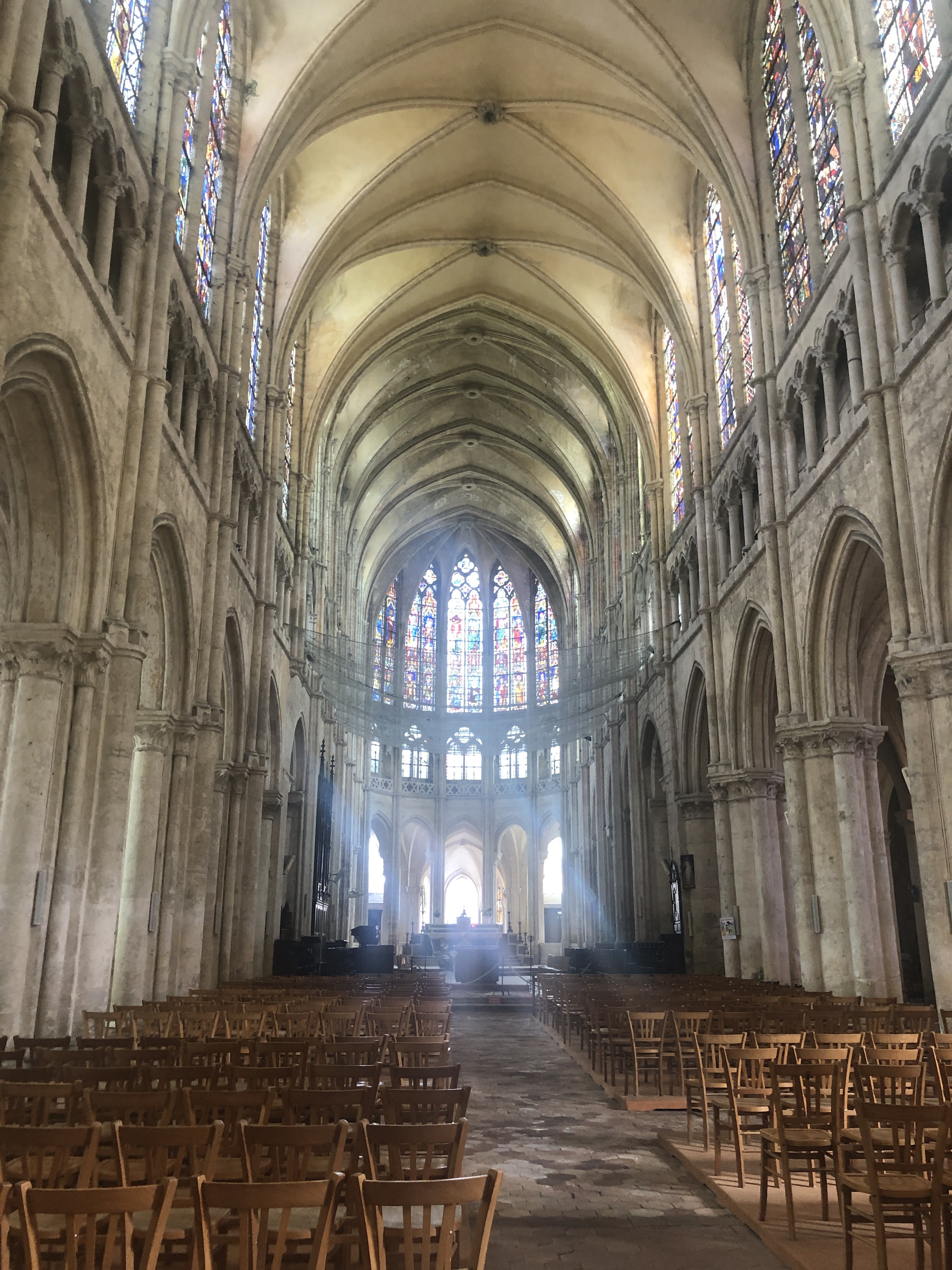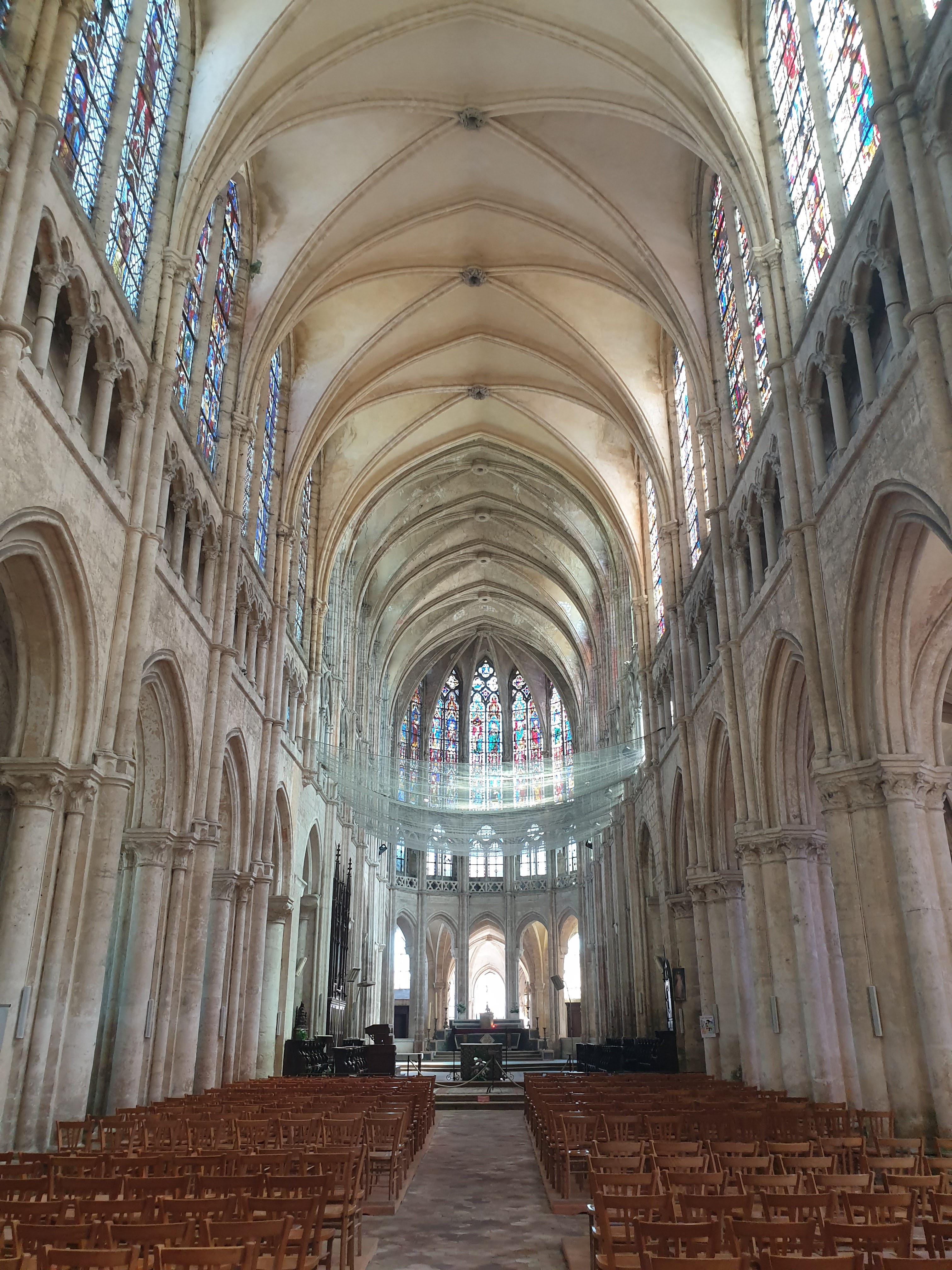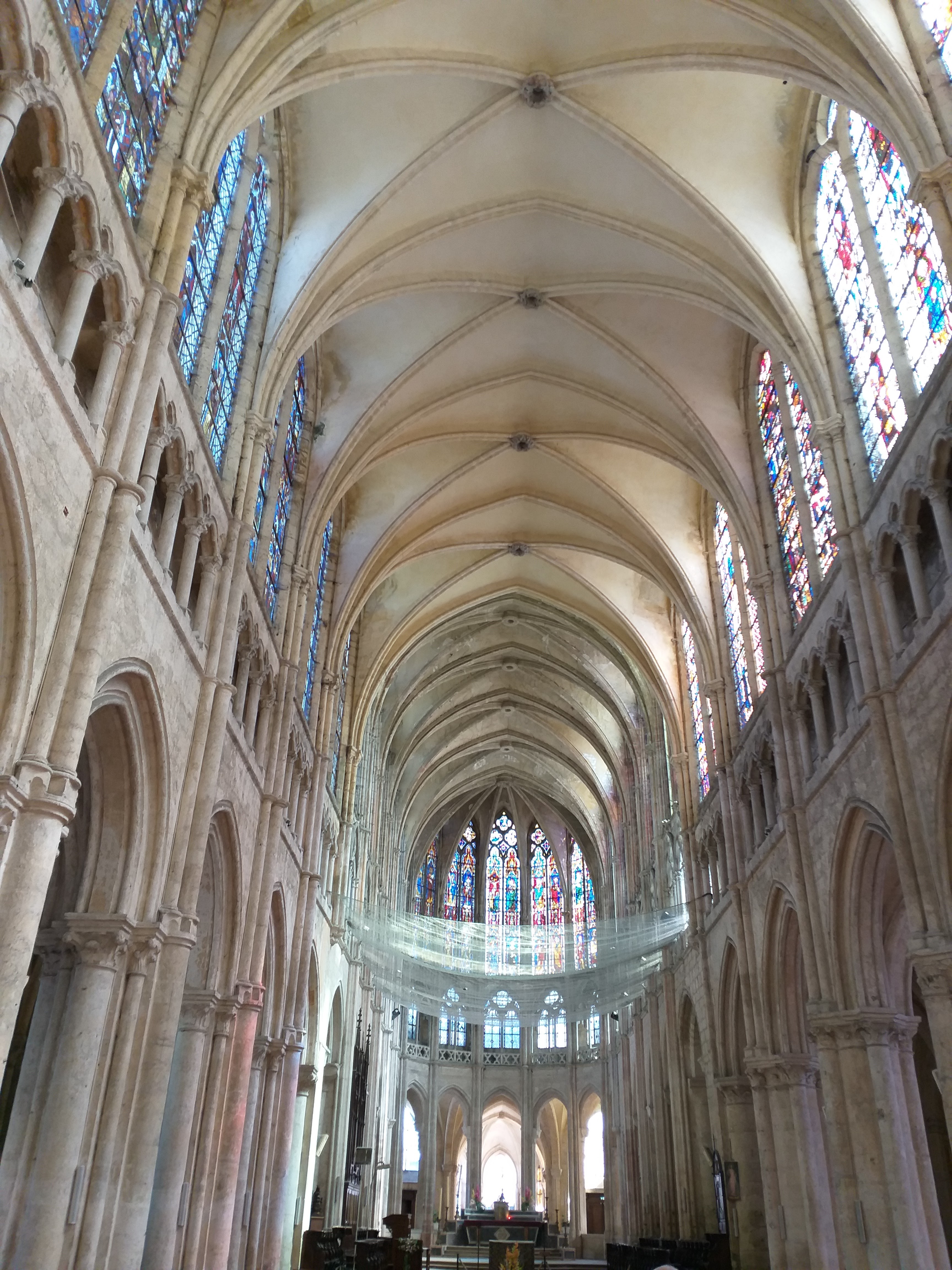 Cette grande église abbatiale est contemporaine de la cathédrale qui, bien évidemment, l'éclipse de toute sa splendeur. On aurait cependant tort de la dédaigner: nous sommes en présence de l'une des plus hardies et lumineuses églises du premier gothique français. Quoique les proportions du sanctuaire soient moins élancées que celles de la cathédrale, les parties hautes du choeur, avec leur triforium à claire-voie, émerveillent par leur audace et leur légèreté.