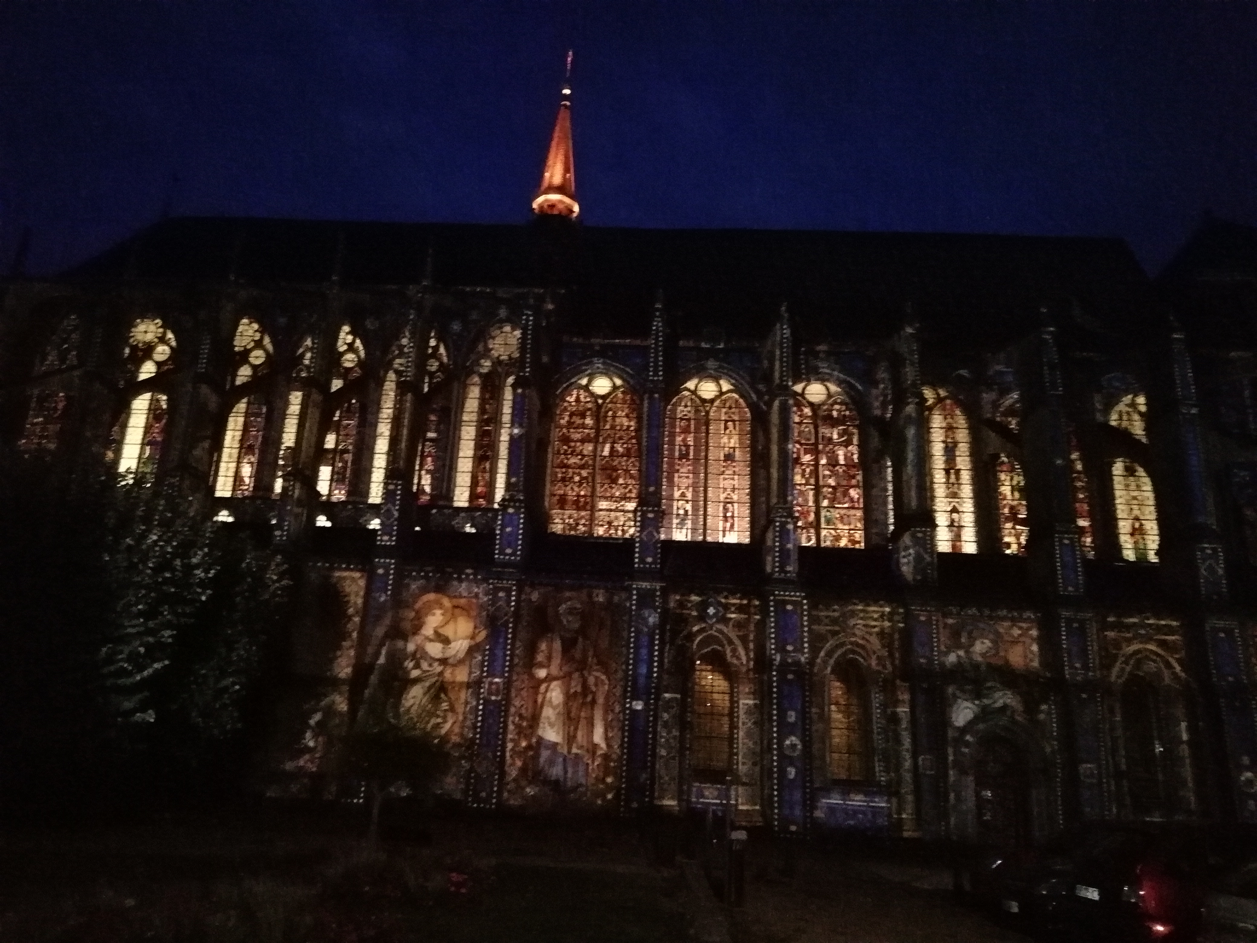 Les illuminations intérieures font ressortir les magnifiques vitraux.