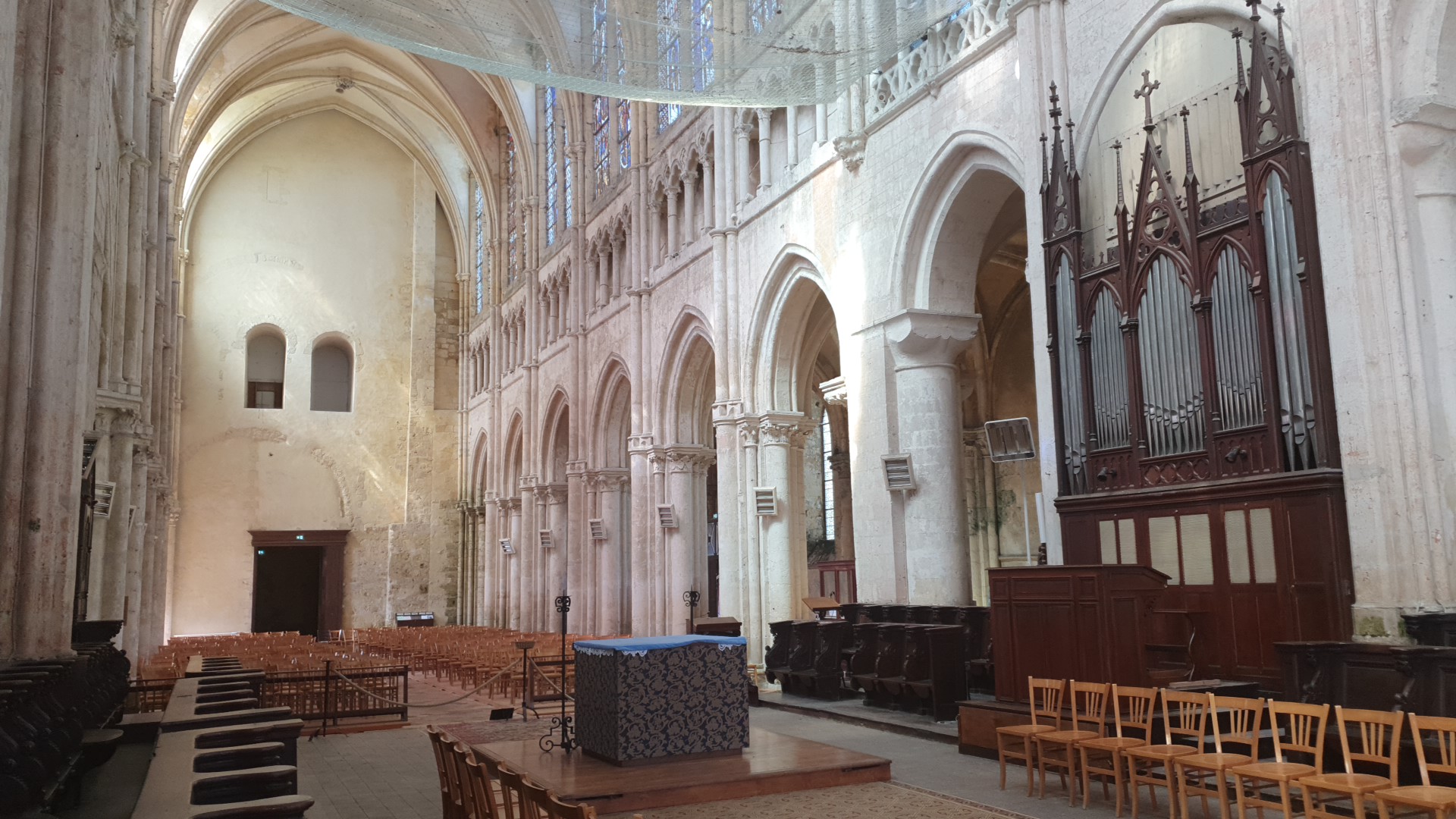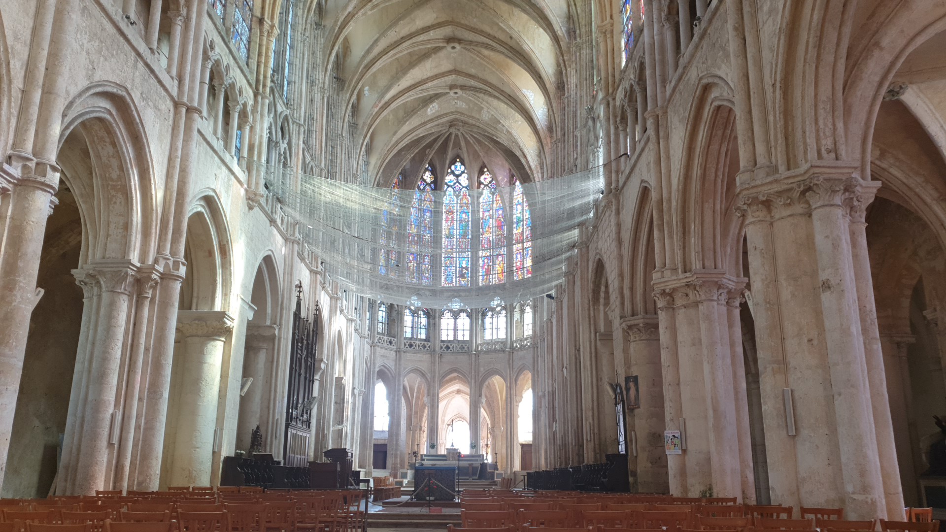 Très belle église des vitraux magnifiques par contre le plafond en très mauvais état c'est sûrement pour cette raison qu'ils ont placé un filet de protection depuis peu des travaux de rénovation sur la tour carré on été effectués à visiter si vous êtes sur Chartres, il n'y a pas que la cathédrale